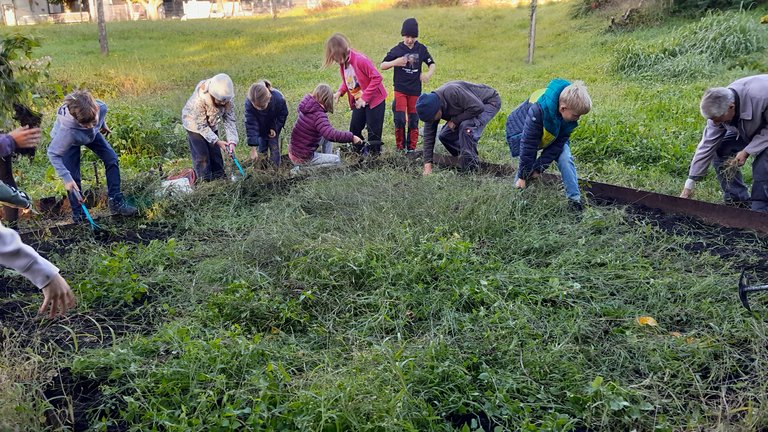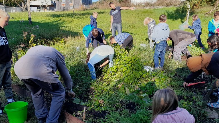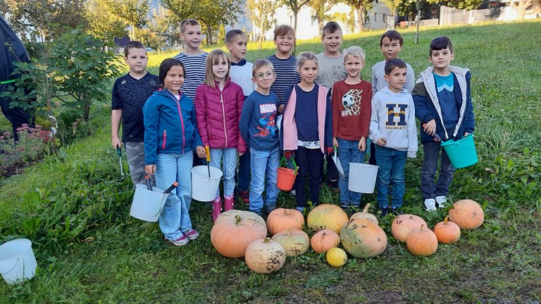 Nach einer kalten Woche mit Regen konnten wir endlich die Kürbisse und Kartoffeln ernten. Leider hat sich inzwischen das Unkraut kräftig entwickelt. Die Schüler waren eifrig am Roden. Und man glaubt es kaum, in kurzer Zeit schaute es wieder schön aufgeräumt aus im Schulgarten. Alles mit Gründüngung eingesät kann der Garten bis zum Frühjahr ruhen. Wir konnten schöne größere und kleinere Kürbisse ernten. Bei den Kartoffeln war die Ausbeute nicht so groß aber die Schüler hatten trotzdem große Freude beim Kartoffeln suchen bzw. graben.