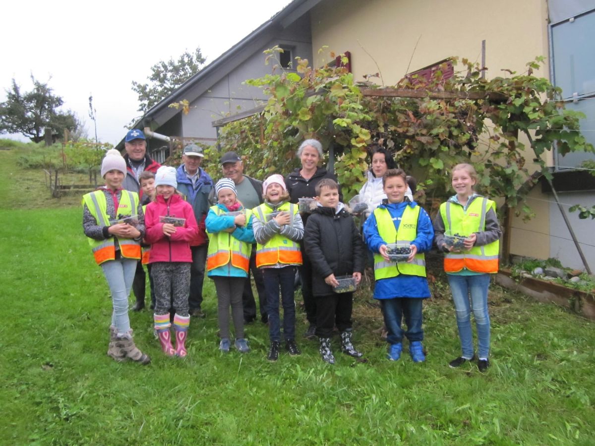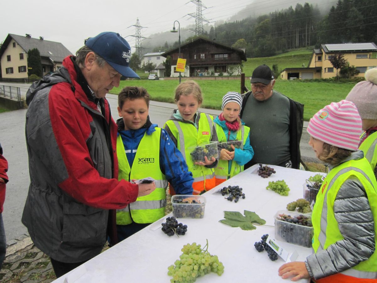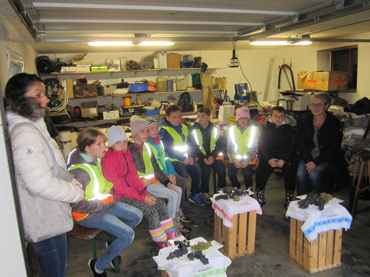 Wir, die Kinder der 4. Klasse der VS Agasella, fuhren am 26. September 2019 mit dem Bus nach Büttels. Von der Bushaltestelle liefen wir zu Franz Metzler nach Hause. Nikolaus Peer leitete das Rebenprojekt. Er hatte zwei Helfer: Franz Metzler und Willi Huber. Unser Thema war an diesem Vormittag die Traubenernte. Am Anfang wiederholten wir den Aufbau des Rebstocks und der Traube. Dann ging es auch schon los. Man teilte uns in drei Gruppen ein. Zuerst kosteten wir vier verschiedene Traubensorten. Danach gingen wir im Uhrzeigersinn zu den Rebstöcken und durften uns verschiedene Traubensorten runterschneiden. Wir bekamen Körbchen, in die wir die Trauben legten. So transportierten wir die köstlichen Trauben nach Hause.