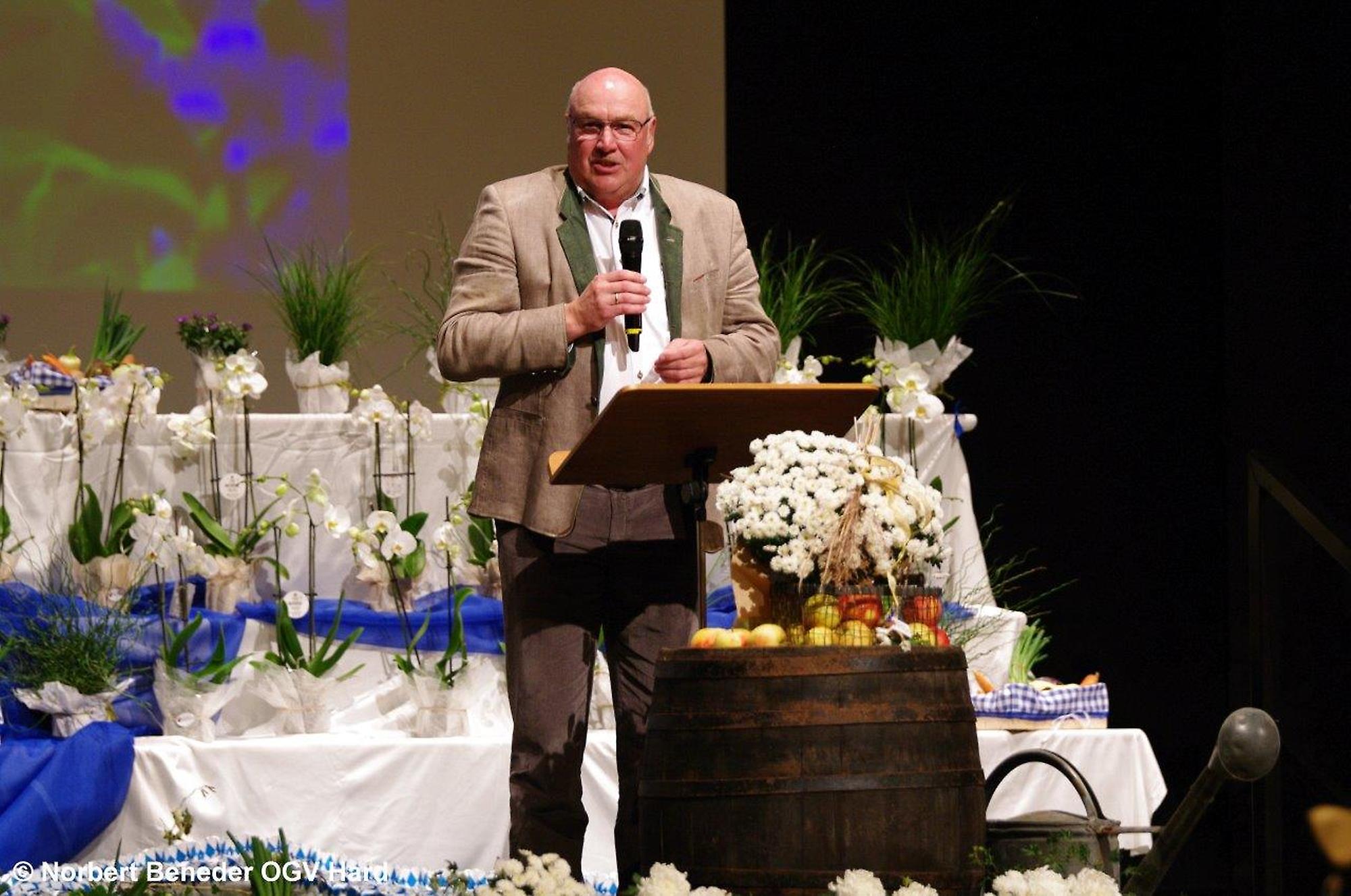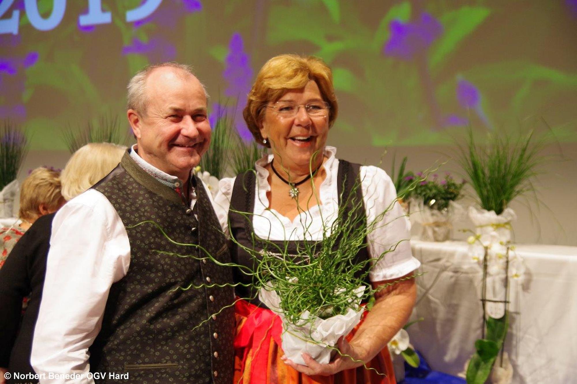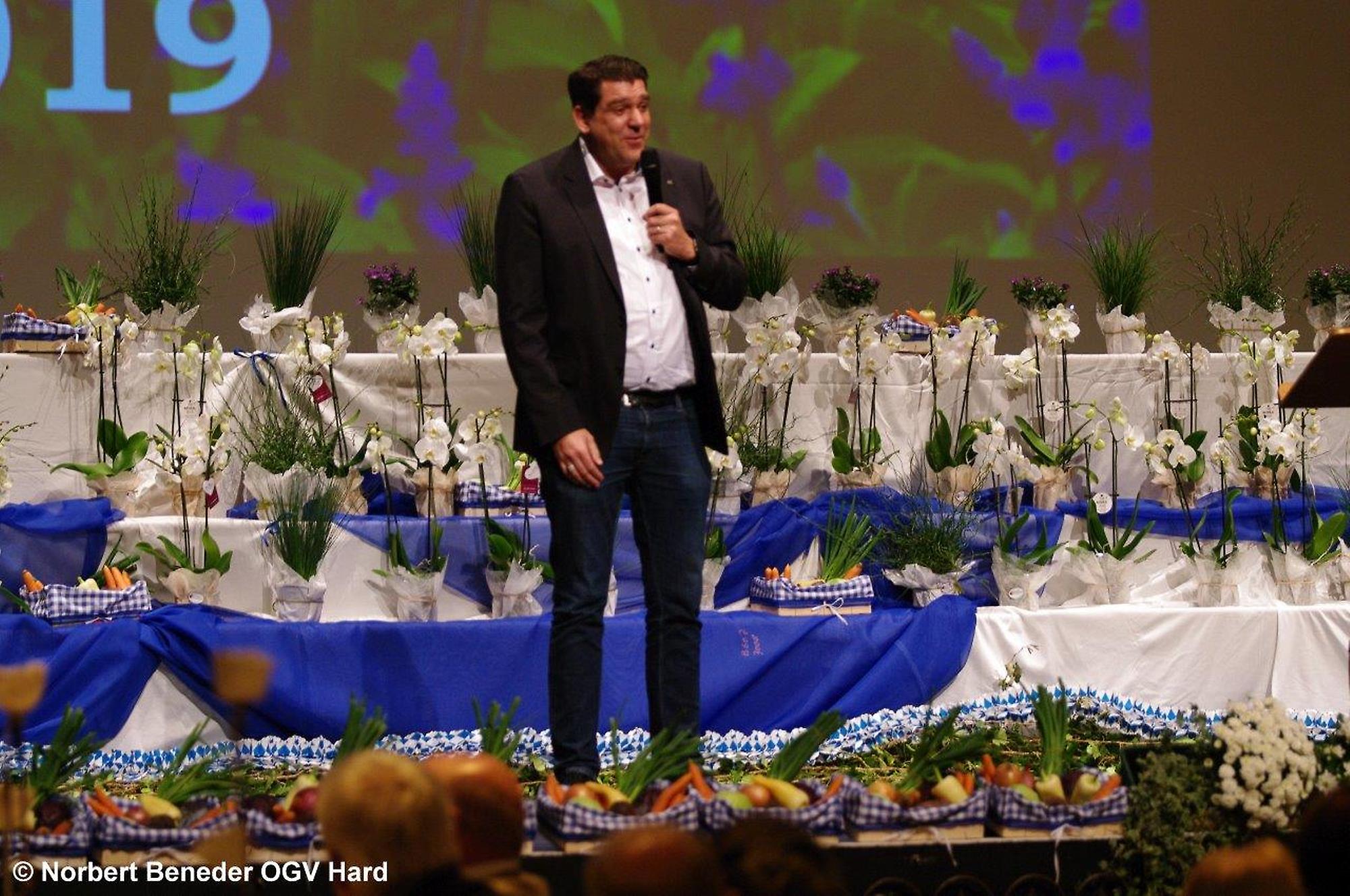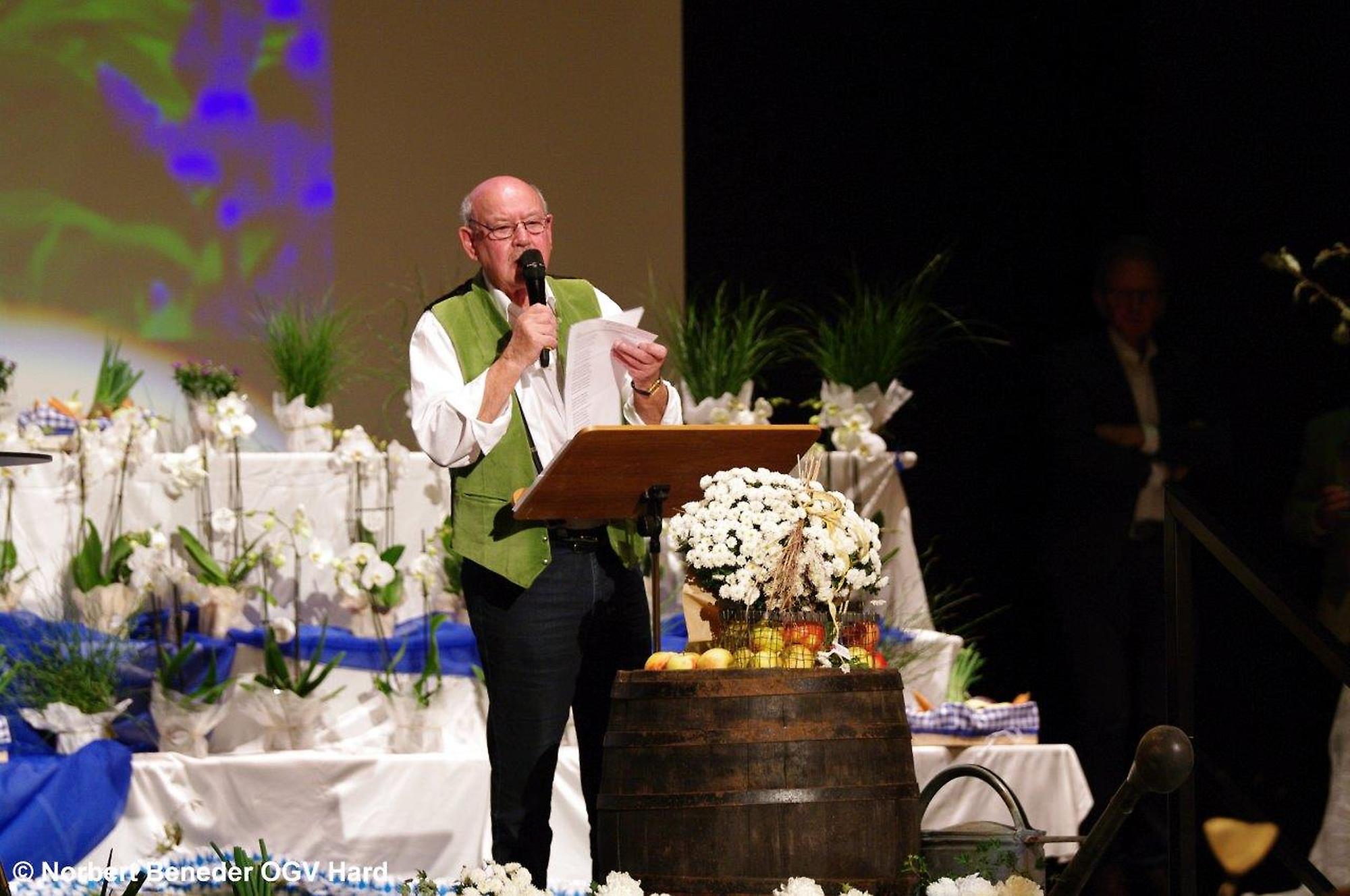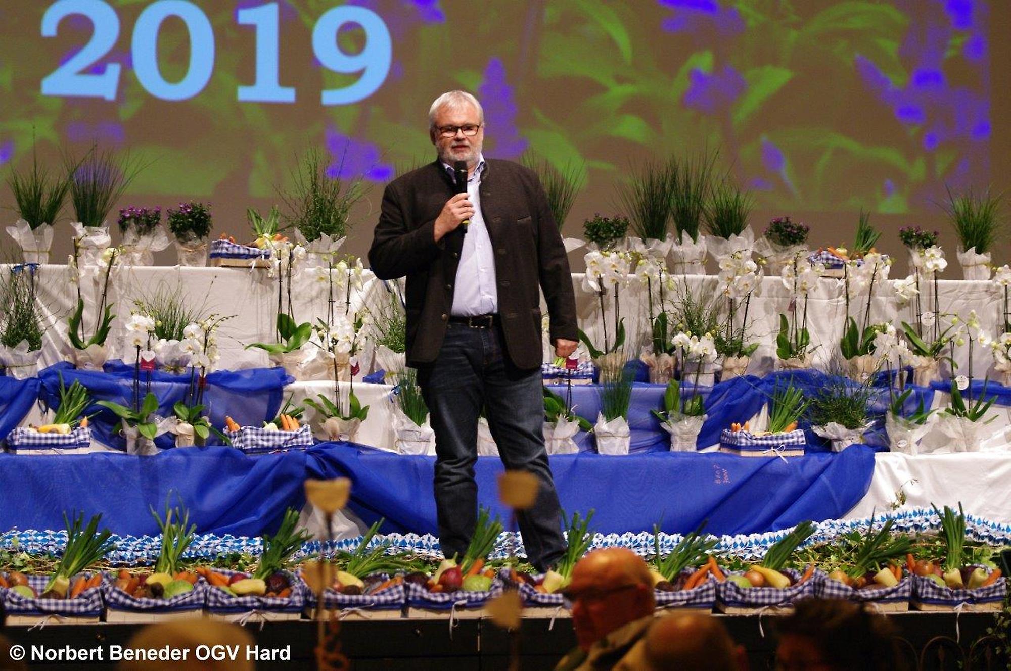 Die eingeladenen Hobbygärtner waren von der Dekoration und von der Stimmung begeistert. Der OGV feierte außerdem "40 Jahre Blumenschmuck Bewerb" und die Harder waren somit beim Blumenschmuck in Vorarlberg der Verein der ersten Stunden. Der Obmann Thomas Bitschnau konnte zahlreiche Ehrengäste, allen voran den Harder Bürgermeister Harald Köhlmeier und Harald Rammel und Erika Nägele von der FLORA Blumenschmuck Jury begrüßen. Alfred Stoppel als Vertreter des Landesverbandes OGV und die Funktionäre der befreundeten Vereine Elisabeth Vögel vom Bienenzuchtverein, Ulrike Kohler von Krippenbauverein, Kurt Engstler vom Heimatpflegeverein, Reinhard Mäser vom Schrebergärtenverein begrüßen. Die Ehrenmitglieder Michael Brandl, Oswald Dörler und Edi Lex waren ebenfalls unter der Gästeschar, wie auch die Harder Gemeindegärtner unter der Leitung von Kurt Voppichler.