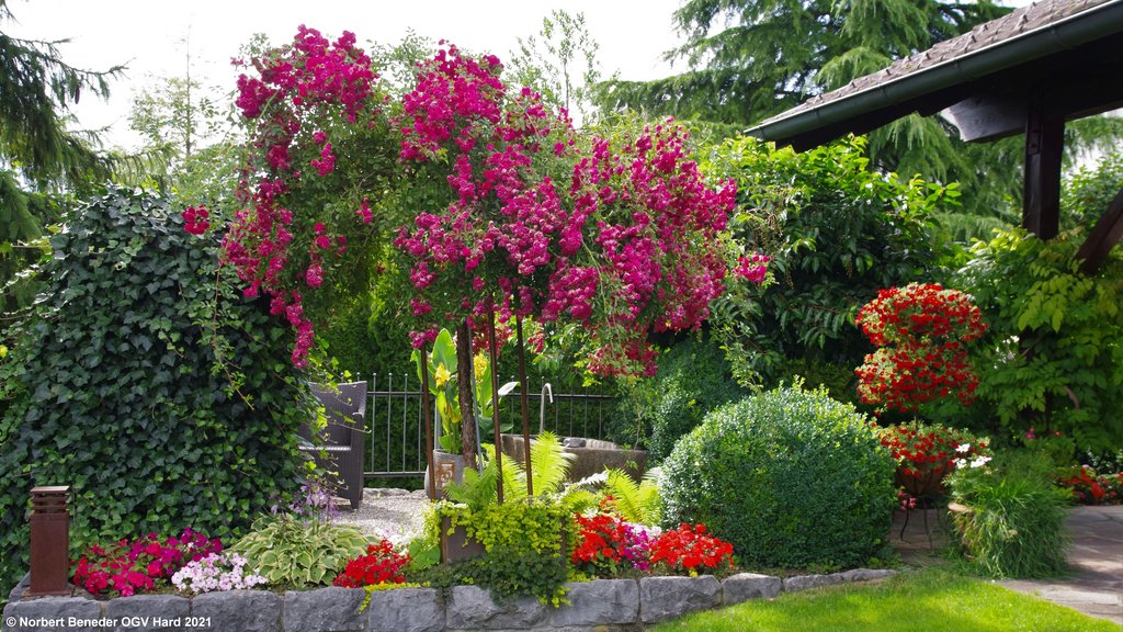 Blühende Balkonblumen und interessante Gärten überzeugten die Jury von der guten Qualität der Blütenpracht und dem Können der Hobbygärtner. Die Juroren Brigitte Wörz und Thomas Bitschnau fuhren mit dem Fahrrad durch Hard. Begleitet wurden sie von Norbert Beneder, der unter Assistenz von Siegfried Hofer alle Gärten fotografierte, um sie bei der Blumenschmuck-Gala am 26. November 2021 im Spannrahmen in Hard präsentieren zu können. Bei der Blumenschmuck-Gala im November können die wunderschönen Gärten in Form einer Bildpräsentation bewundert werden. Die Jury hat aus der Vielzahl der Teilnehmer die Objekte für den FLORA Fotobewerb 2021 nominiert. Die FLORA Gala findet diese Jahr am 25. September 2021 in Wolfurt statt.