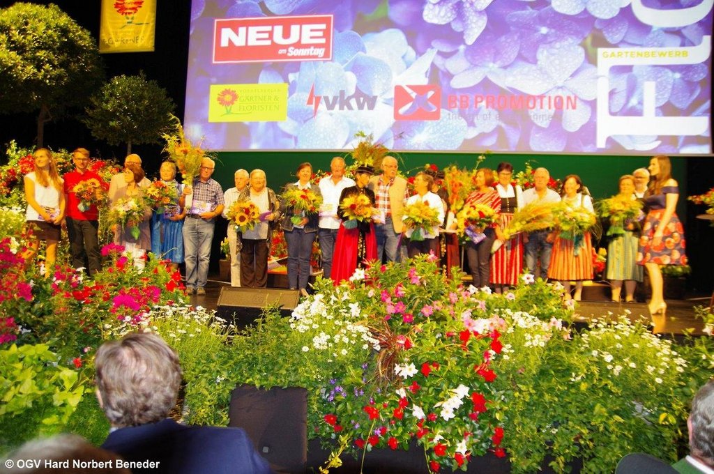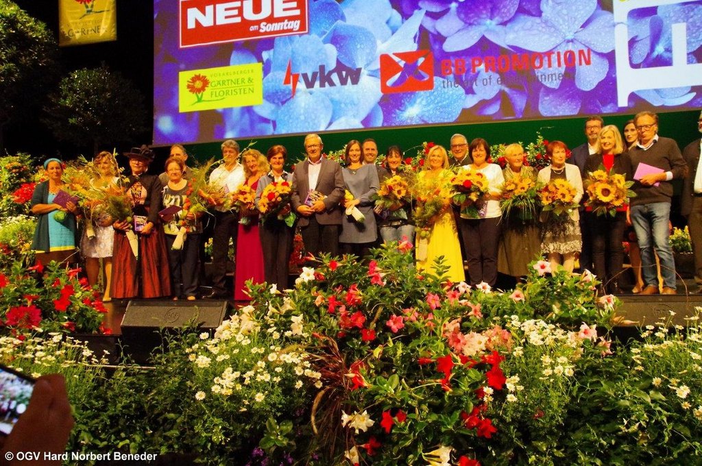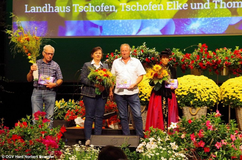 Von den neun von der Ortsjury nominierten Blumengärten, die nach der Teilnehmerzahl bestimmt wurden, konnten fünf einen Landessieg mit nach Hause nehmen. Bei der feierlichen Abschlussgala am Samstag, 28. September im Montfortsaal in Feldkirch wurden ihnen schöne Preise überreicht.