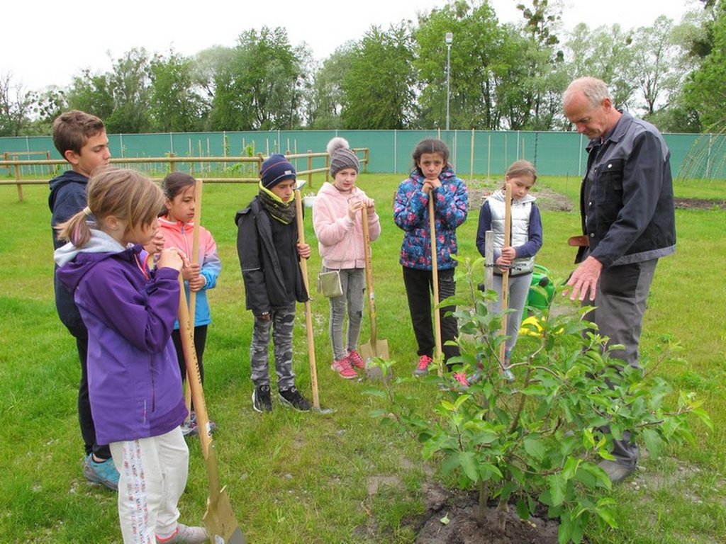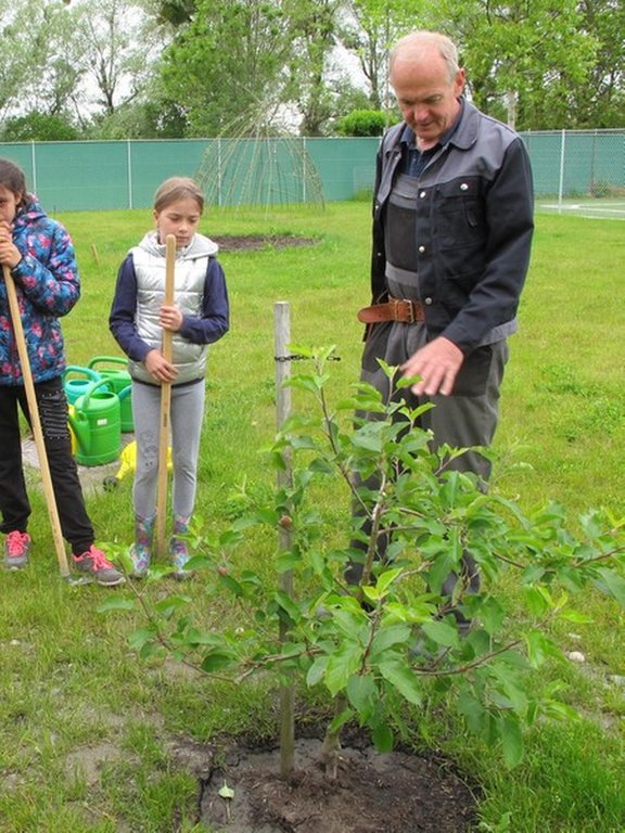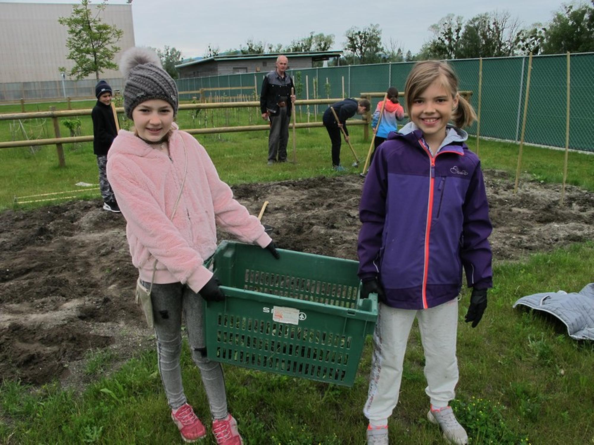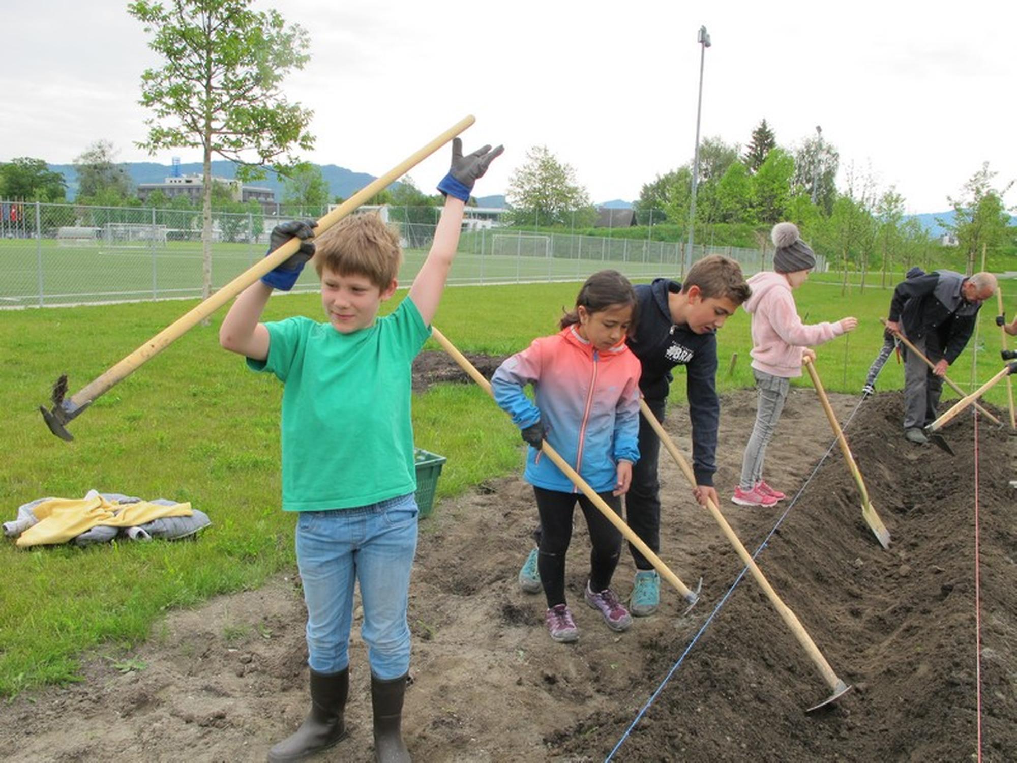 Einen Vormittag verbrachten die Kinder mit Siegfried Rohner, der mit ihnen den schuleigenen Kartoffelacker bepflanzte. Siegfried erklärte ihnen, wie Kartoffeln wachsen und anschließend wurde fleißig gejätet, umgegraben und gepflanzt. Jetzt warten wir und hoffen, dass die Kartoffeln gut wachsen, damit wir im Herbst eine reiche Ernte um Schulrestaurant verarbeiten können.