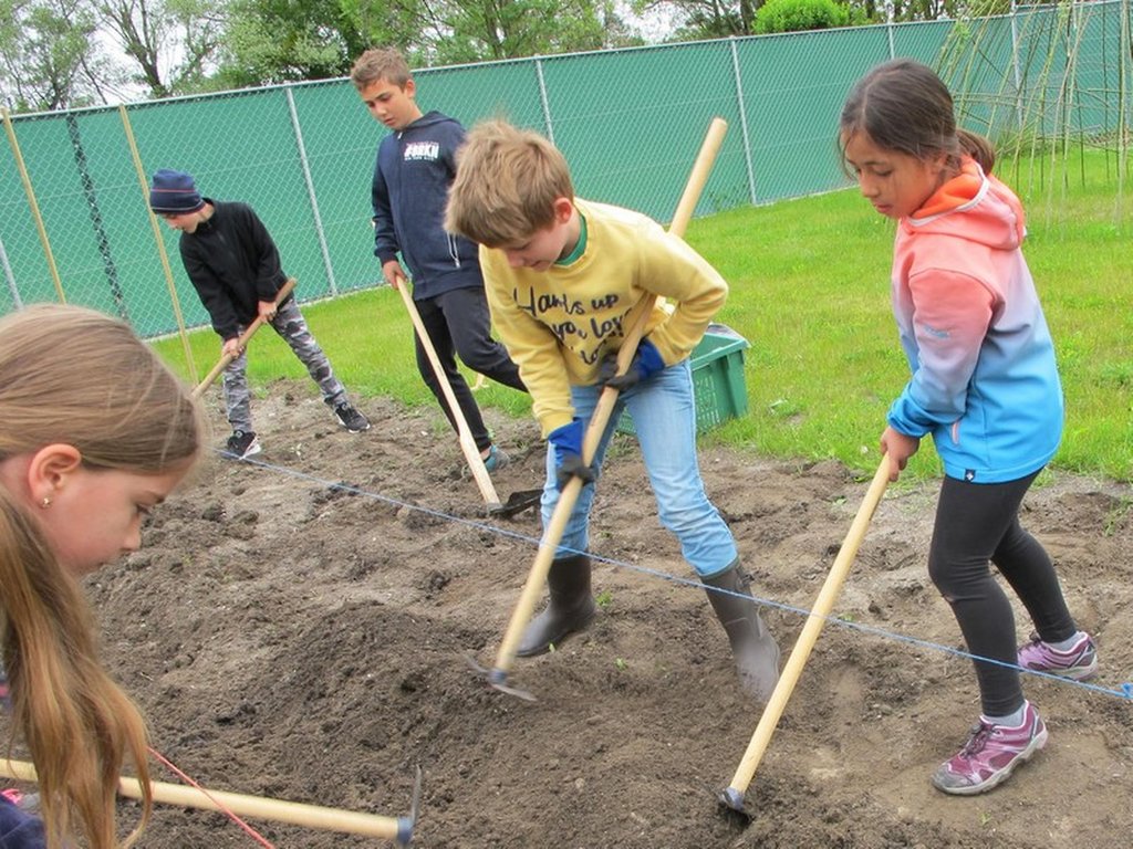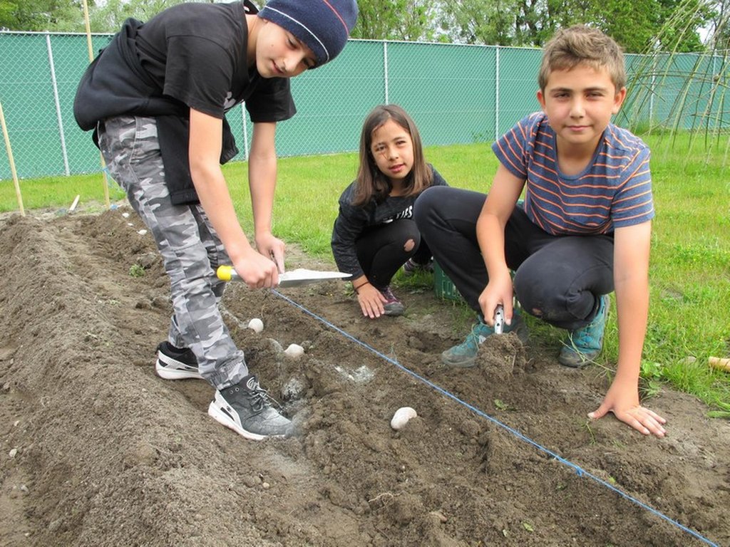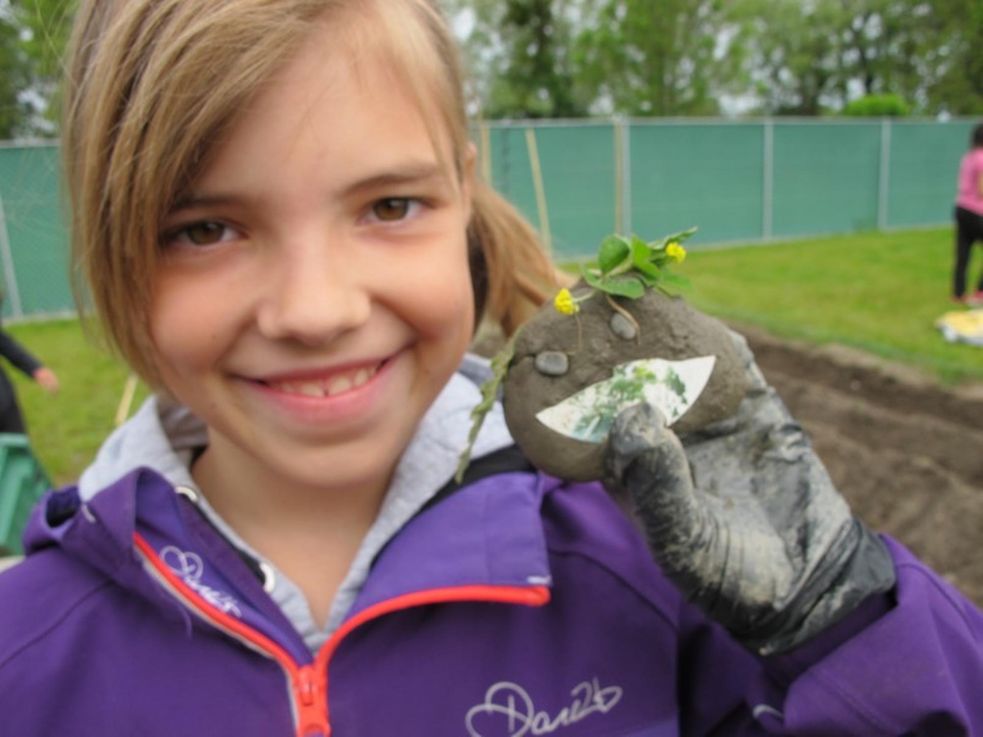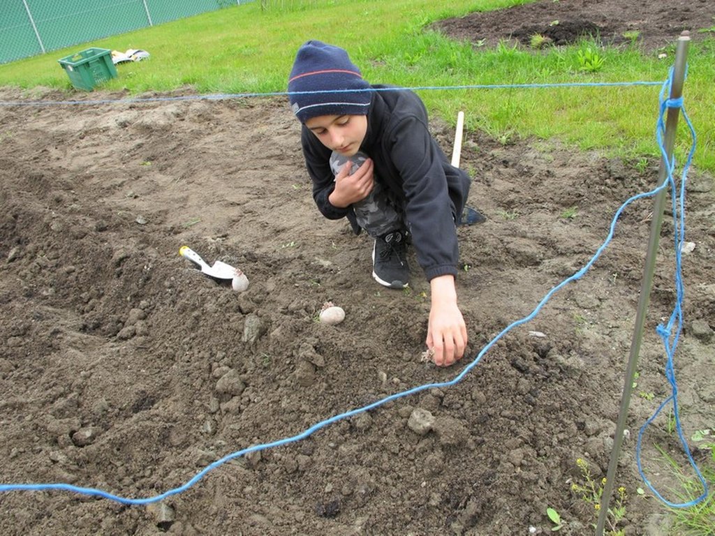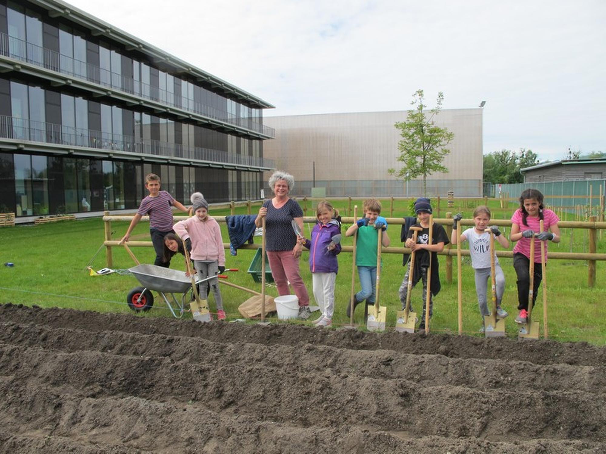 Miniköche Hard bepflanzen ihren Kartoffelacker in der Schule am See
