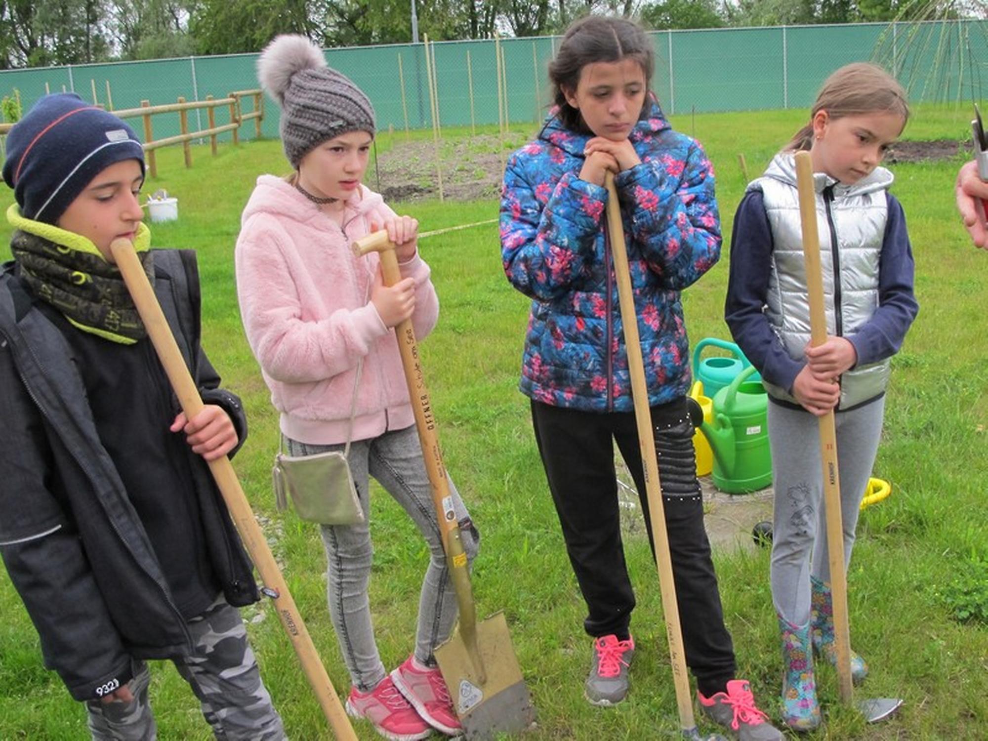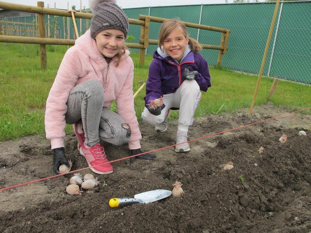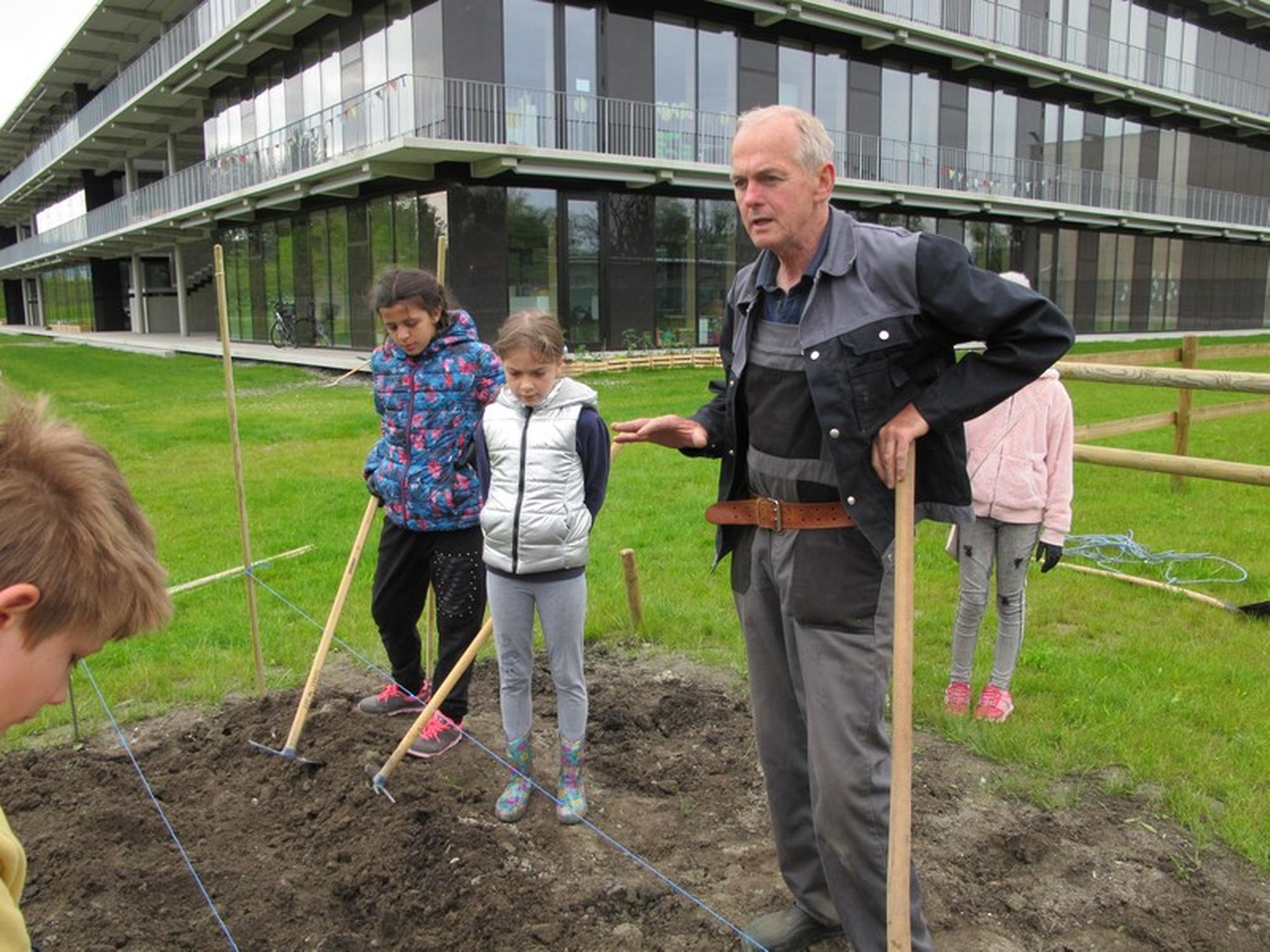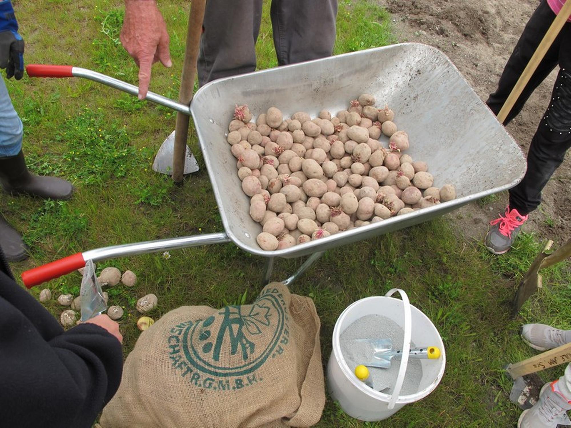 Miniköche Hard bepflanzen ihren Kartoffelacker in der Schule am See