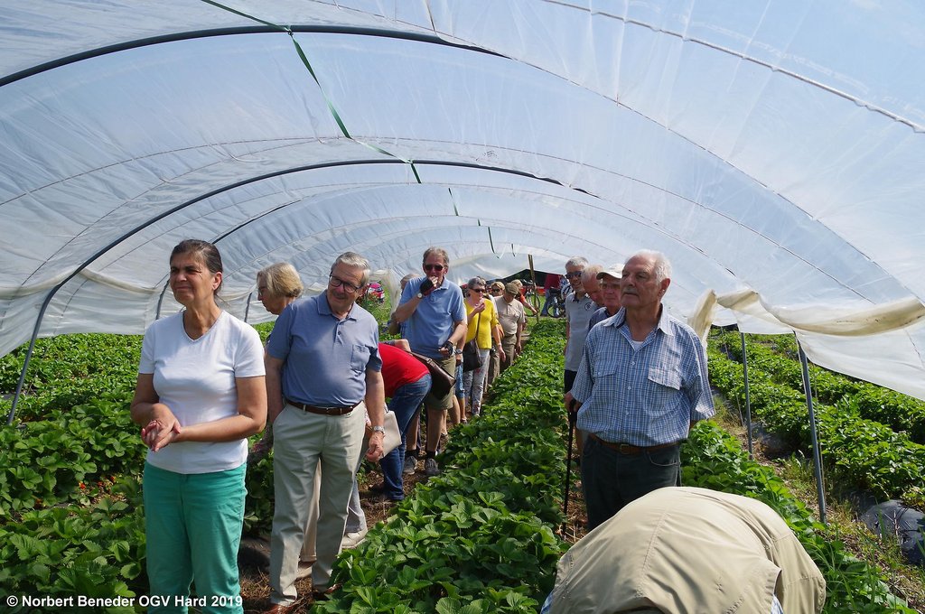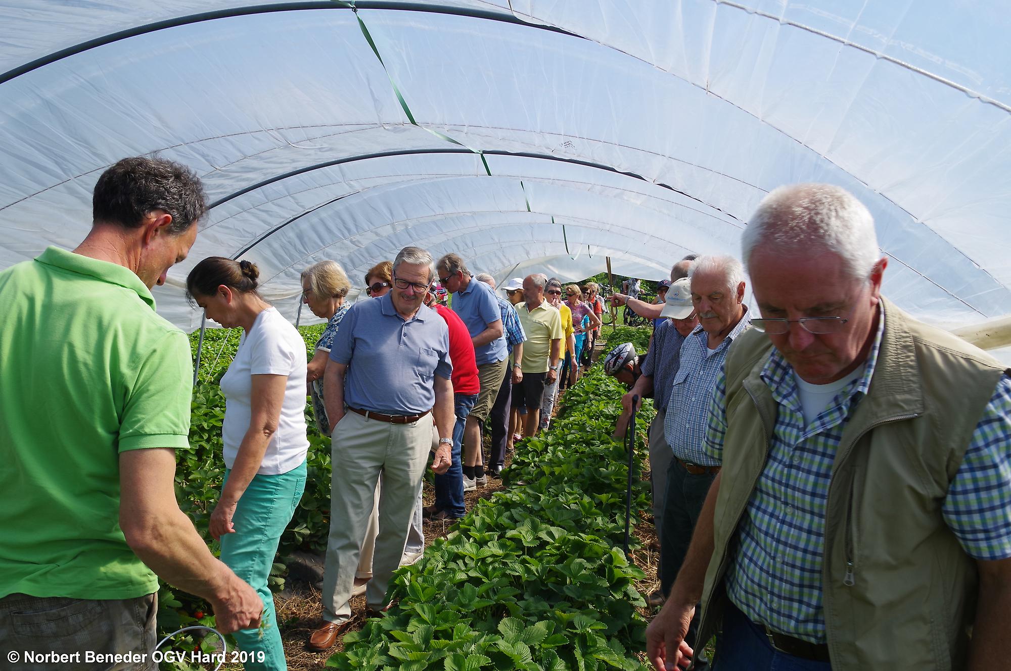 Bei schönstem Sommerwetter trafen sich ca. 30 OGV Mitglieder zum Radausflug. Die Tour ging vorbei am Jannersee über das Ried bis nach Dornbirn zur Fa. Beeren Winder in der Sebastianstraße in Dornbirn. In einem kurzen, aber umso lebendigeren Vortrag erhielten wir einen Einblick über die Verarbeitung und Vermarktung von Beeren, Spargel, Rhabarber und vieles mehr im Familienbetrieb. Neben der Topqualität der Produkte ist der Fa. Winder auch eine faire Entlohnung ihrer Mitarbeiter - auch wenn sich dies u.U. in einem höheren Preis für die Kunden niederschlägt - wichtig. Erntefrische Erdbeeren versüßten unseren Aufenthalt.