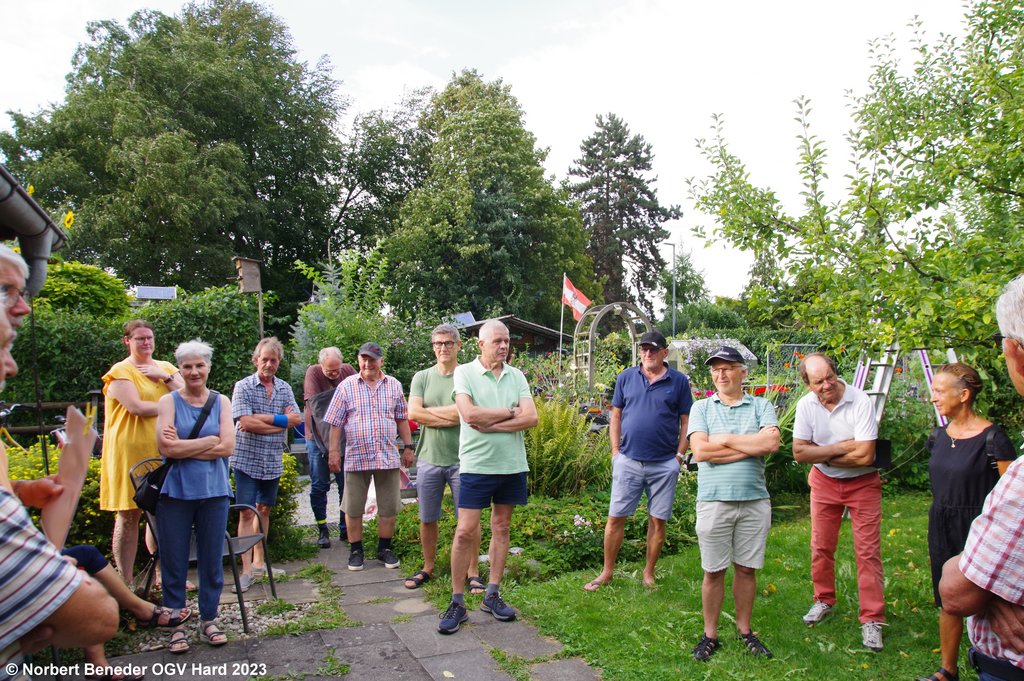 Für den diesjährigen Sommerschnittkurs in den Schrebergärten Lerchenau, an dem 36 interessierte Gartenfreunde teilnahmen, konnten wir neben unserem Baumwärter Siegi Rohner auch Michael Gunz vom OGV Wolfurt als Referenten gewinnen. Michael Gunz hob die Bedeutung des Sommerschnittes als Ergänzung zum Winterschnitt hervor. Durch den Sommerschnitt verbessert man das Gleichgewicht zwischen Wurzel- und Blattmasse. Die Alternanz kann durch einen richtigen Sommerschnitt verringert werden.
