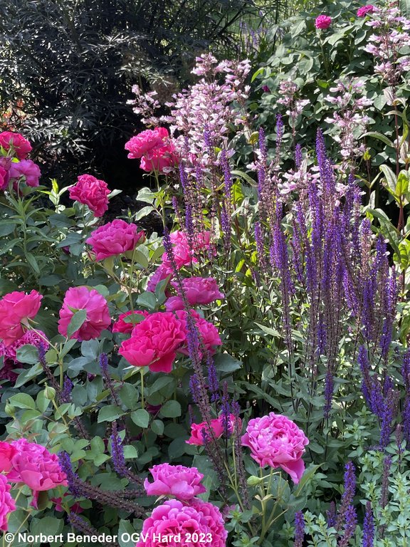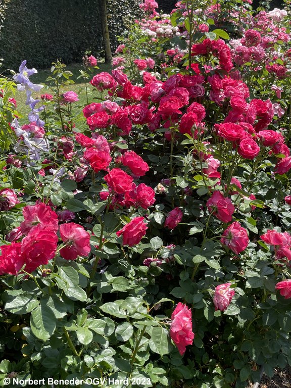 Am Sonntag, den 18. Juni ging es mit dem Bus von Hehle-Reisen über die Schweiz ins Garten- und Rosenparadies zum Landhaus Ettenbühl bei Bad Bellingen-Hertingen in Baden-Württemberg. 52 Rosenbegeisterte füllten den Bus. Vor über vierzig Jahren war Ettenbühl noch ein Acker- und Weideland. Mit viel Mühe und Geduld wurde daraus ein sieben Hektar großer englischer Landschaftsgarten mit 26 Gartenzimmern, mit hunderten ausgefallenen Gehölzen und tausenden von Rosen und Stauden. Schon beim Eingang in den Garten wird man von dem Duft der Rosen überwältigt. Die professionelle 1 ½ h Führung durch den blühenden Garten ließen die Herzen der Gartenfreunde höherschlagen. Das kompetente Personal stand auch Rede und Antwort - speziell den Fragen der Rosenliebhaber. In diesem Garten kann man sich stundenlang verweilen und im Schatten gemütlich ausruhen. Natürlich wurden in der eigenen Gärtnerei verschiedene Pflanzen gekauft und nach Hause mitgenommen. Im Gartenrestaurant nahmen die Teilnehmer Kaffee, Wein und Bier zur Löschung des Durstes zu sich. Leider wurde die Zeit knapp, da wir eine weitere Besichtigung noch vor uns hatten. Aber viele waren sich einig noch einmal nach Ettenbühl zu kommen.