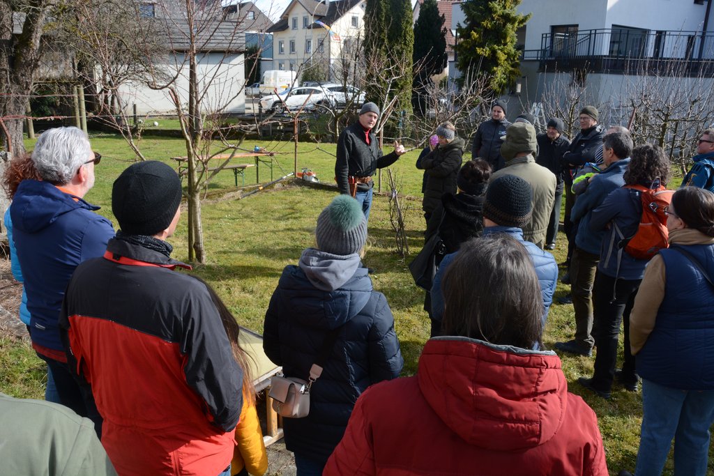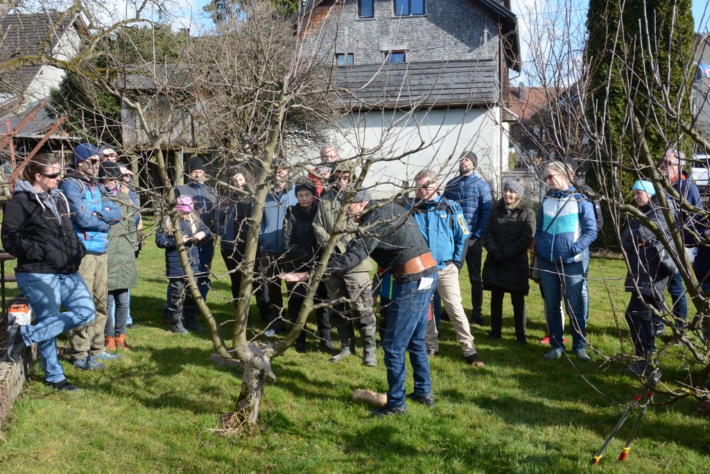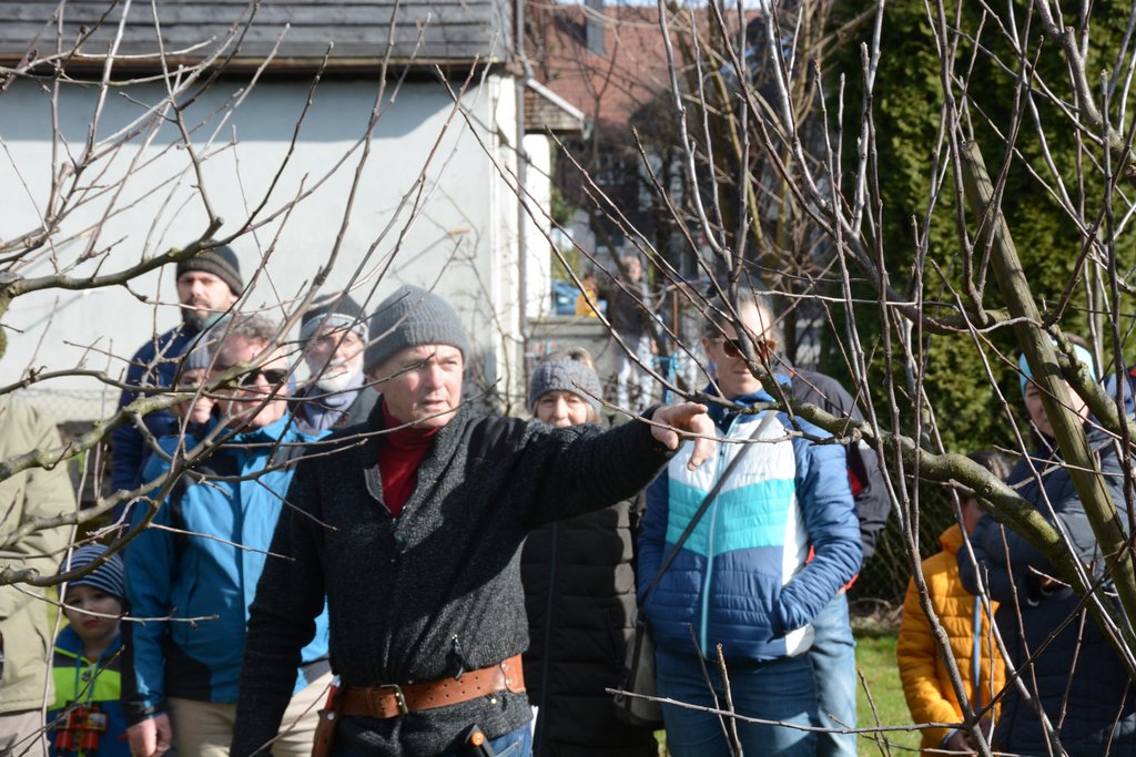 Die Teilnehmer waren sehr interessiert und stellten viele Fragen zum richtigen Schnitt und zur Pflege der Obstbäume.