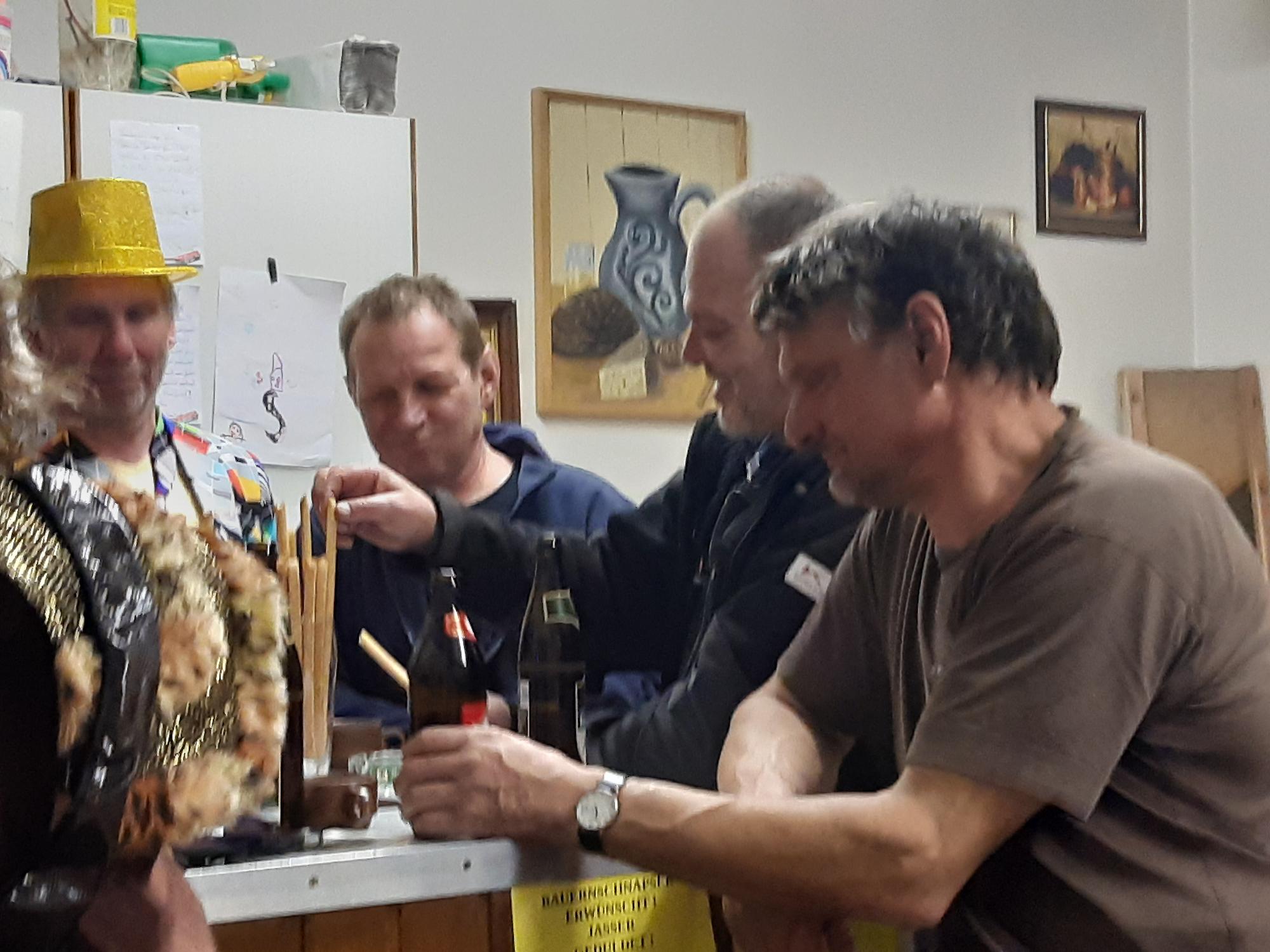 Am "Gumpiga Donnschtig" veranstaltete Kantinör Rainer Benzer einen Fasnathock im OGV Schopf.