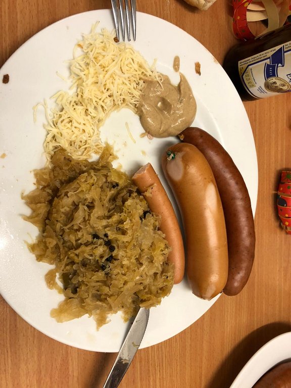 Für das leibliche Wohl kredenzte der Kantinör "dreierlei Würste an selbsterzeugtem Sauerkraut und reichlich Senf und Kren".