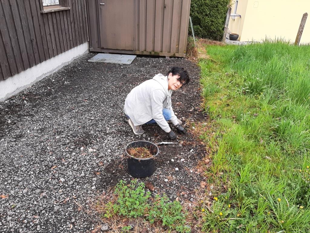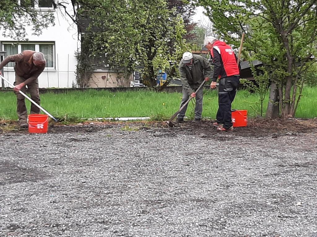 Währenddessen waren andere Mitglieder mit der Unkrautentfernung und dem Aufbereiten des Vorplatzes vor dem Schopf beschäftigt.