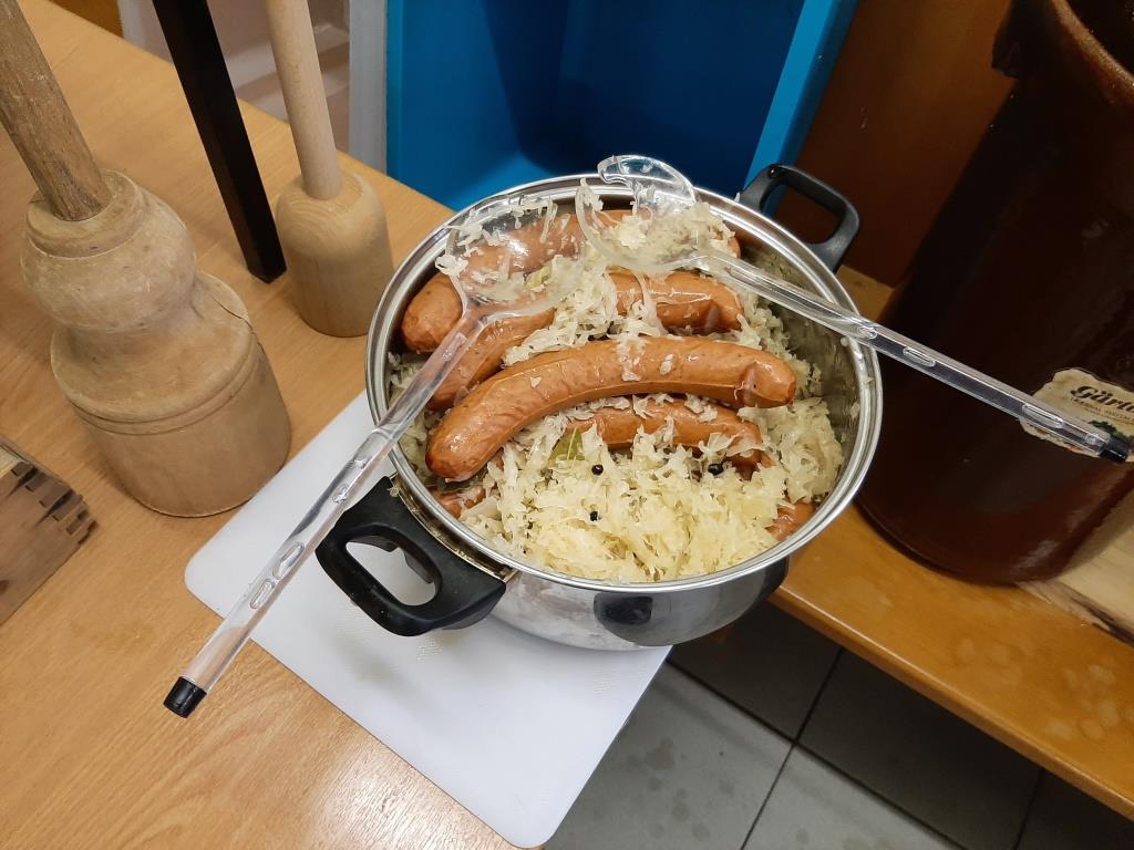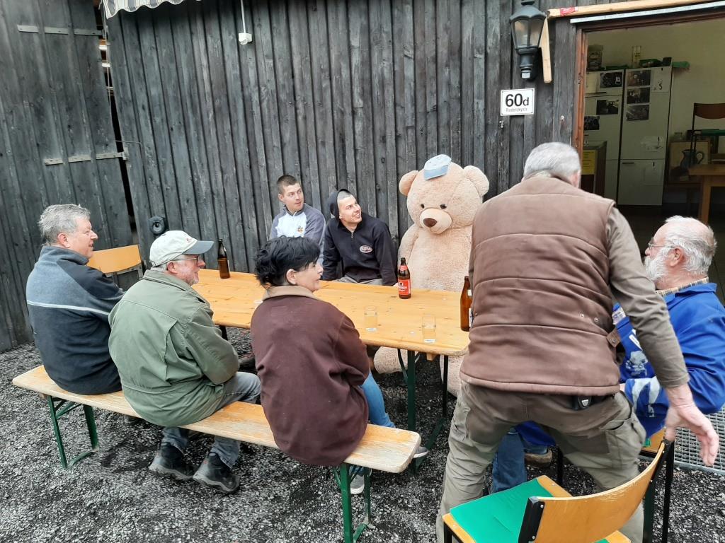 Zum Dank für die geleistete Arbeit bewirtete Kantinör Rainer Benzer die Helfer mit Hauswurst und Kraut, sowie Getränken bei einem gemütlichen Hock.