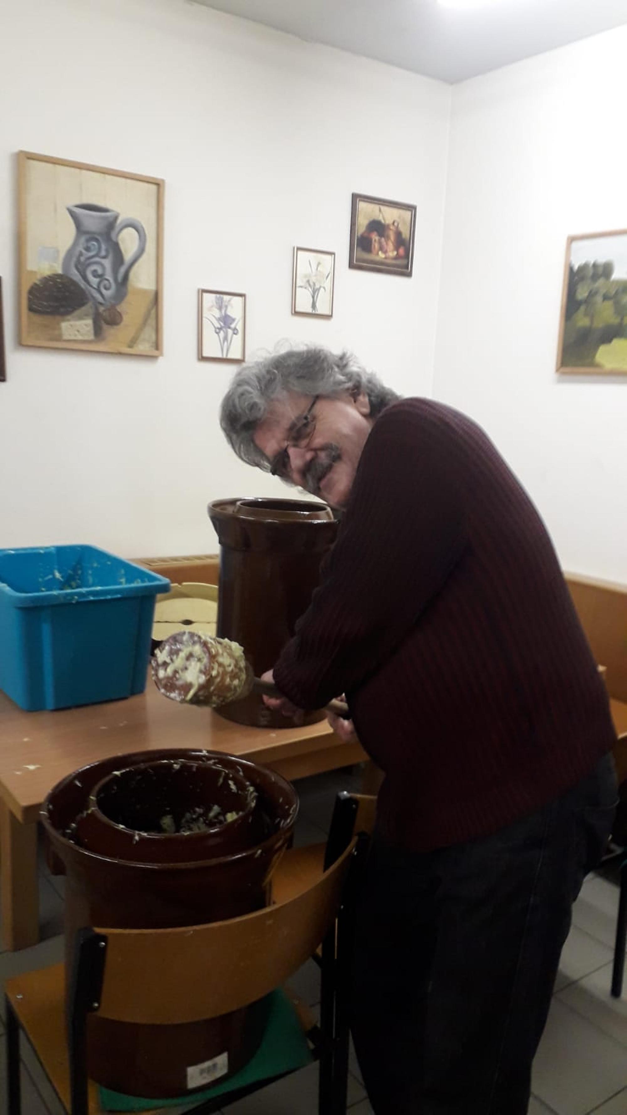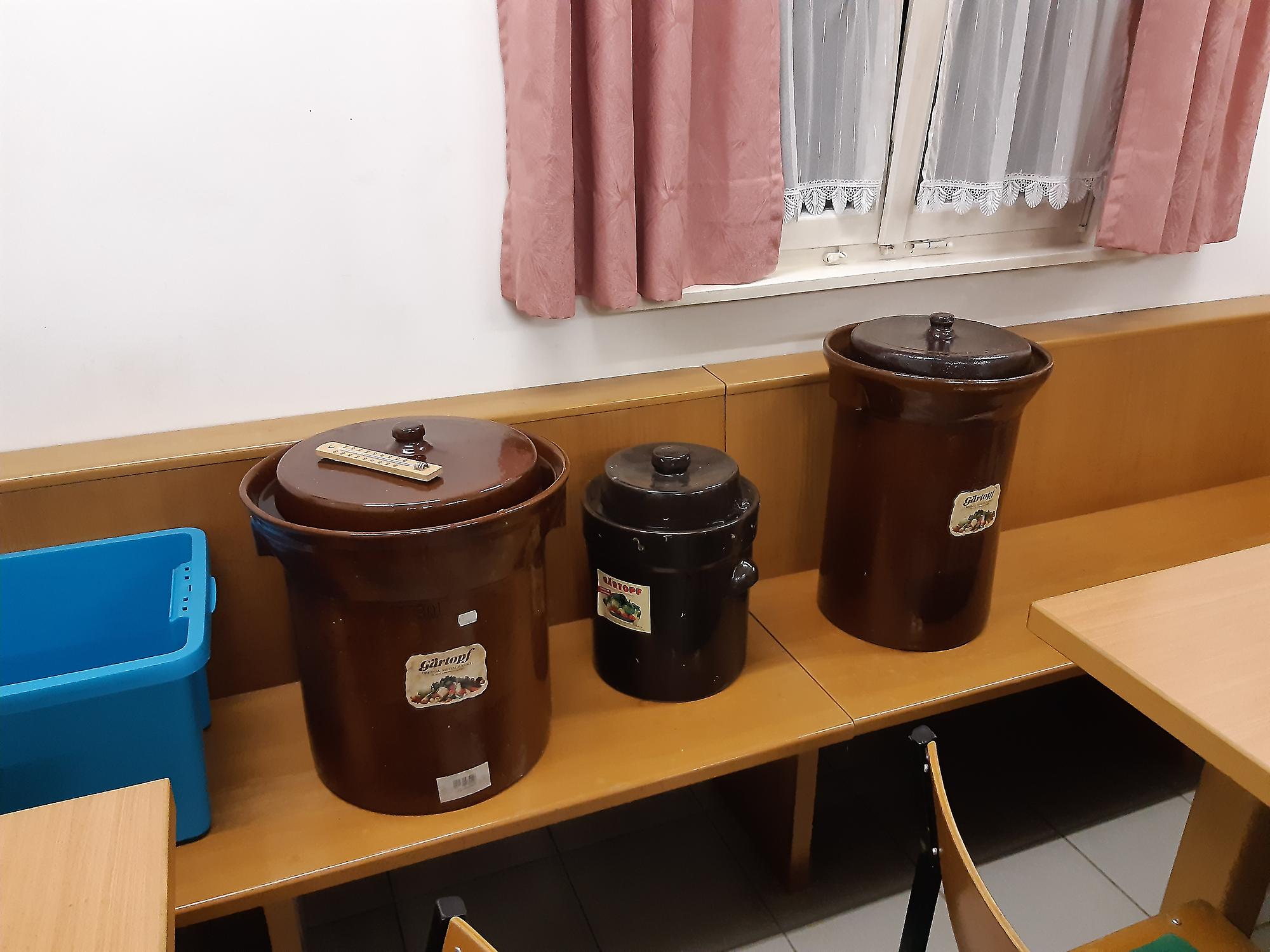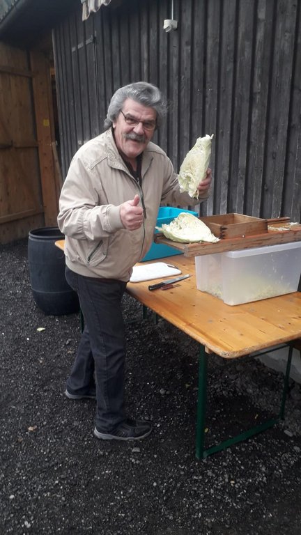 Nun vergärt das Kraut zu Sauerkraut im OGV Schopf und wird dann unter den Mitgliedern des OGV verköstigt und verspeist.