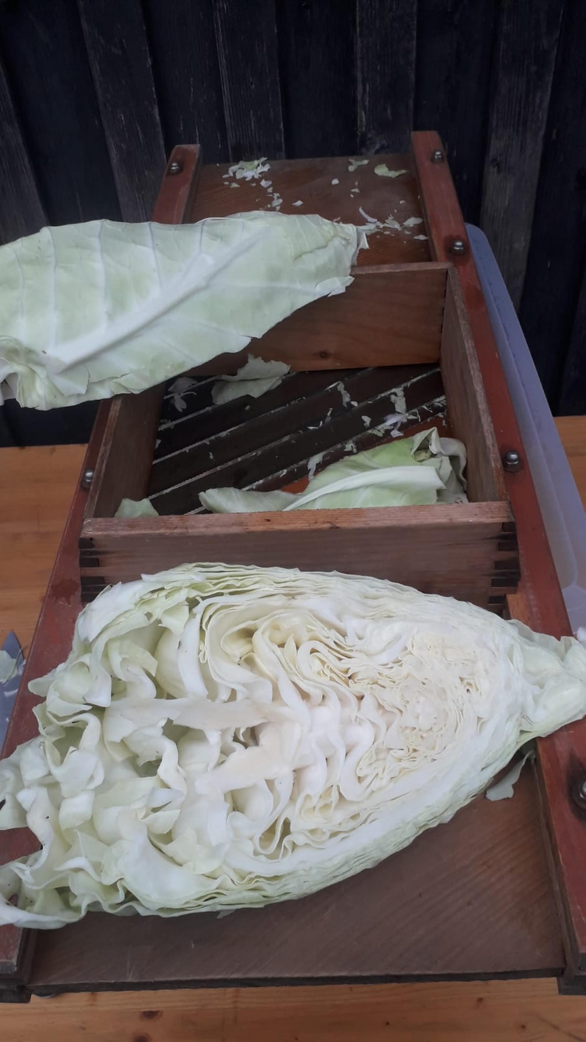 Nach dem Ernten wurden die Krautköpfe eingehobelt und gewürzt.