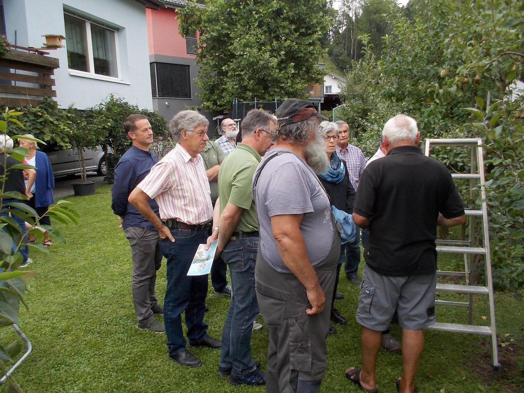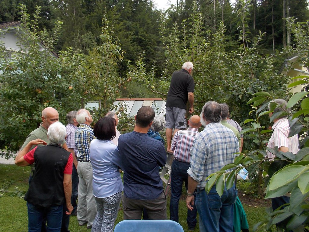 Anton Schiefer begutachtete die Resultate des Baumschnittkurses vom Frühjahr, und verbesserte hier und da Form und Richtung der Bäume.