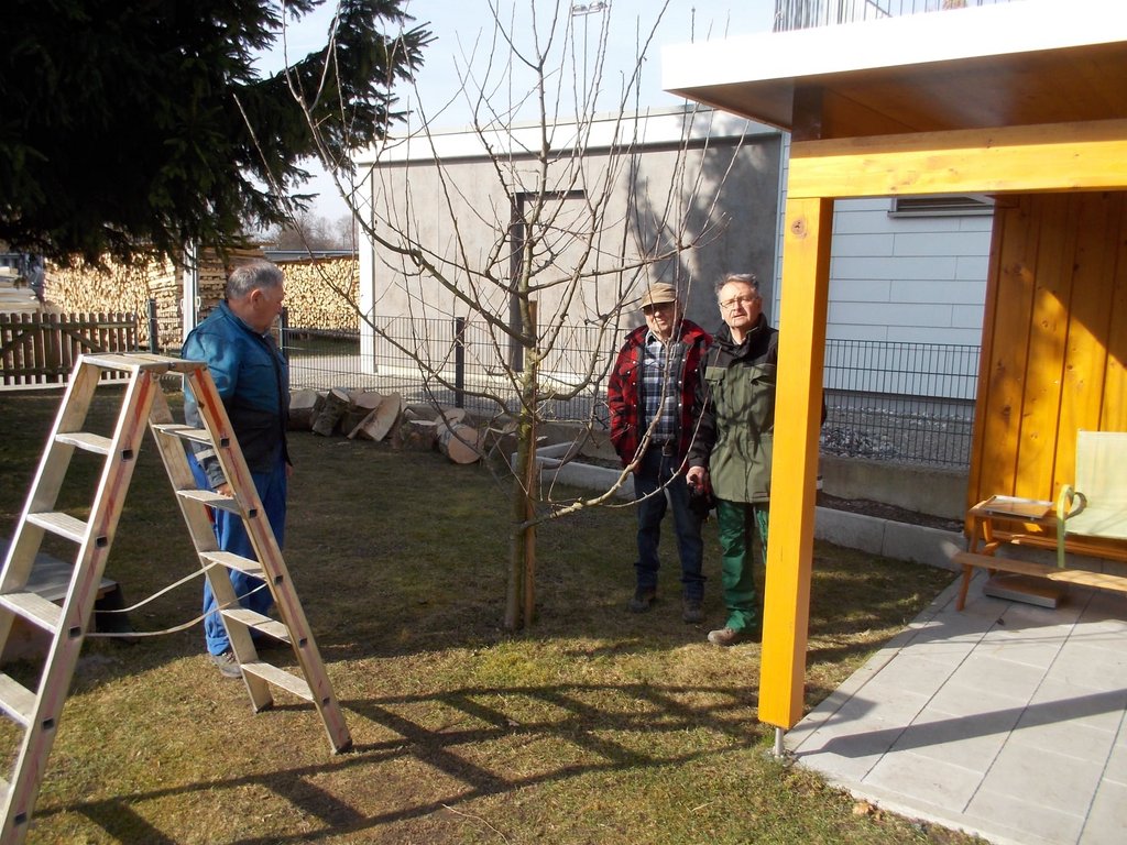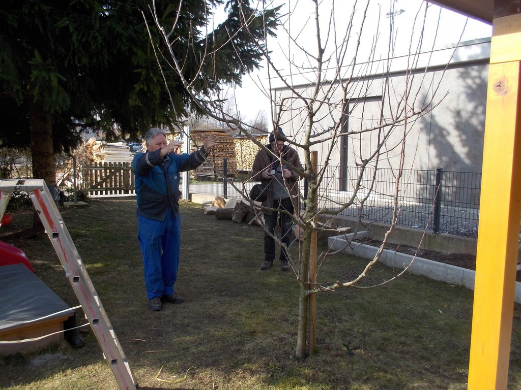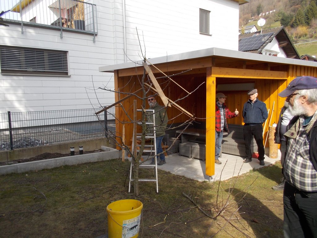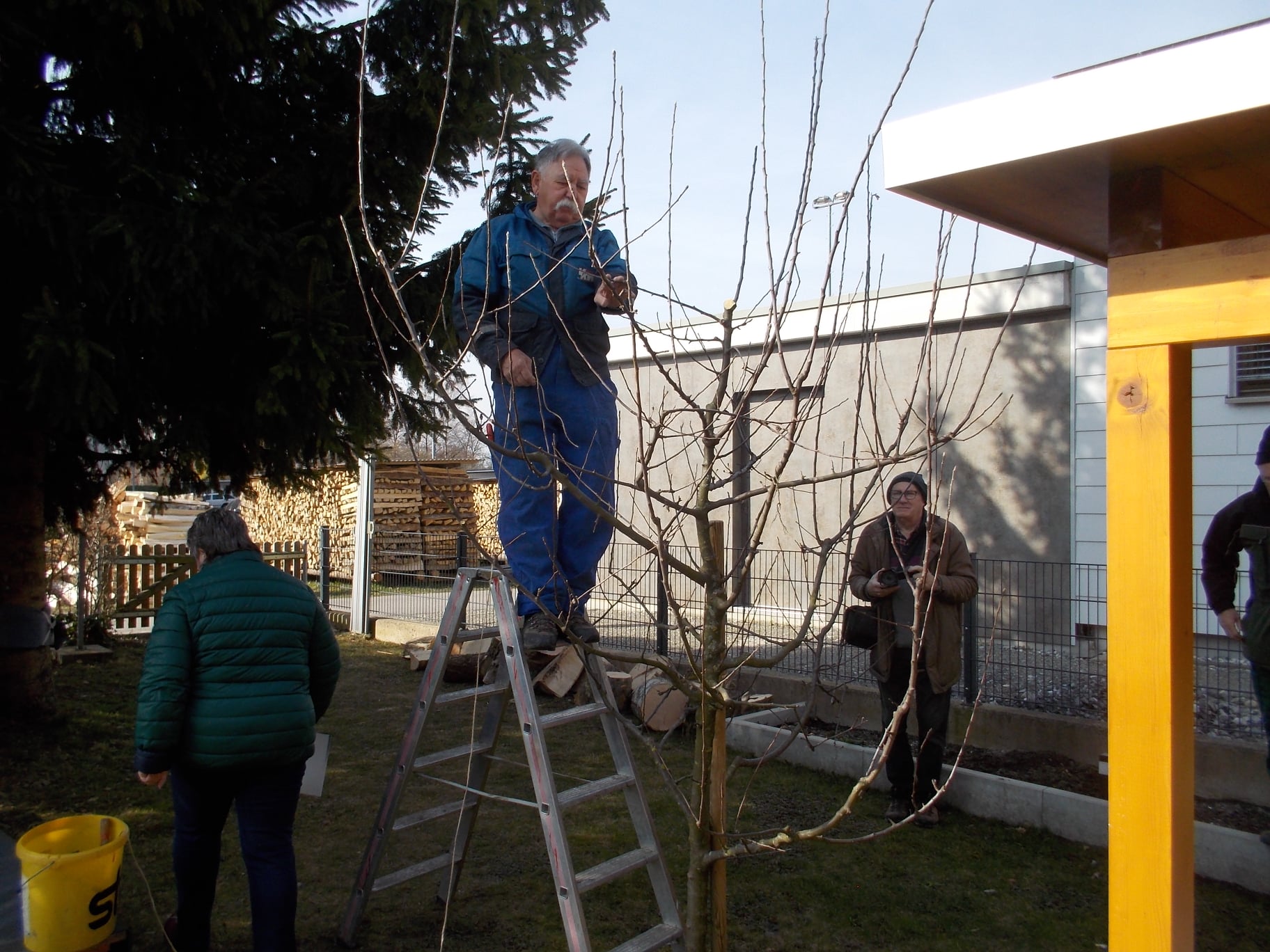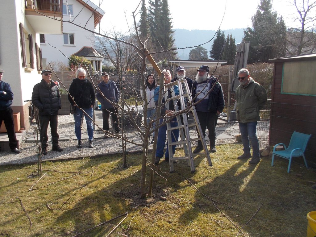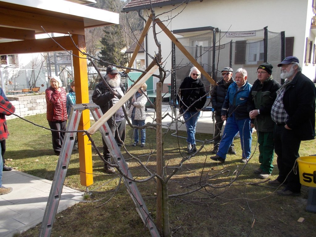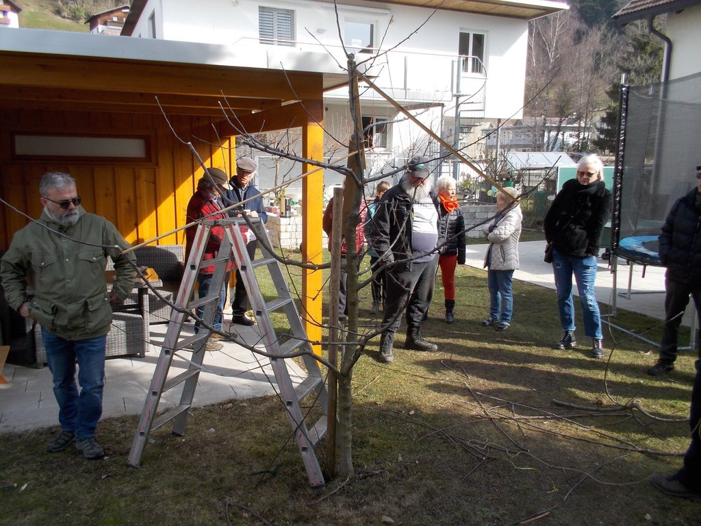Am 12.03.2022 trafen sich 14 Mitglieder bei Benjamin Alomberger um sich von Reinhard Hagspiel in die Feinheiten des Baumschnitts einweihen zu lassen: