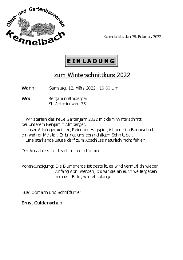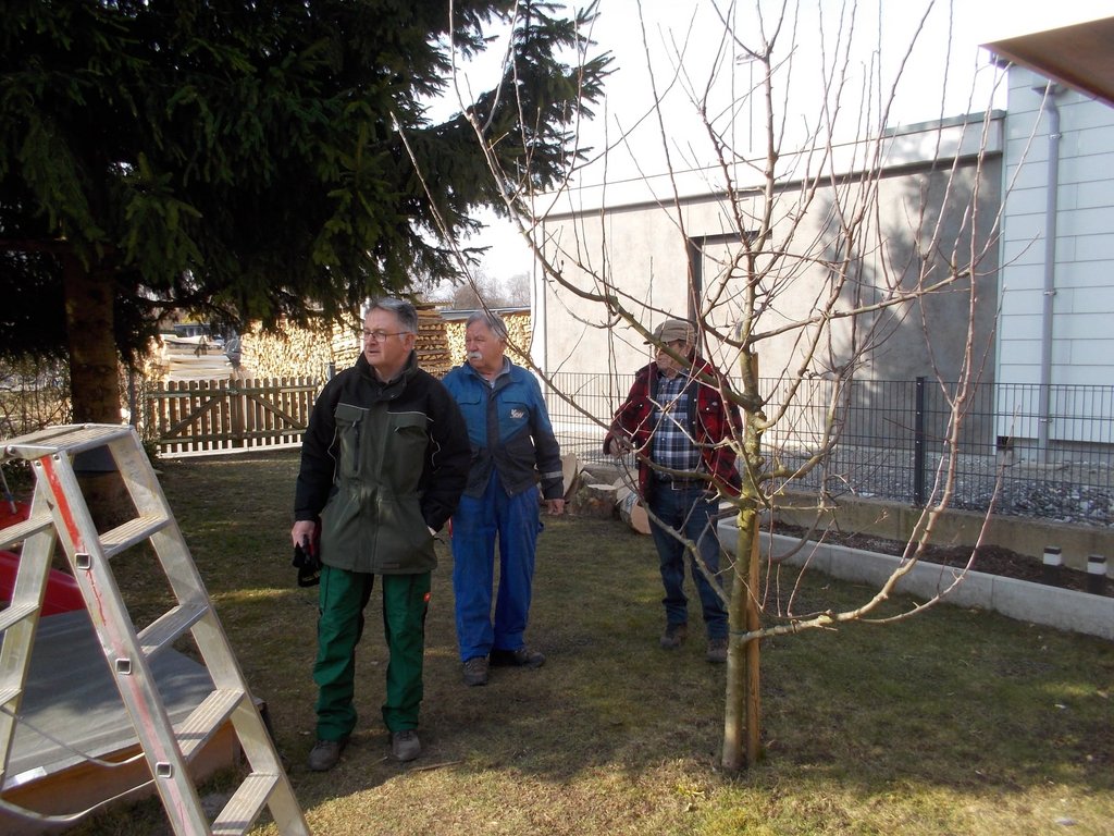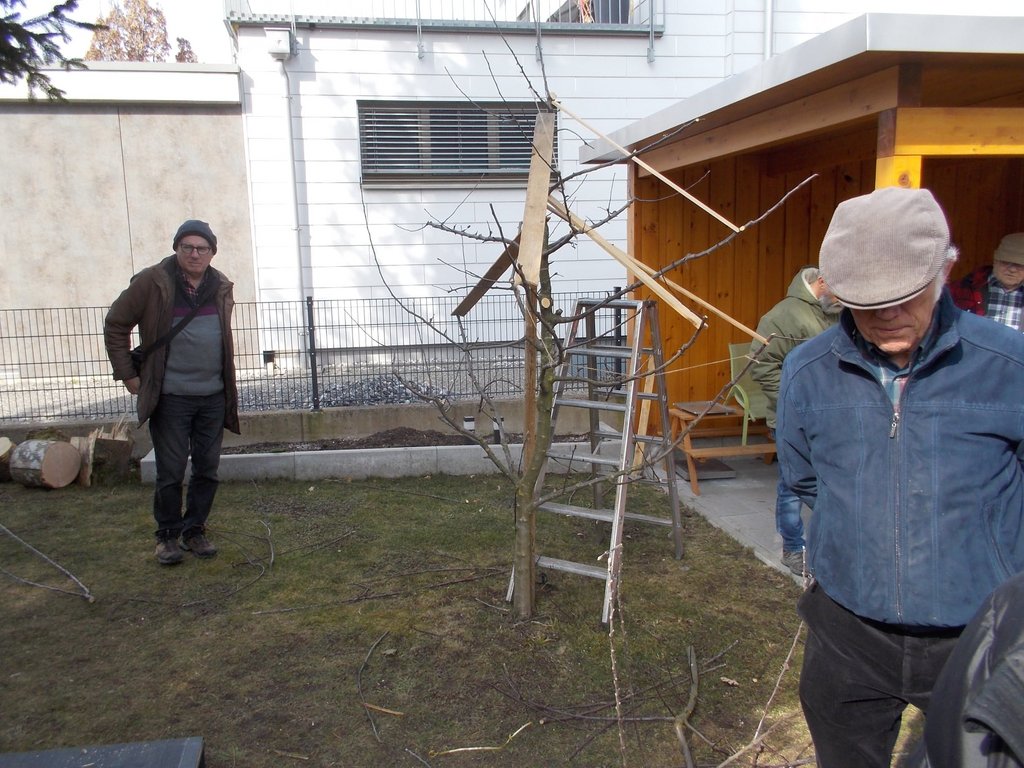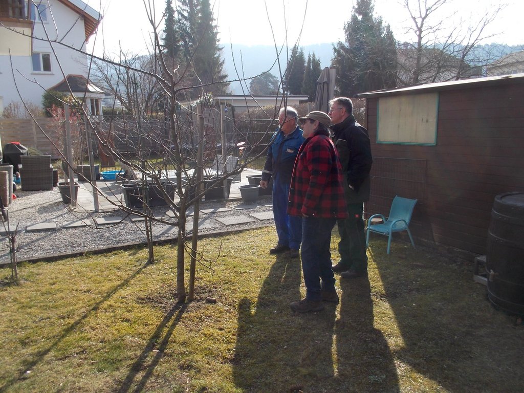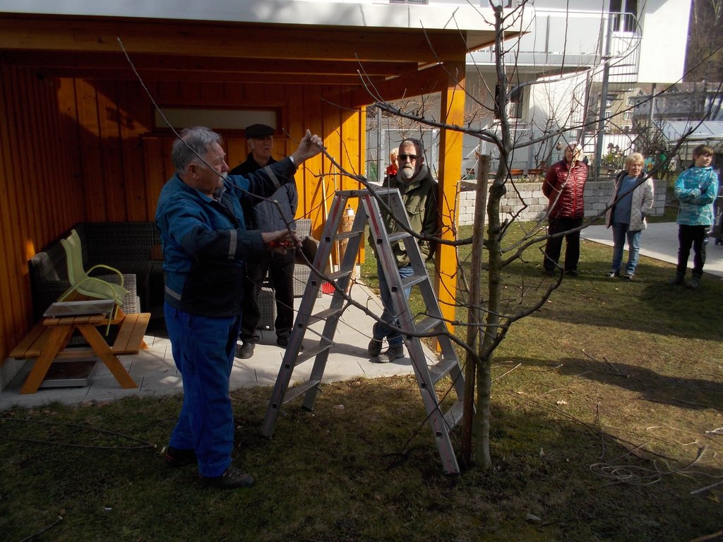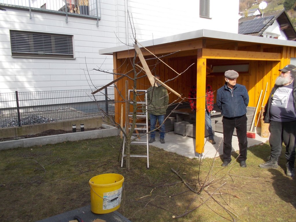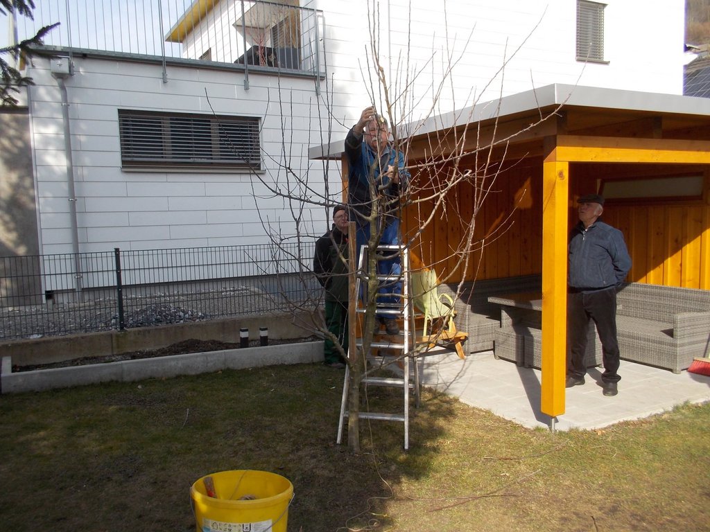 Am 12.03.2022 trafen sich 14 Mitglieder bei Benjamin Alomberger um sich von Reinhard Hagspiel in die Feinheiten des Baumschnitts einweihen zu lassen: