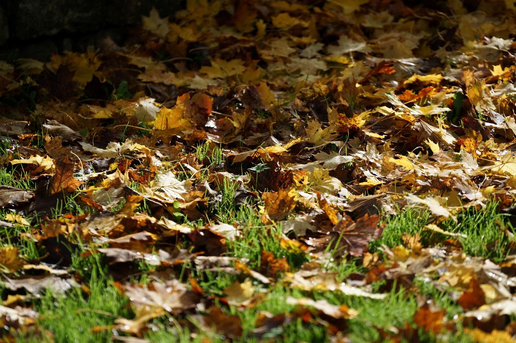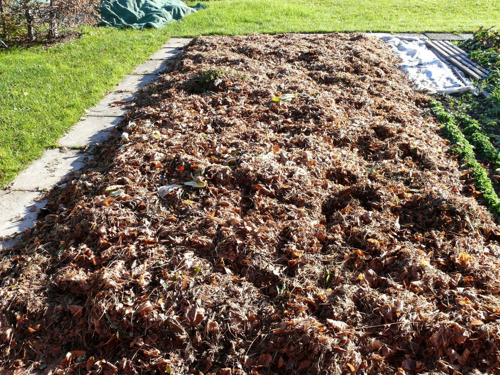 Natürlich müssen Wege zur Verkehrssicherheit von den Blättern befreit werden. Auch der Rasen leidet unter einer Laubschichte. Zerhäckselt man das Abgefallene aber mit dem Rasenmäher, erhält man einen wunderbares Ausgangsmaterial um ungenutzte Beete, Staudenflächen, Hecken und Gehölze mulchen. Etwa eine Handbreite dick schützt dieses Häckselgutes den Boden vor Austrocknung. Flachwurzler lieben eine Bedeckung, da sie ihre Wurzeln vor Frösten schützt. Zudem zerlegen bodenbürtige Mikroorganismen die Blätter und reichern so die oberste Bodenschichte mit Nährstoffen an. Das Ergebnis: Eine krümelige, fruchtbare Erde entsteht und wir sparen Dünger.
