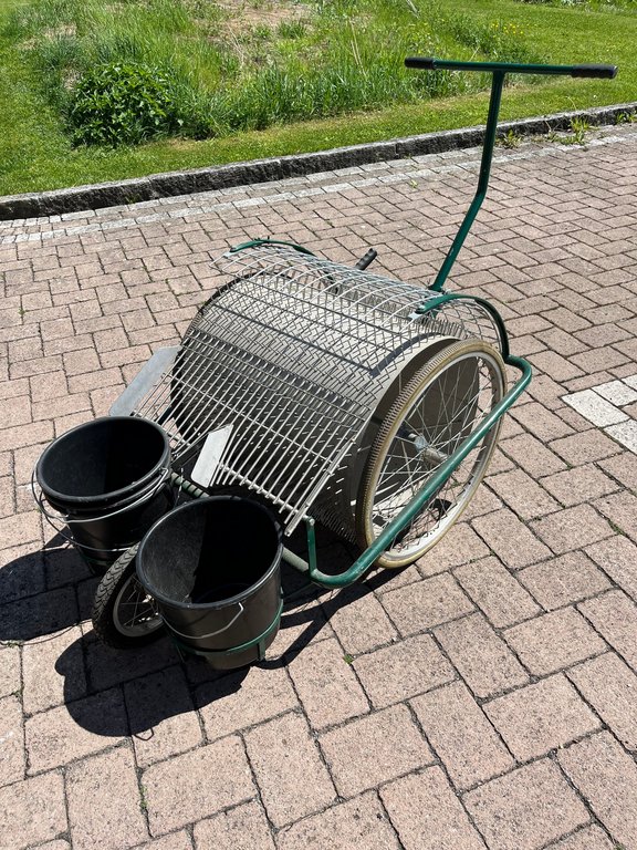 In Braz ist ein gebrauchter, voll funktionsfähiger Obstsammler / Obst-Igel der Firma Huemer abzugeben.