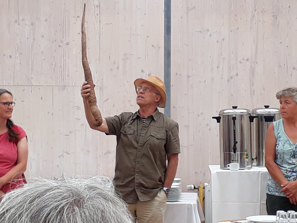 Auf dem Andreashof in Überlingen lernten wir die Lichtyam – eine Yamswurzel kennen. Nicht nur sie wird hier nach biologisch-dynamischen Richtlinien angebaut. Interessant waren auch der Kräutergarten und die speziell angefertigte Trocknungsanlage. Nach einem leckeren Mittagessen führte uns unser Weg zur Fischermühle an den Nordrand der Schwäbischen Alb.