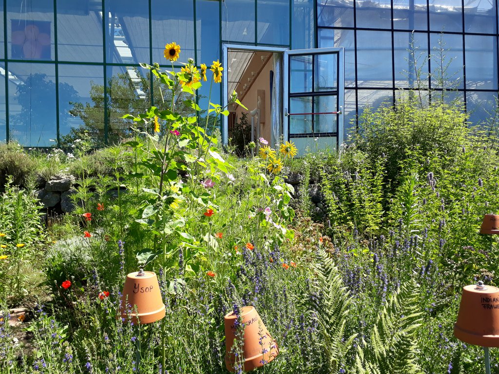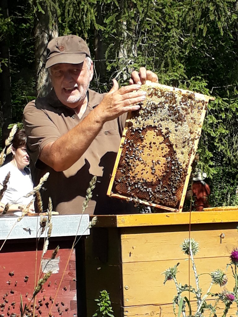 Hier wurden wir mit Kaffee und Kuchen empfangen. Mehrere Führungen standen zur Auswahl und es bot sich auch Gelegenheit das Gelände auf eigene Faust zu erkunden. Die Firma WALA Heilmittel bewirtschaftet hier einen Kräutergarten und betreibt ein Pflanzenlabor. Der Verein Mellifera e. V. ermöglichte uns Einblicke zur wesensgemäßen Bienenhaltung und über die Steinsetzungen im Gelände der Fischermühle gab es einiges zu erfahren. Sehr imposant war auch die riesige Bienenwachskugel, in die man sich hineinsetzen konnte.