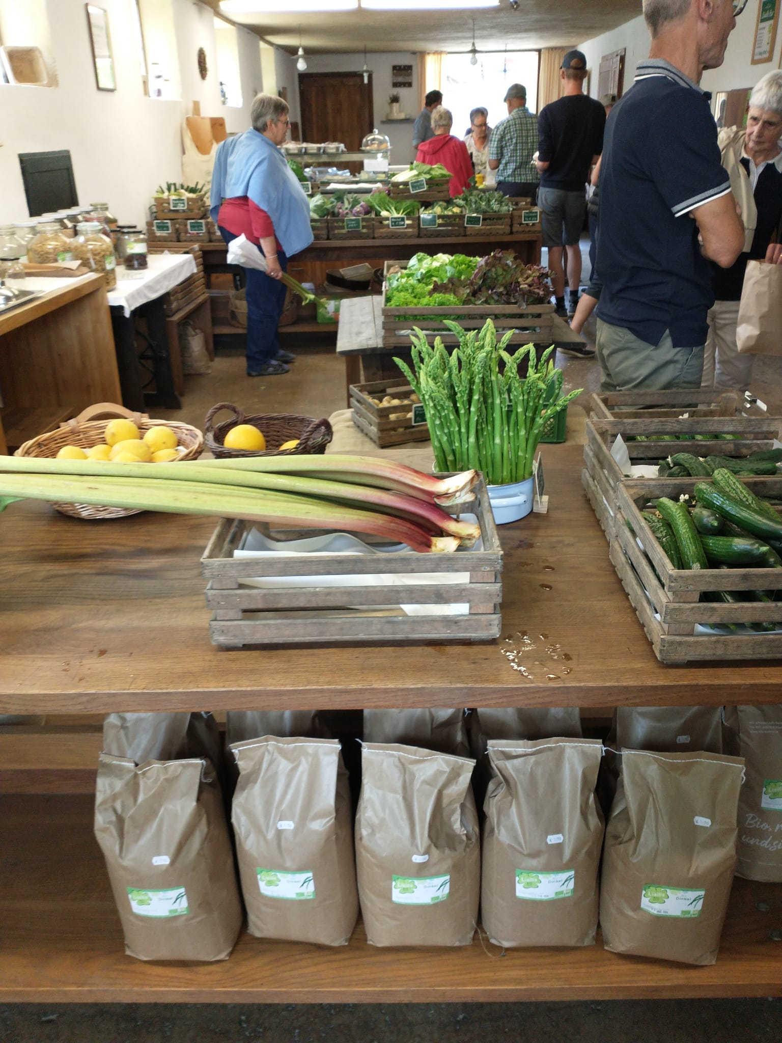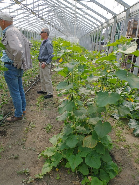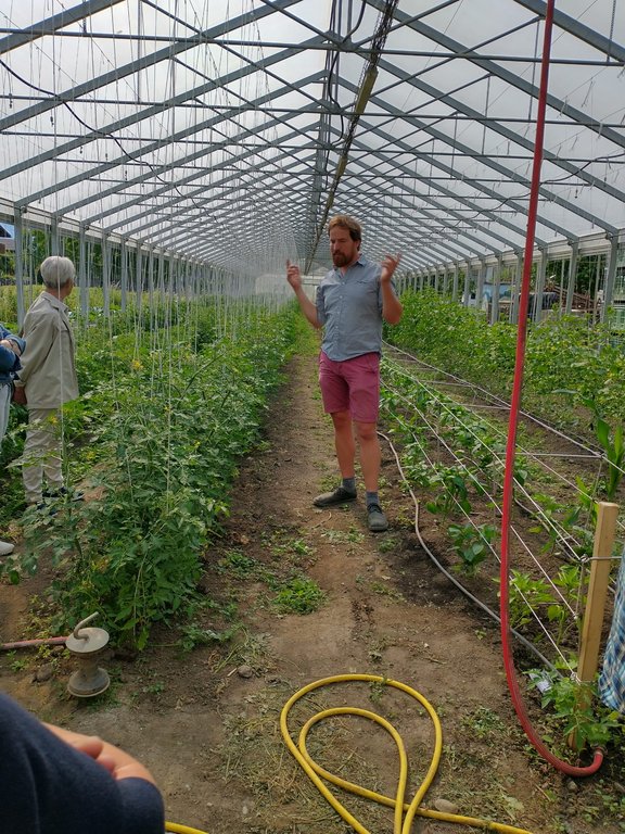 Den z'Nüner ließen sich alle Teilnehmer bei einer Pause schmecken und schon ging es weiter zum Biohof. Im Treibhaus und auf dem Acker erfuhren wir Spannendes über den Hof. Neben Ackerwirtschaft wird auch Viehwirtschaft betrieben.
