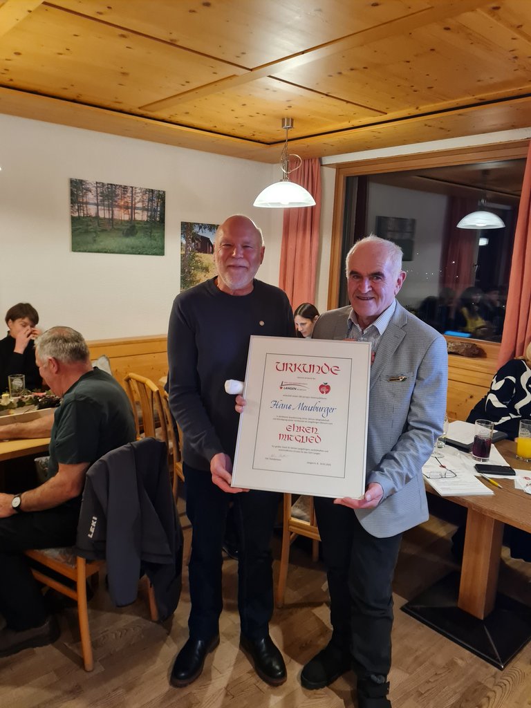 Ein ganz besonderes Highlight im heurigen Jahr war die Ernennung unseres langgedienten Obmannes Hans Meusburger zum Ehrenmitglied. Er hat seit 40 Jahren ein Amt im Verein inne. Für die unzähligen Stunden, die er für den Verein aufgebracht hat und auch immer noch aufbringt, können wir ihm gar nicht genug danken.