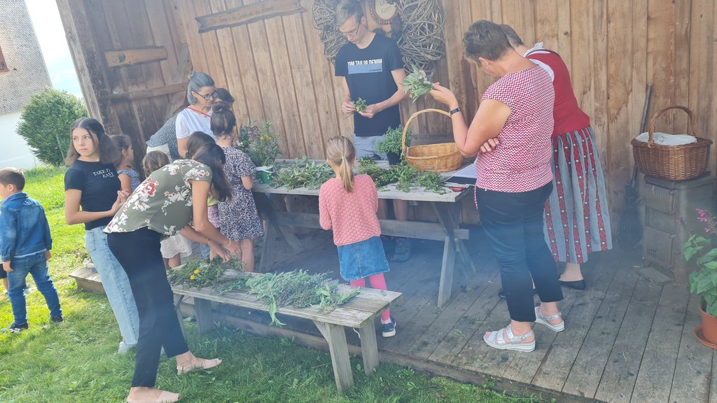 Trotz der Hitze der letzten Zeit konnten wir noch einige Kräuter ernten und so konnten viele Kräuterbuschen gebunden werden. Es hat uns sehr gefreut, dass sowohl Kinder als auch Erwachsene unserer Einladung gefolgt sind.