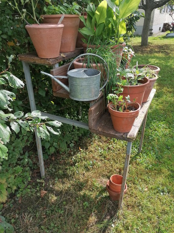 Beeren, Bäumchen, Kräuter, Stauden, Zwiebel, Töpfe und Gartenwerkzeug…