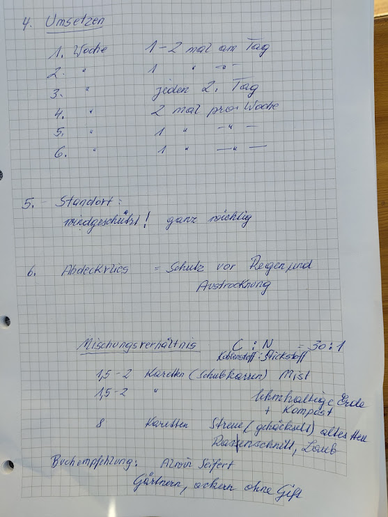 - gesiebter fertiger Kompost (Mikroorganismen zu impfen)