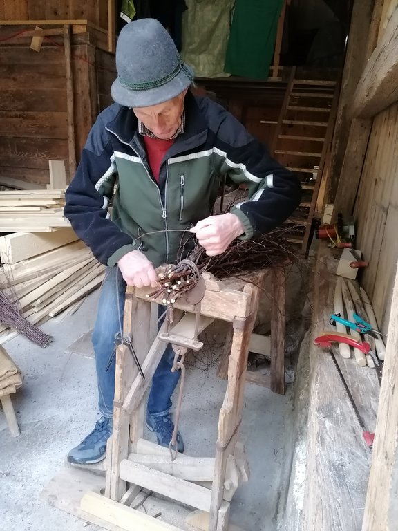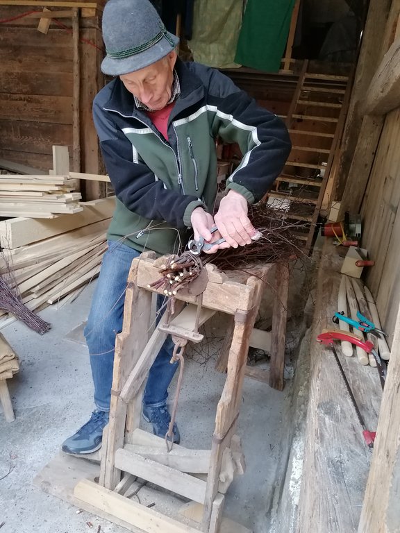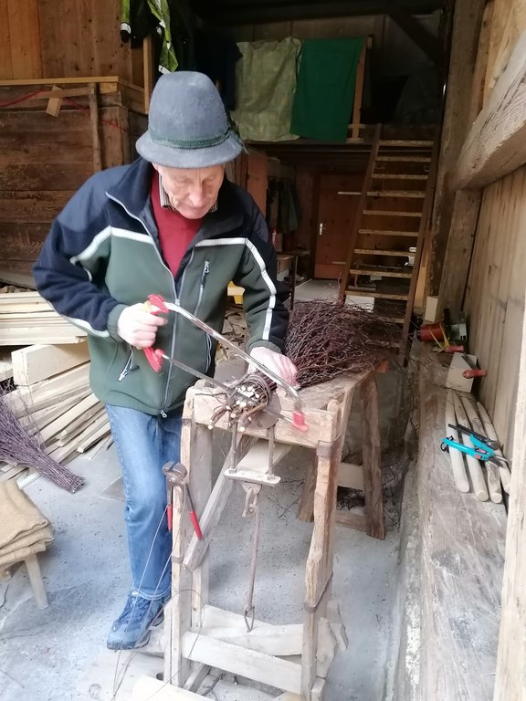 Herr Düringer zeigte uns wissbegierigen Frauen wie man einen Reisigbesen herstellt: