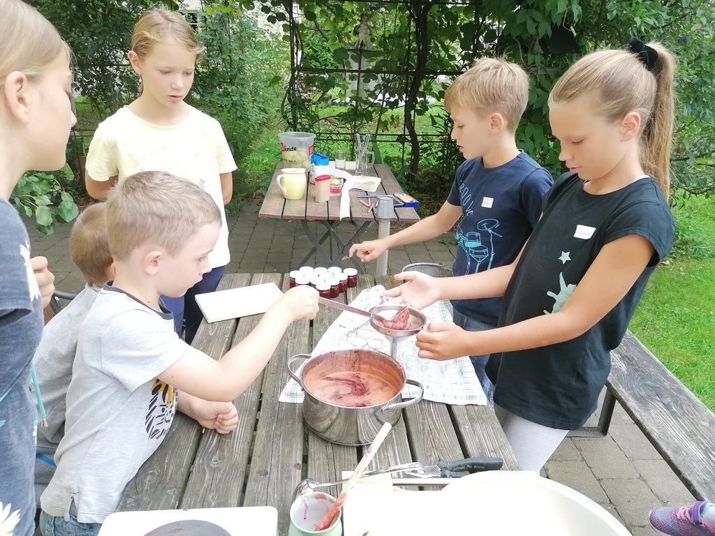 Ein leckeres Essen mit frisch ausgebackenem Brot und selbstgemachter Marmelade war die Belohnung für die hungrigen Gäste. Kostproben ihrer „Kochkünste“ konnten die fleißigen Kinder auch mit nach Hause nehmen. Der Nachmittag wurde für alle zum Erlebnis!
