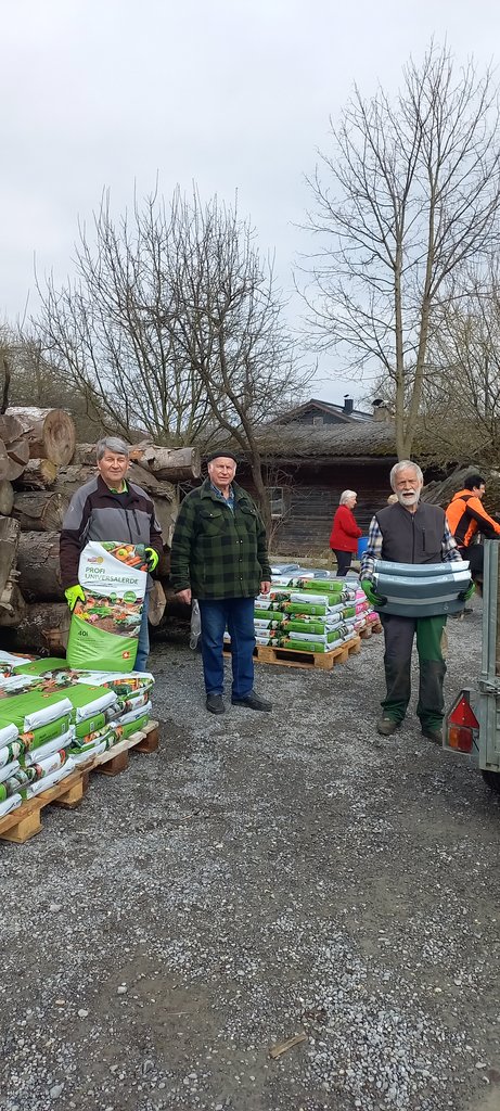 Mit vereinten Kräften wurden rund 400 Säcke Universal-, Rosen- und Anzuchterde verladen.