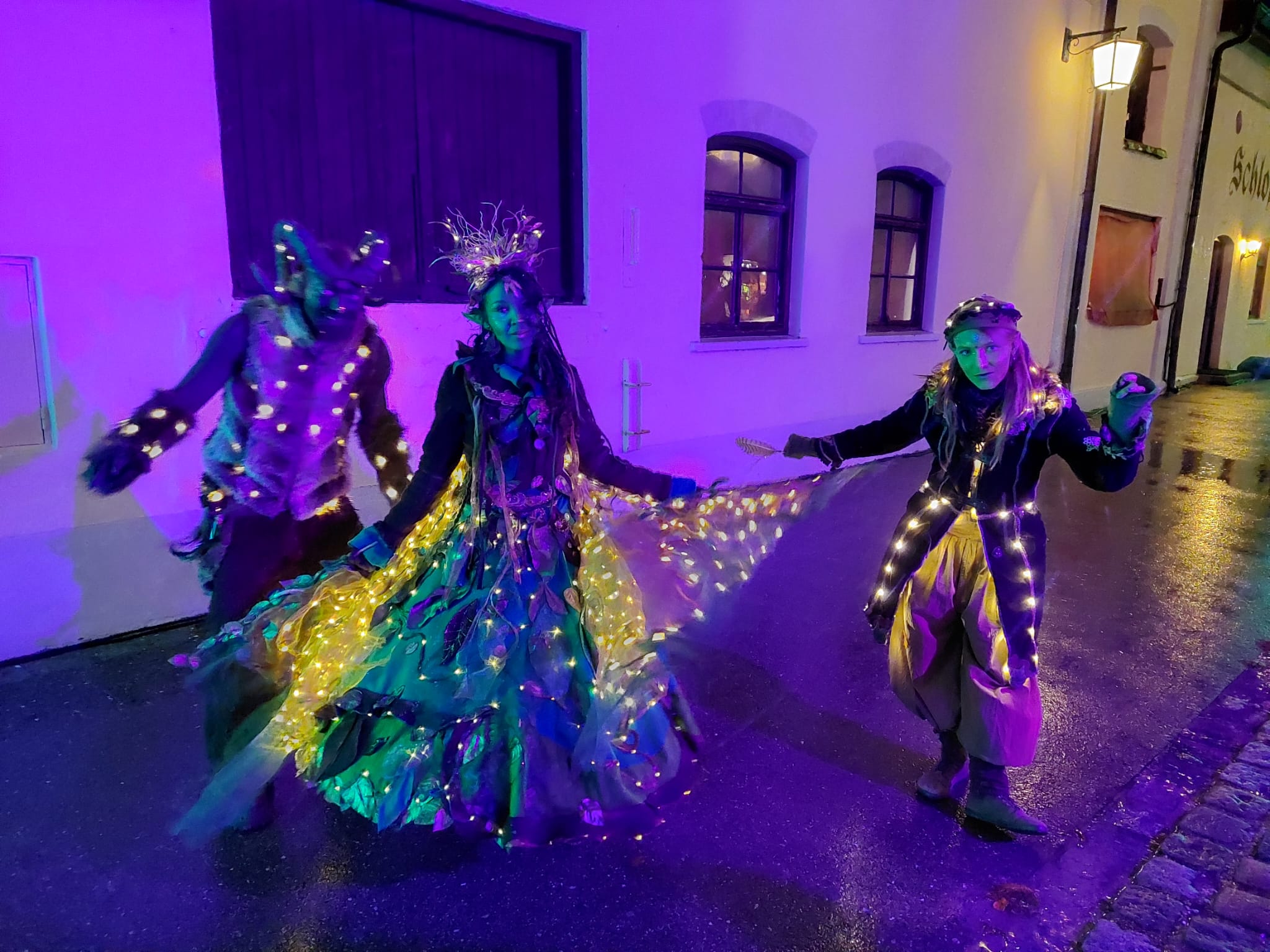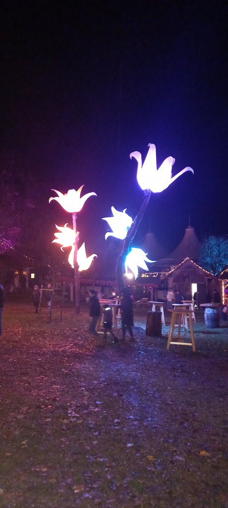 Die ganze Pracht des gewaltigen Lichterzaubers, der das Schloss und den Wald umfängt, erschließt sich einem jedoch erst, wenn man das große Eingangstor erreicht hat. Dort taucht man ein in eine zauberhafte Märchenwelt, inspiriert durch die Erzählungen der Gebrüder Grimm … Begegnet man auf dem Weg durch den Markt doch auch dem gestiefelten Kater, dem Froschkönig, dem bösen Wolf und weiteren Märchenfiguren.