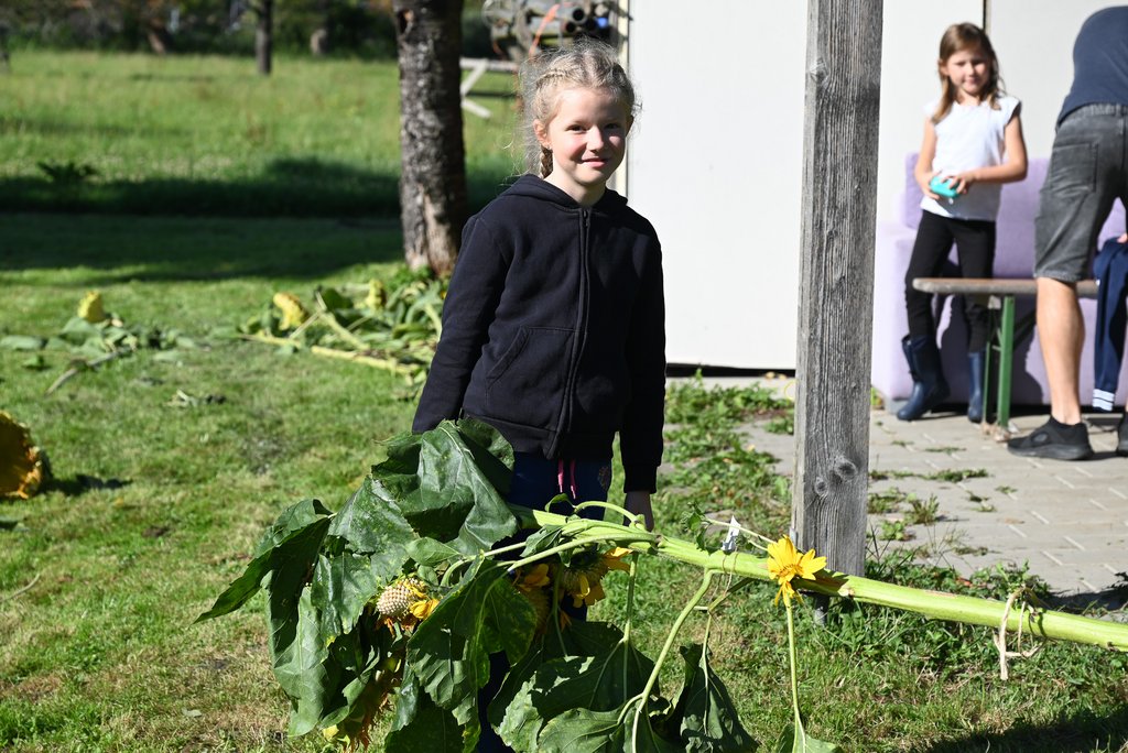 Wochenlang hatten die kleinen Hobbygärtnerinnen und -gärtner ihre Pflanzen gehegt und gepflegt – und nun war es endlich so weit. Die längste Sonnenblume und die Sonnenblume mit dem größten Blütenkopf wurden prämiert.