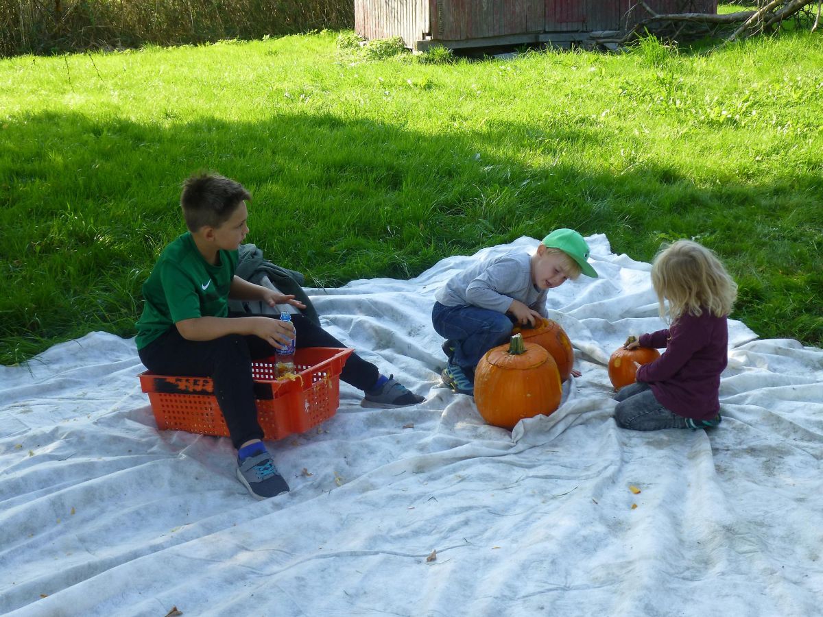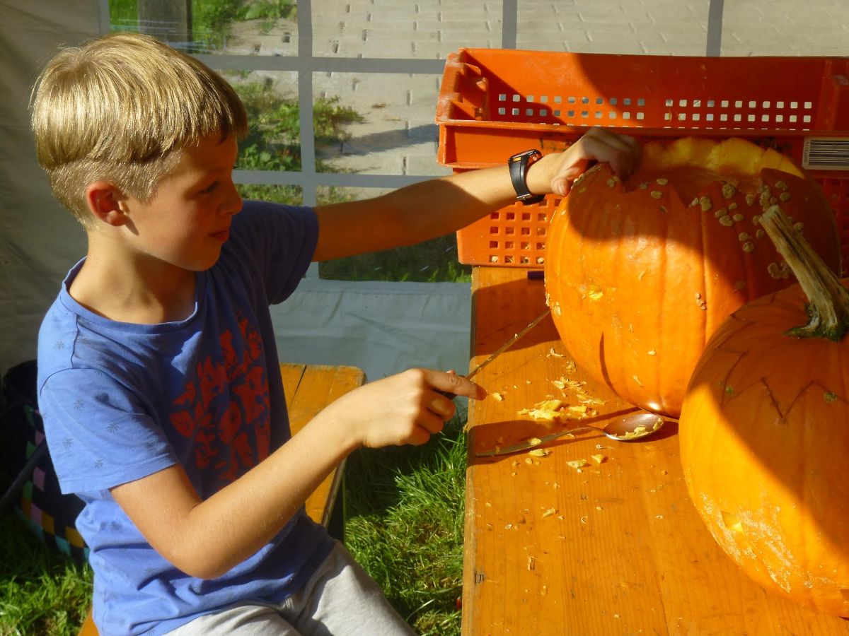 Rund 90 Kinder kamen mit ihren Eltern und Großeltern um Kürbisse zu schnitzen. Mit viel Elan und Phantasie entstanden so wunderbare Kunstwerke aus den schönen Halloweenkürbissen von Hannes Hämmerle.