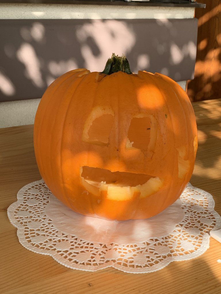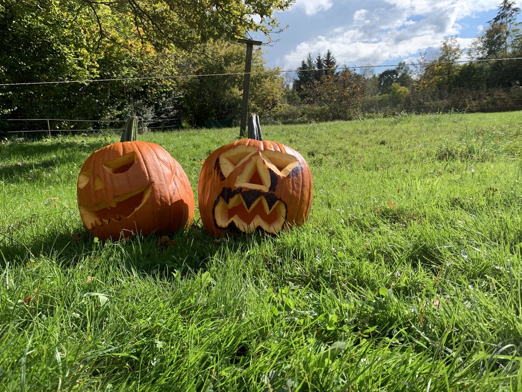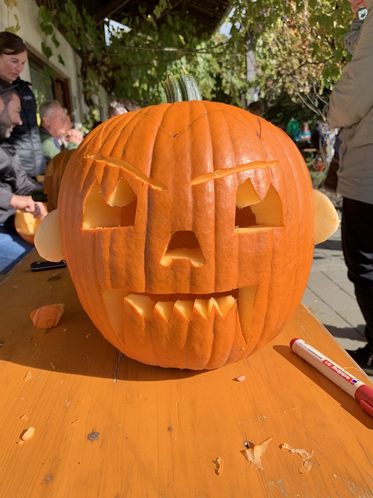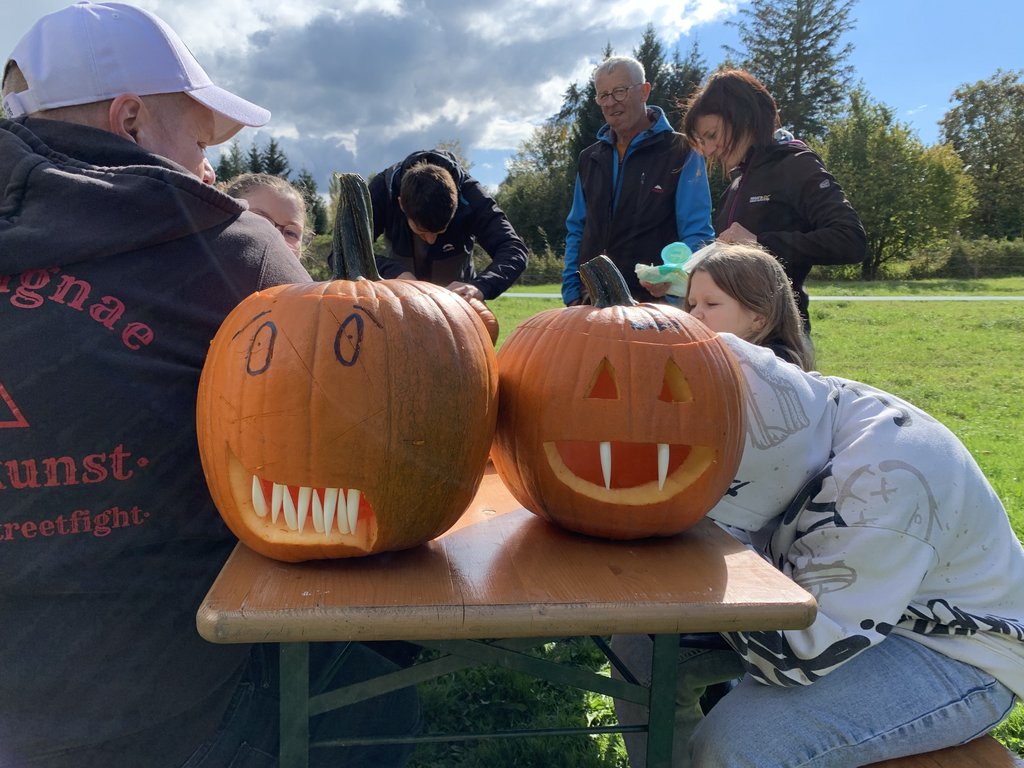 Jeder durfte einen Kürbis schnitzen und diesen mit lustigen oder unheimlichen Gesichtern versehen.