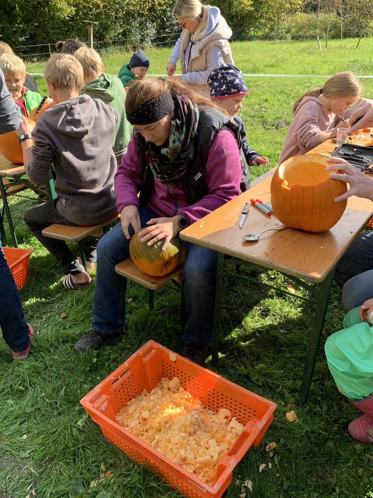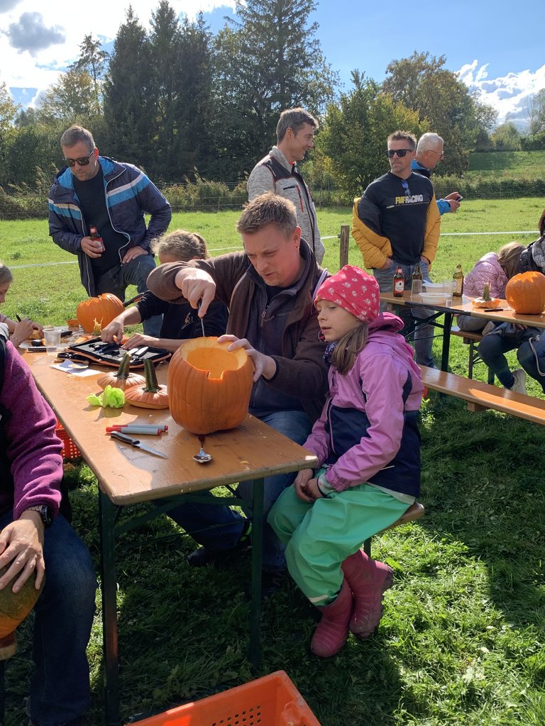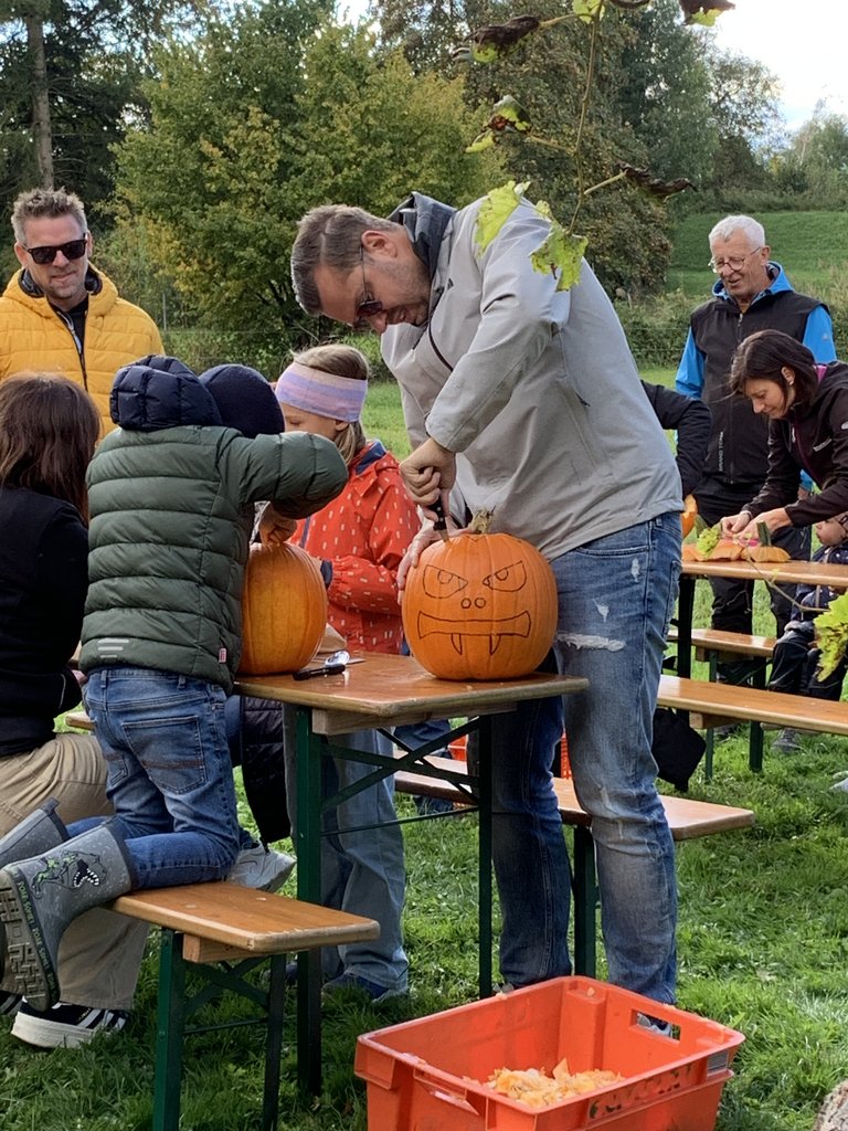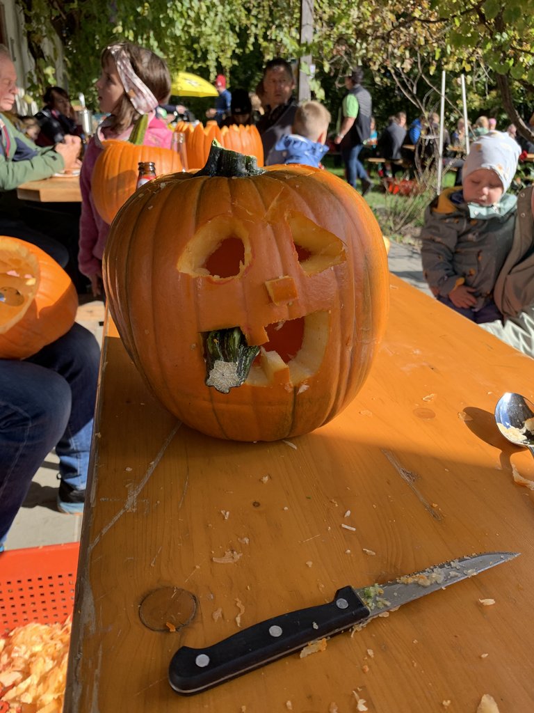 Das Kürbisschnitzen ist mittlerweile zu einer lieb gewonnen Tradition geworden. Es hat sich von einem ganz kleinen Zusammenkommen zu einem großen Familienfest entwickelt. Und das zeigte sich auch bei der Verpflegung. Wir haben 18 Liter Kürbissuppe vorbereitet, die bis auf den letzten Tropfen aufgegessen wurde. Bei frisch gepresstem Süßmost klang diese gelungene Veranstaltung gemütlich aus.