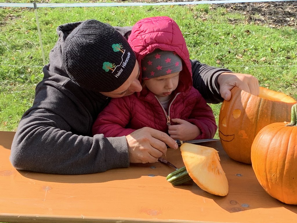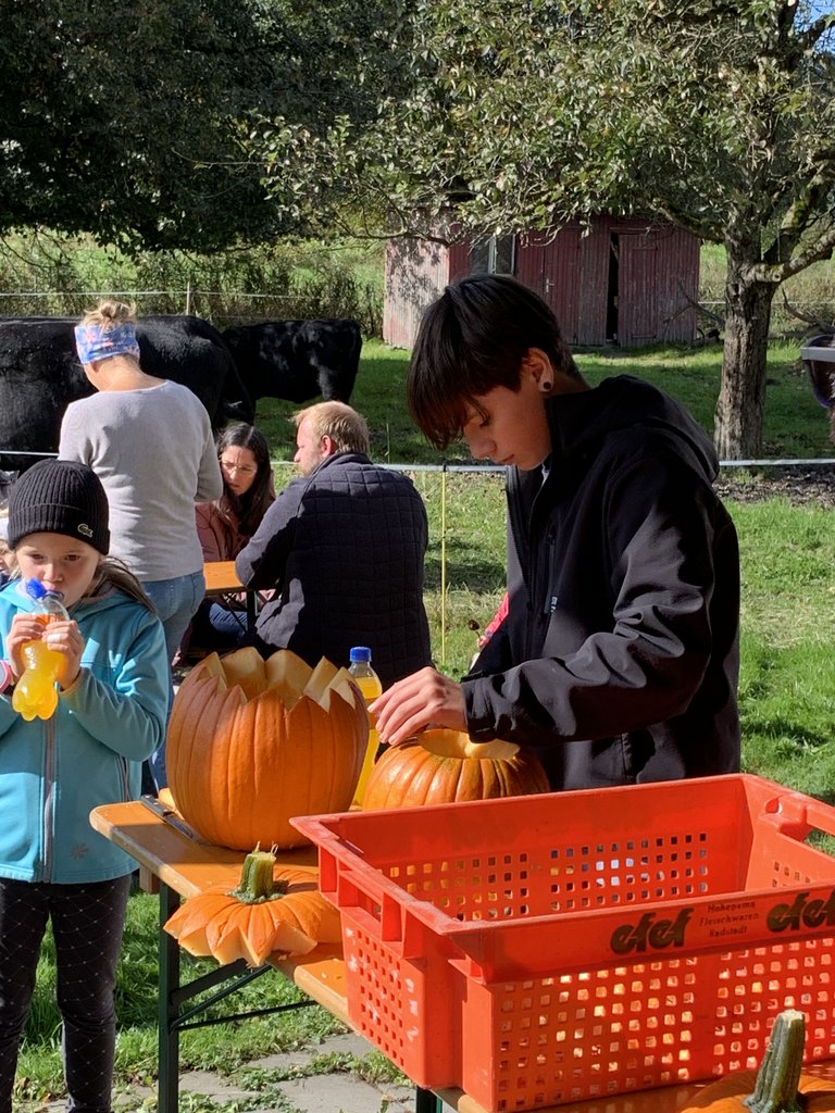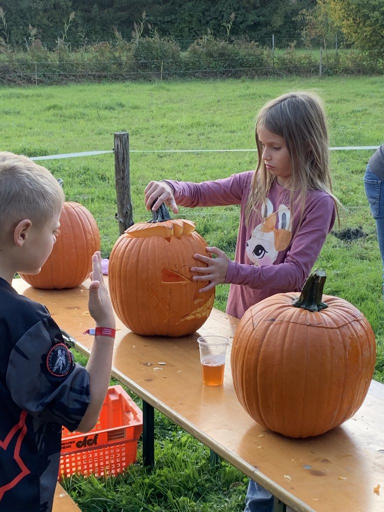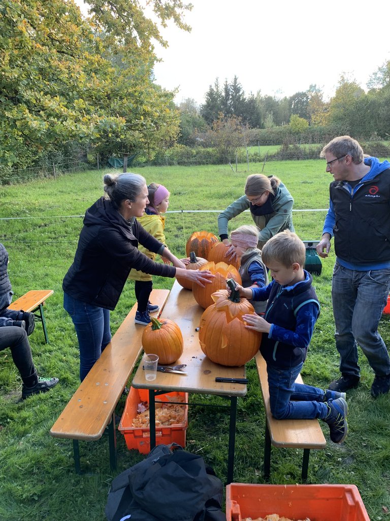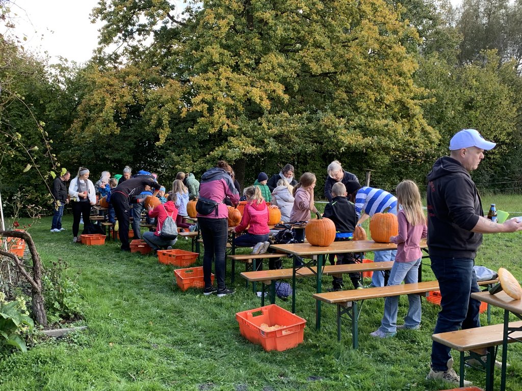 Das Kürbisschnitzen ist mittlerweile zu einer lieb gewonnen Tradition geworden. Es hat sich von einem ganz kleinen Zusammenkommen zu einem großen Familienfest entwickelt. Und das zeigte sich auch bei der Verpflegung. Wir haben 18 Liter Kürbissuppe vorbereitet, die bis auf den letzten Tropfen aufgegessen wurde. Bei frisch gepresstem Süßmost klang diese gelungene Veranstaltung gemütlich aus.