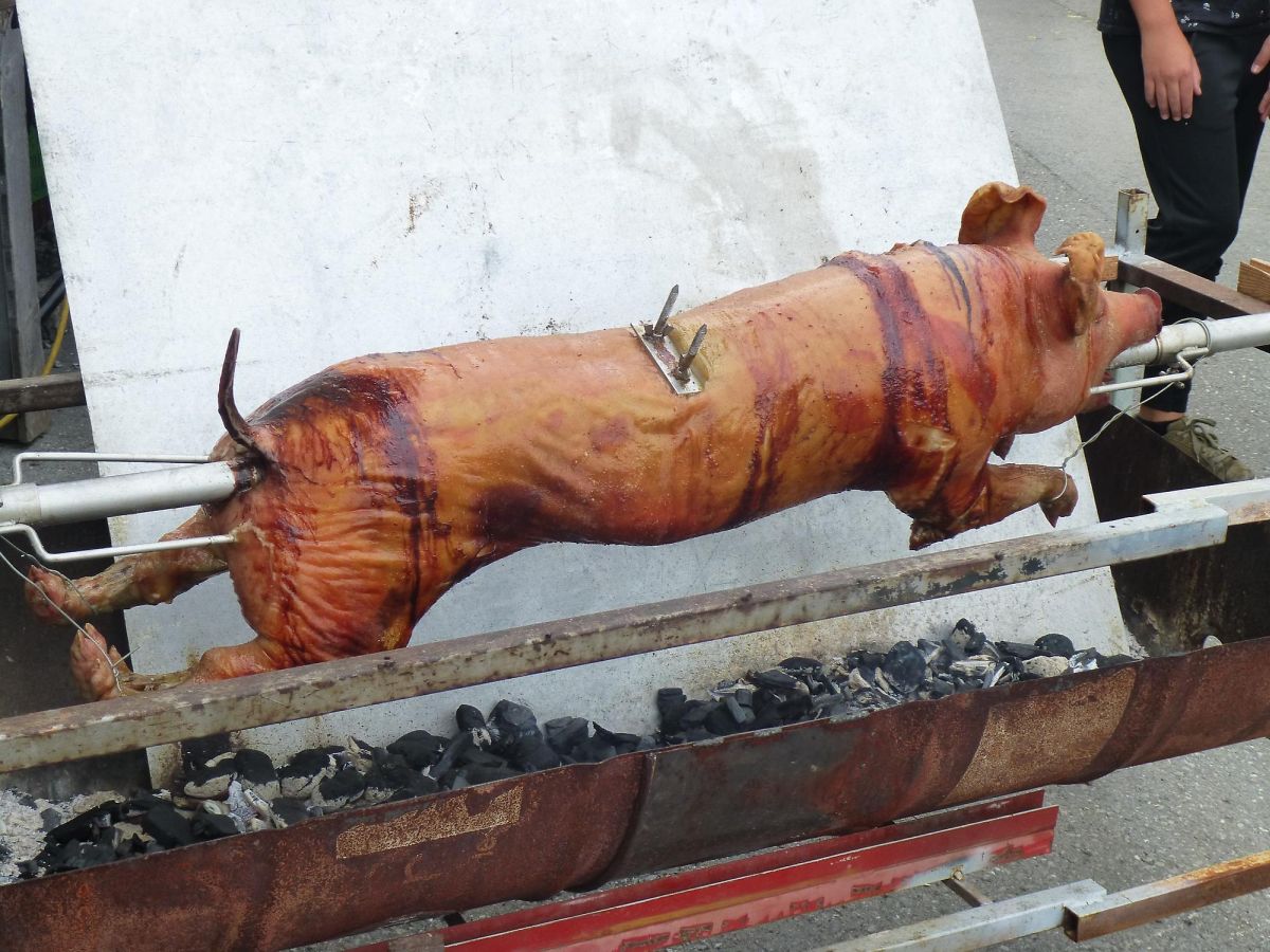 Neben den beliebten Lammburgern gab es Würstle, Pommes und ein 40 Kilogramm schweres Spanferkel.