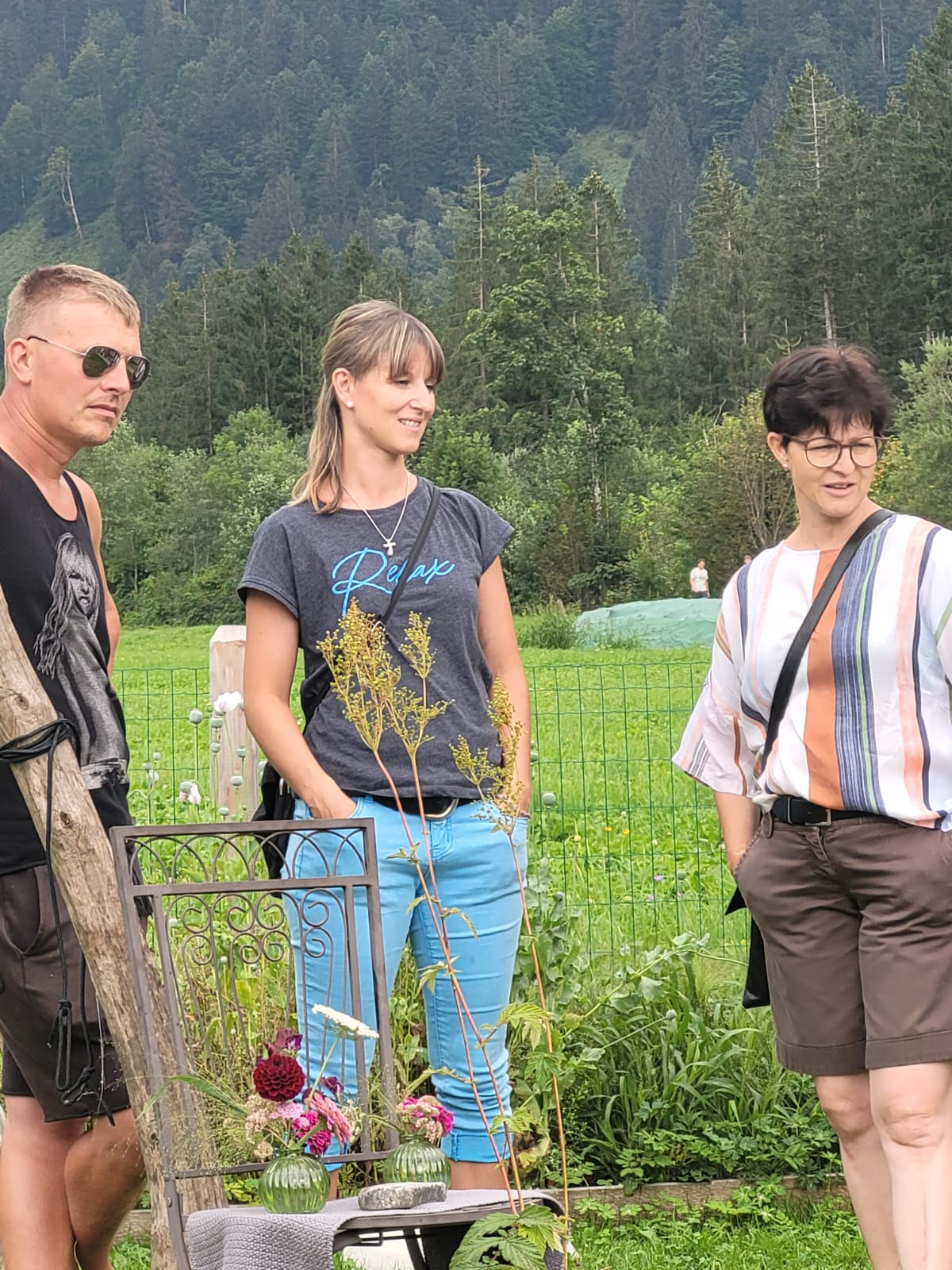 Anschließend besichtigten wir den Blumen- und Kräuteracker von Lisa Moosbrugger und ihrer Mama. Beim eigens erstellten Quiz wurde die Leidenschaft dieser beiden Frauen für Blumen, Kräuter und Dekoration spürbar.