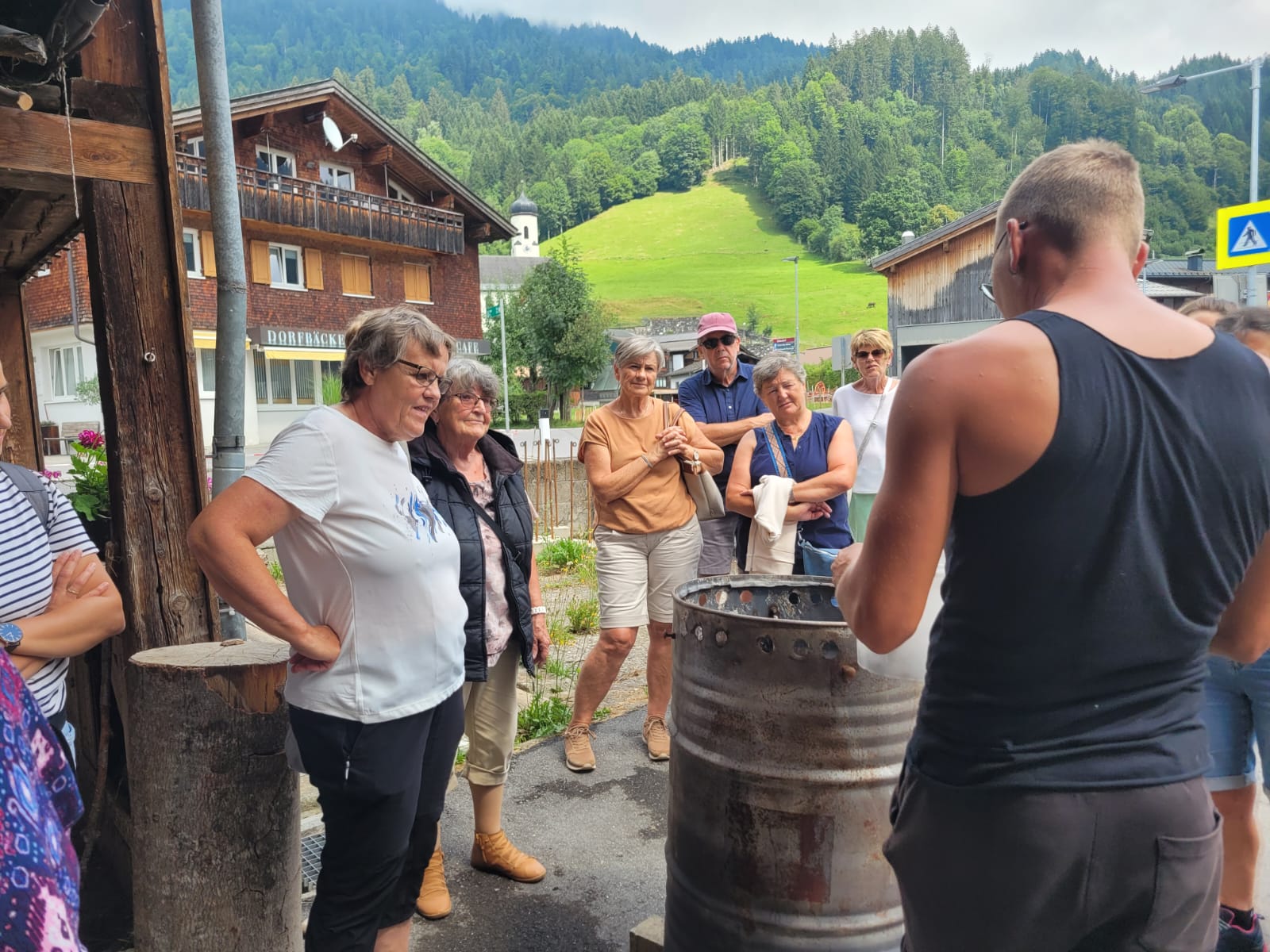 Am Samstag, den 17. August 2024 trafen wir uns am nachmittag in Schoppernau. Dort besuchten wir zuerst den Garten von Pius und Betty Baurenhas. Es gab sehr viel Interessantes zu den Themen Holzkohleherstellung, Tomaten- und Kartoffelanbau, Kartoffelkäfer, Bau eines Gewächshauses, Bewässerungsanlagen und Hopfenanbau zu sehen und zu hören. Die Bierverköstigung der selbsthergestellten Biersorten von Pius war ein weiteres Highlight.