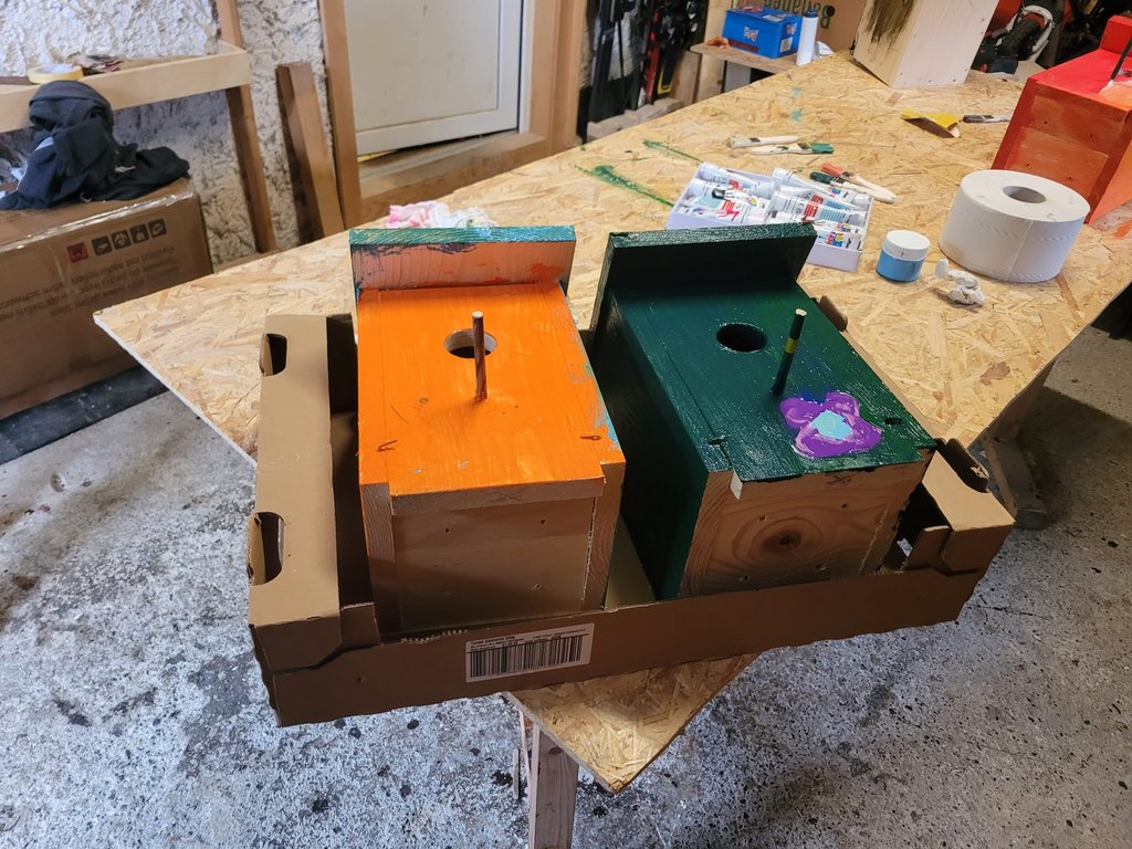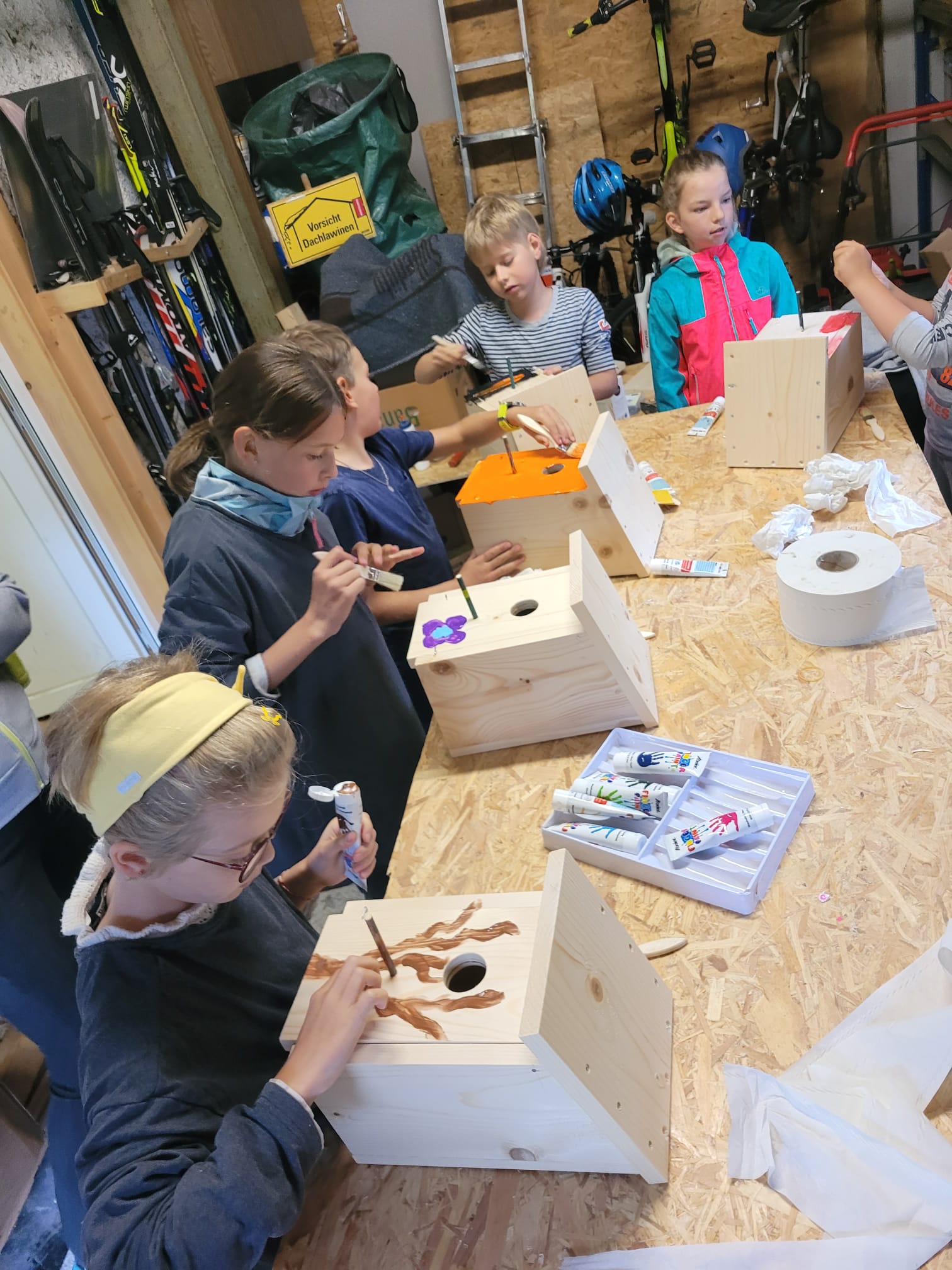 Beim Kinder-Sommerprogramm sind viele bunte und kreative Vogelhäuser entstanden. Mit viel Freude, Teamwork und Farbe haben die Kinder den Staren ein neues Zuhause gebaut - jedes ganz individuell und mit viel Herz.
