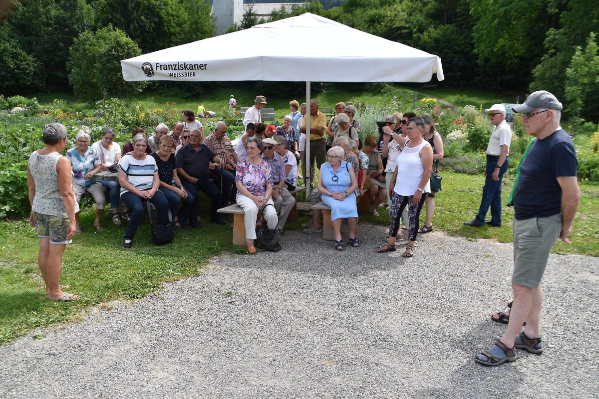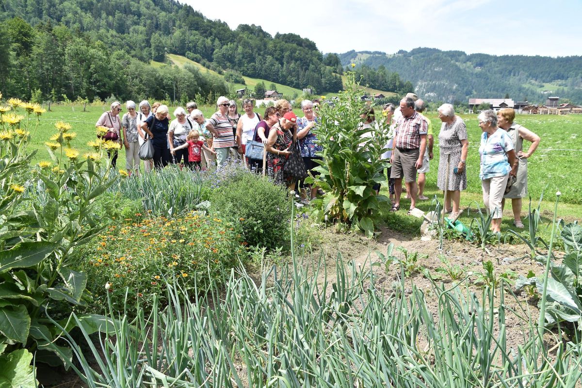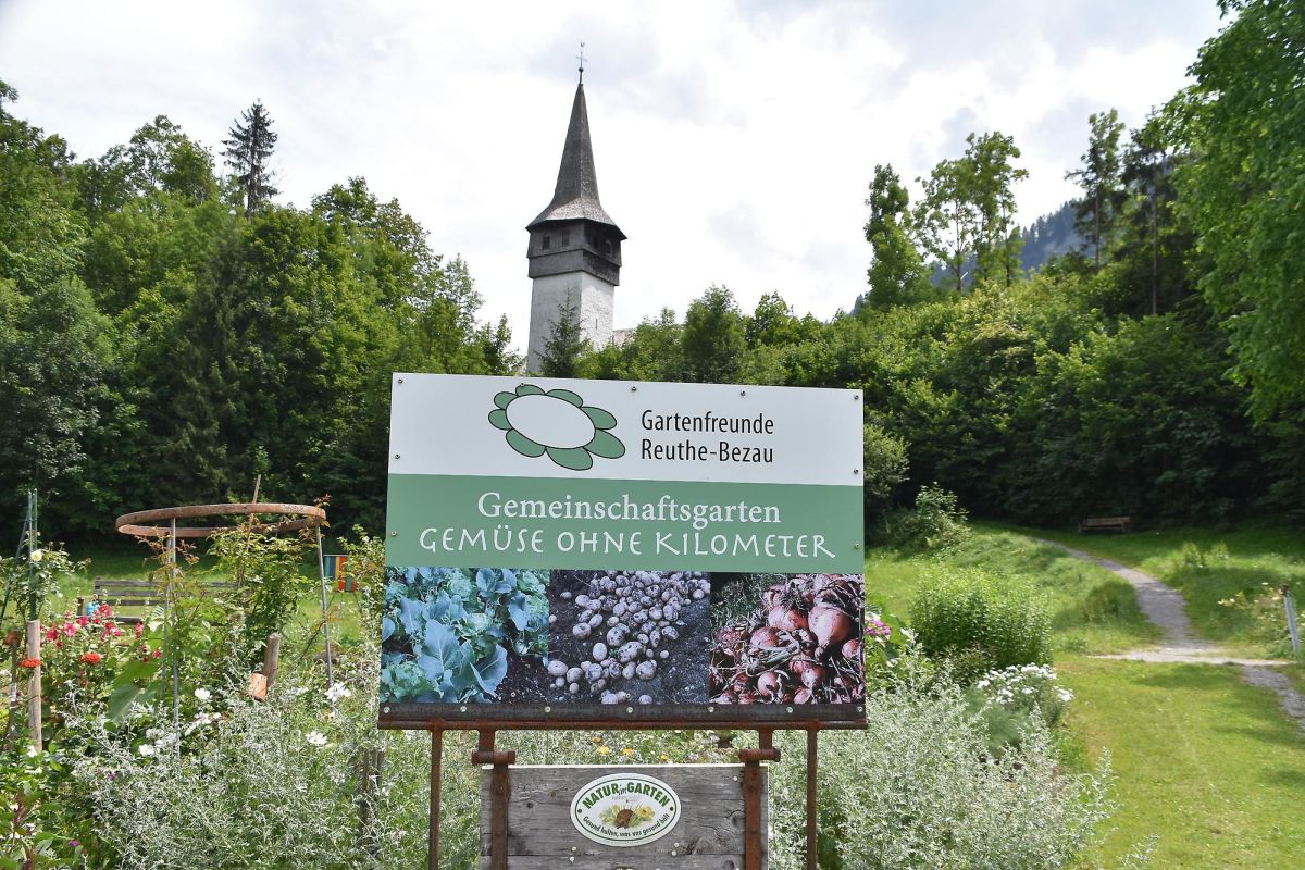 Am Nachmittag dann erreichten wir am Fuße der Kirche von Reuthe den Gemeinschaftsgarten von Isabella Moosbrugger. Das bunte Angebot an Blumen, Kräutern und Gemüse erfreute unsere Sinne als wir von Isabella durch den Garten geführt wurden. Über 40 Personen gärtnern unter "fachfraulicher" Anleitung von Isabella und können so hochwertige Lebensmittel selber produzieren. Klare Regeln sorgen dafür, dass ein gedeihliches Miteinander stattfinden kann.