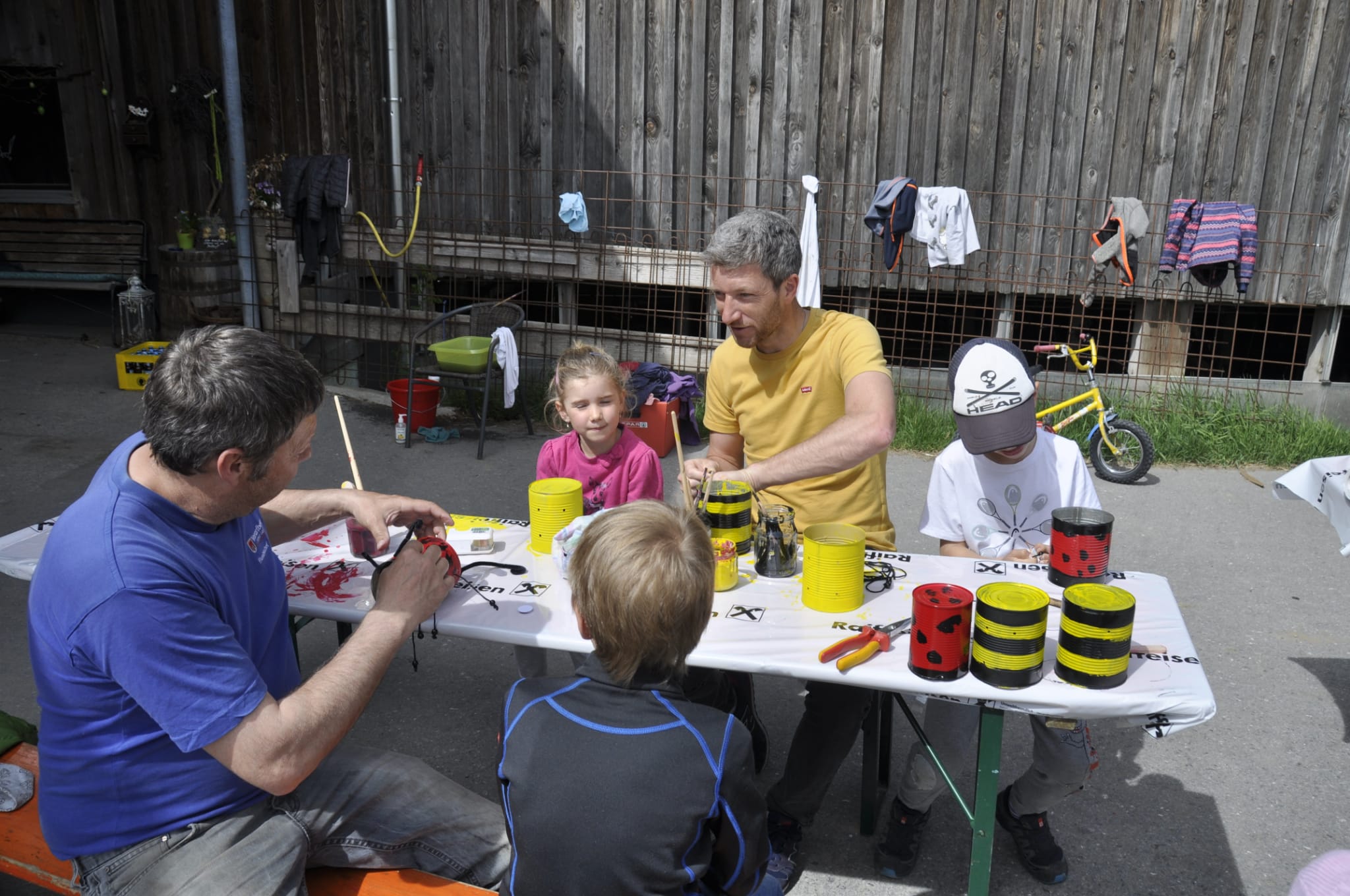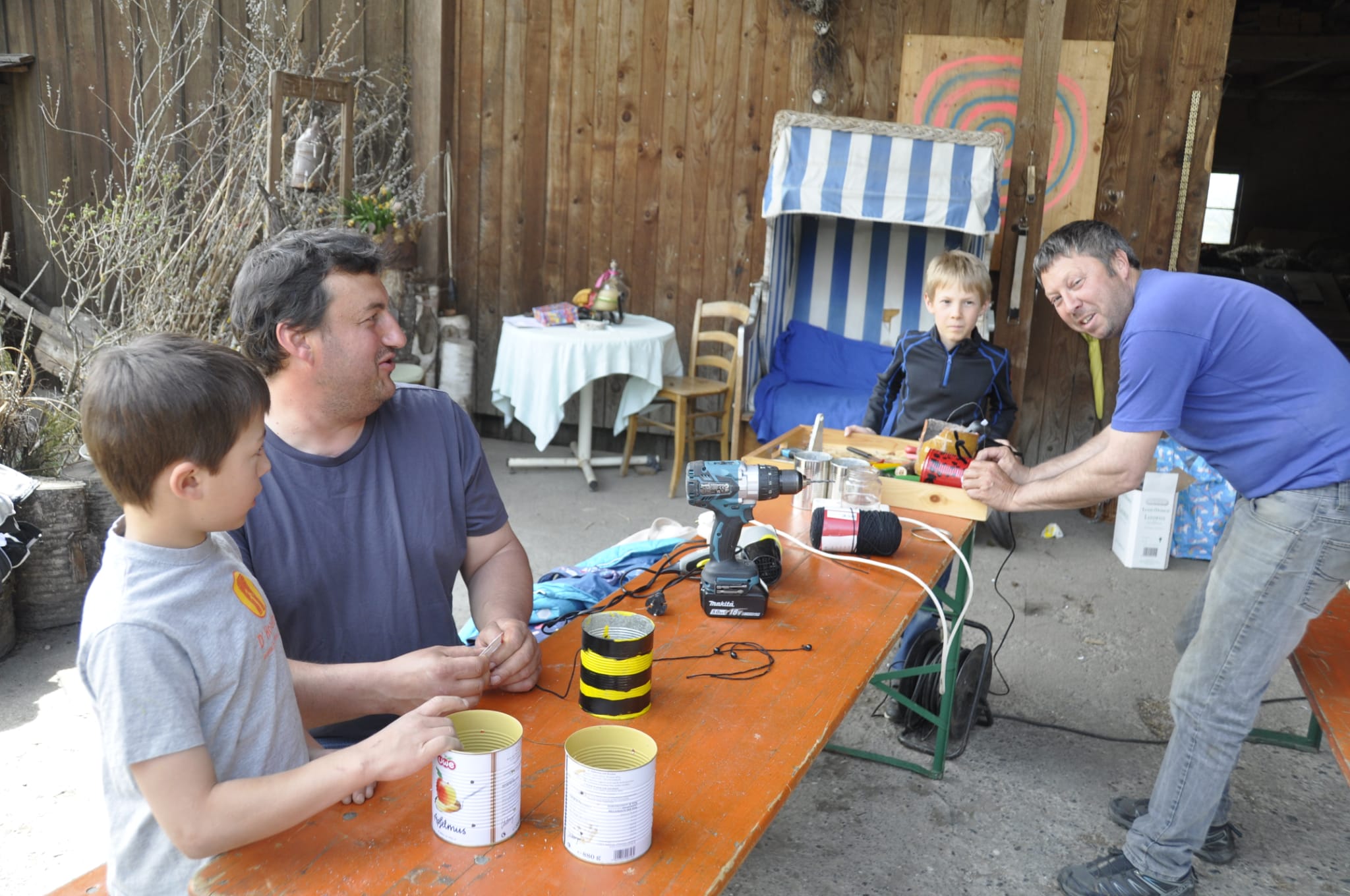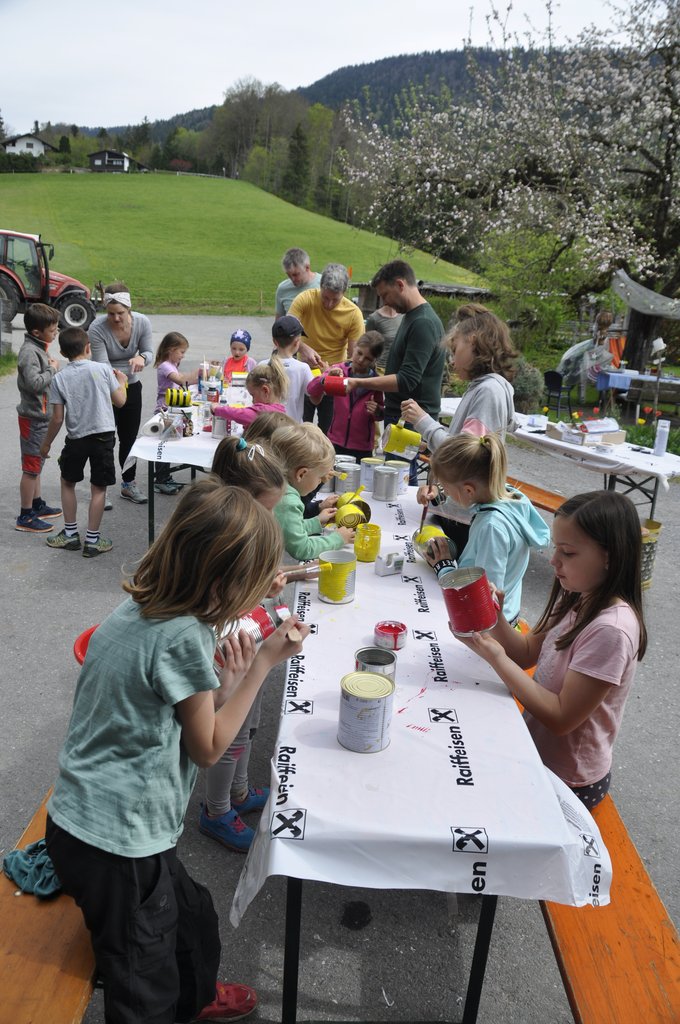 Insgesamt 21 Kinder haben sich mit ihren Papa's bei Regina Hirschbühl eingefunden um alten Lebensmitteldosen neues Leben einzuhauchen.
