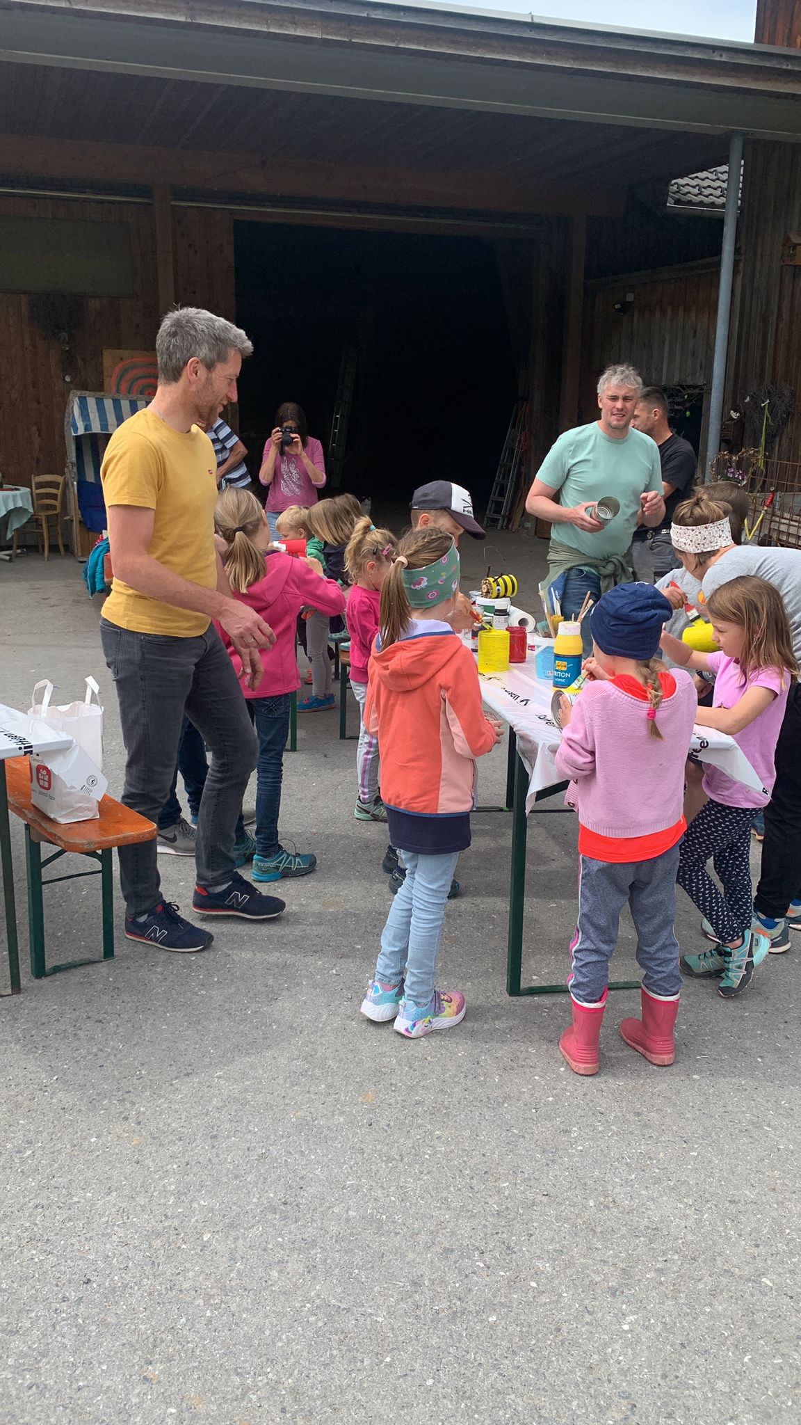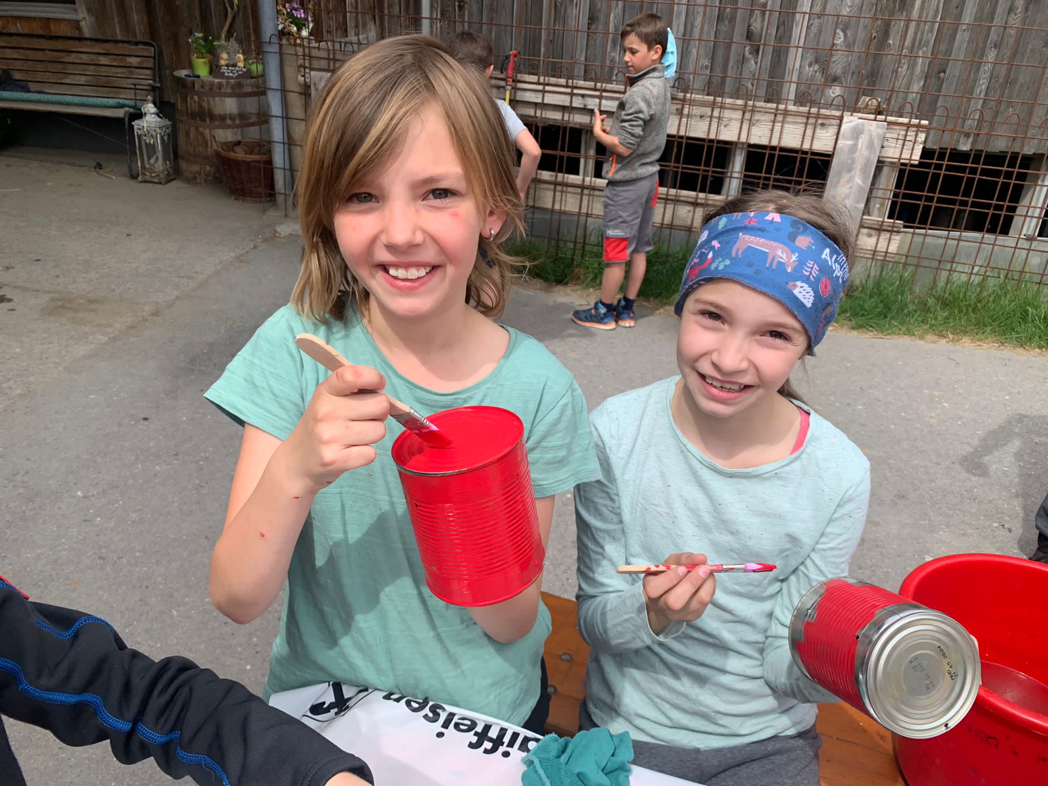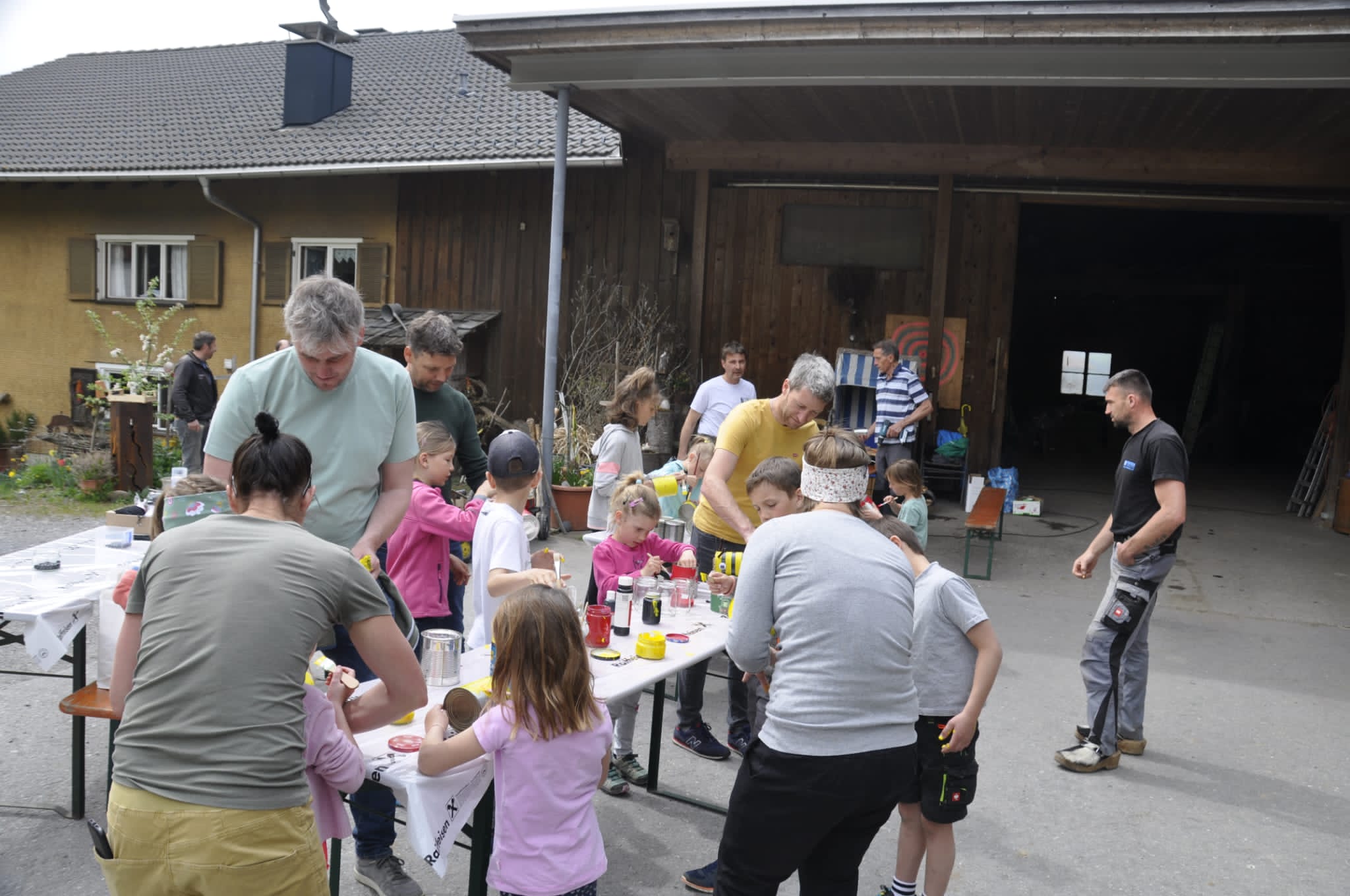 Insgesamt 21 Kinder haben sich mit ihren Papa's bei Regina Hirschbühl eingefunden um alten Lebensmitteldosen neues Leben einzuhauchen.