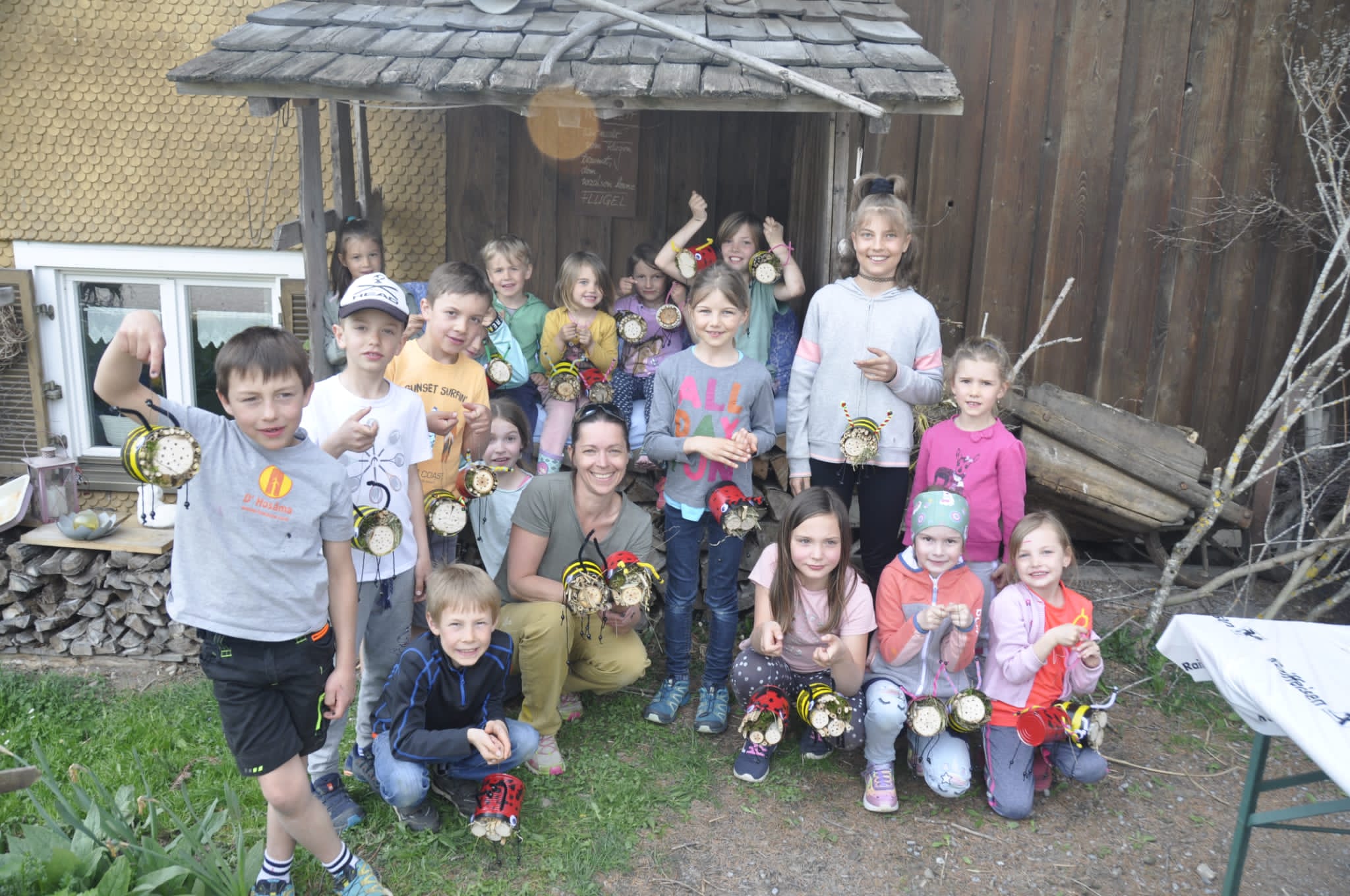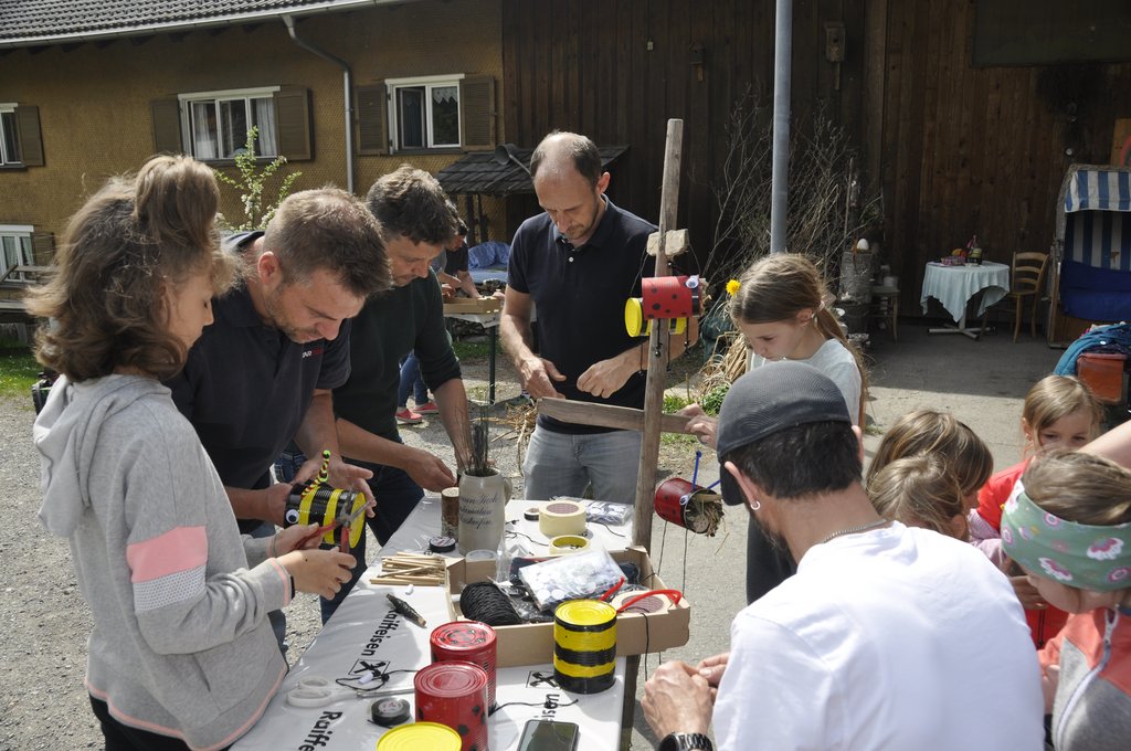 Die Kinder bastelten mit Hilfe der motivierten Papa's Insektenhotels als Muttertagsgeschenk.