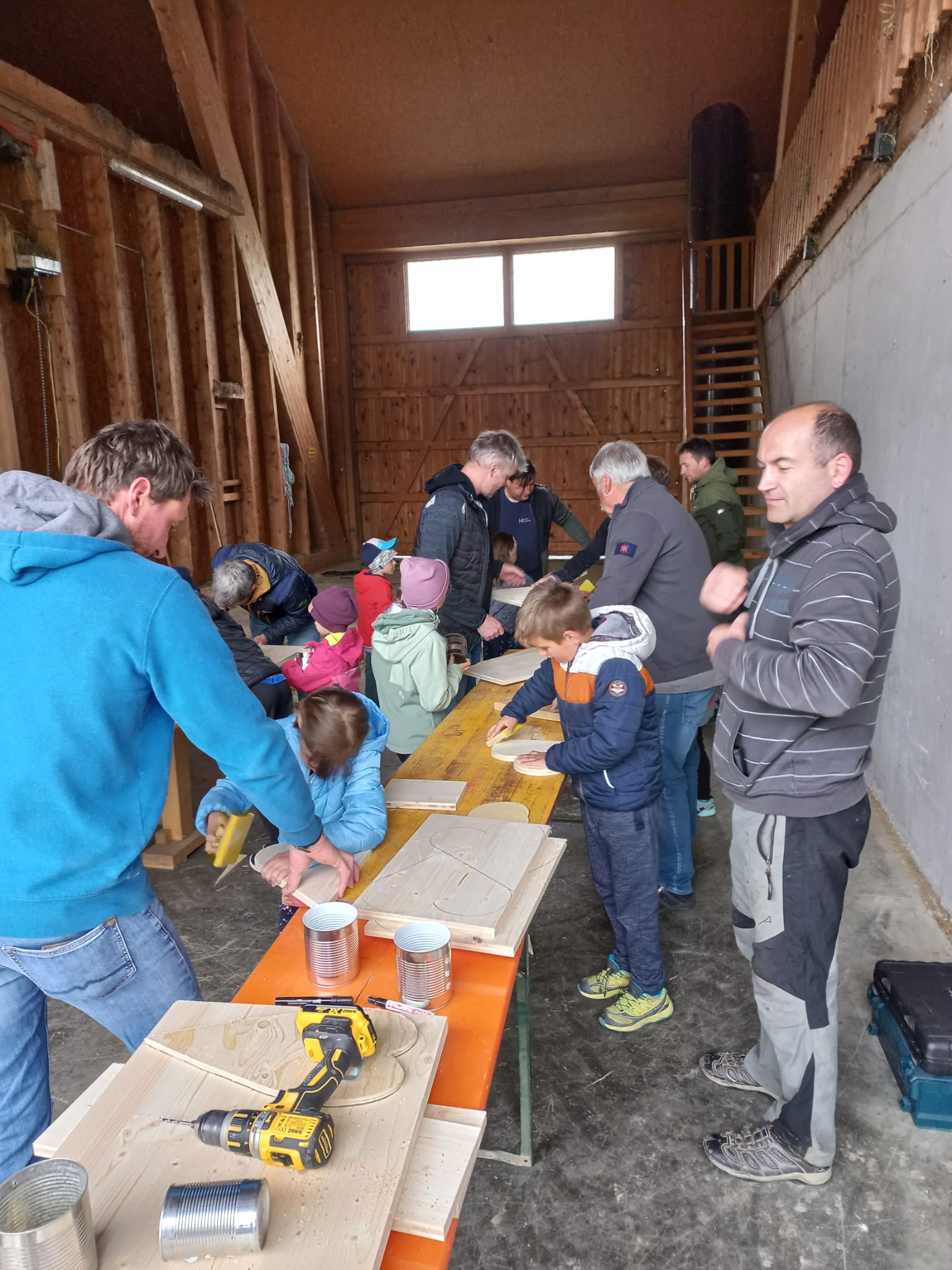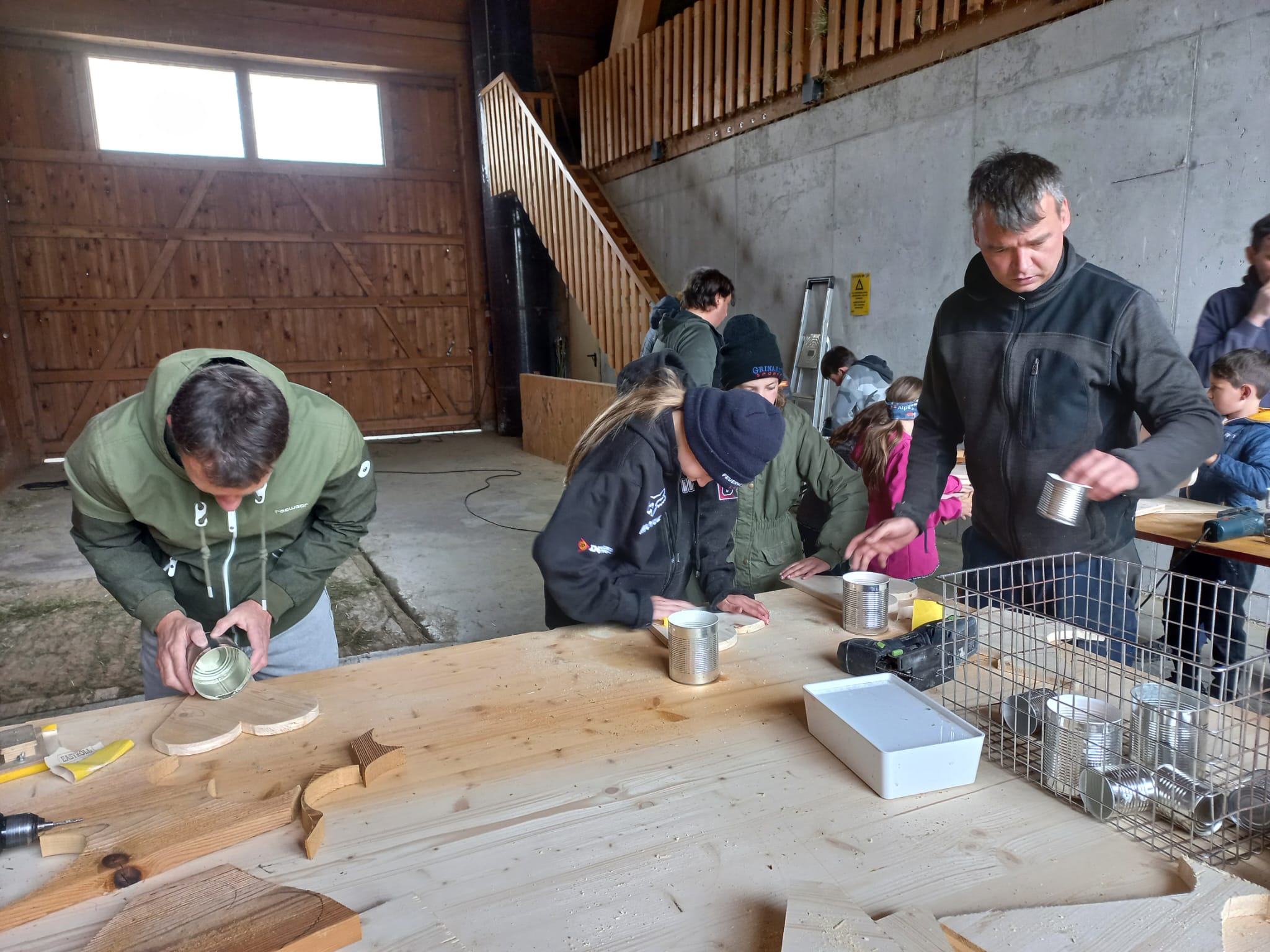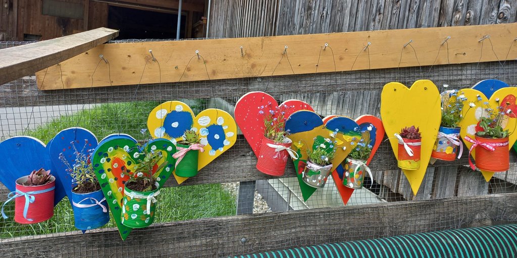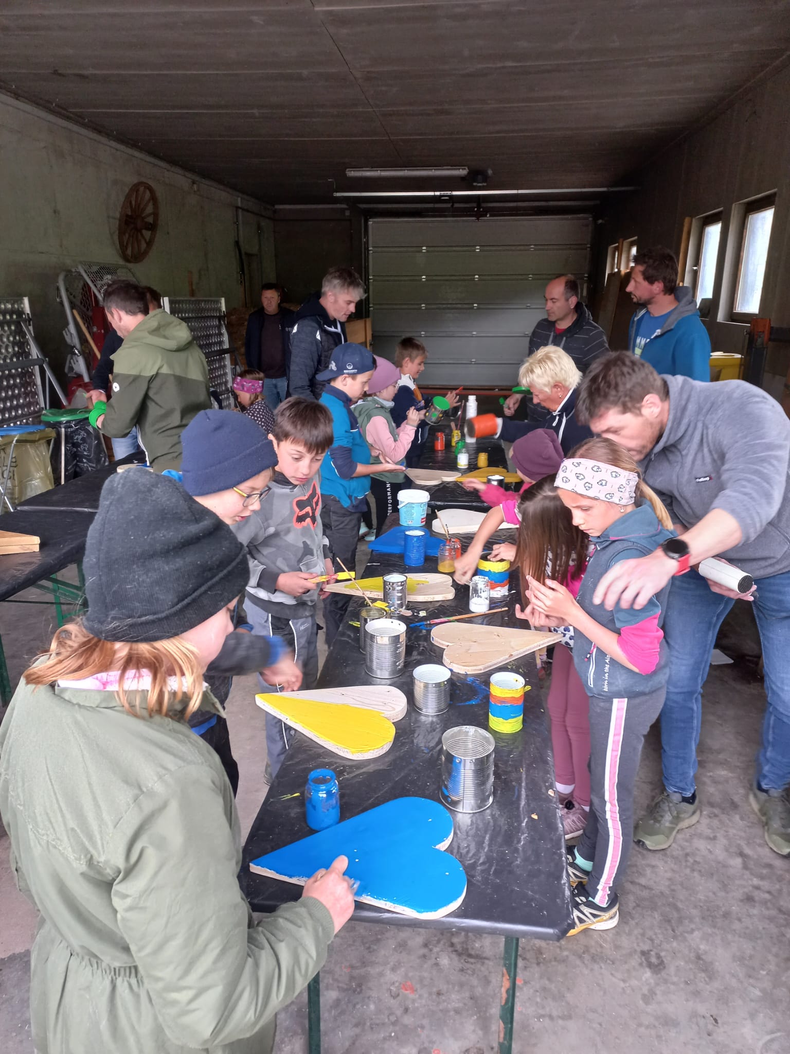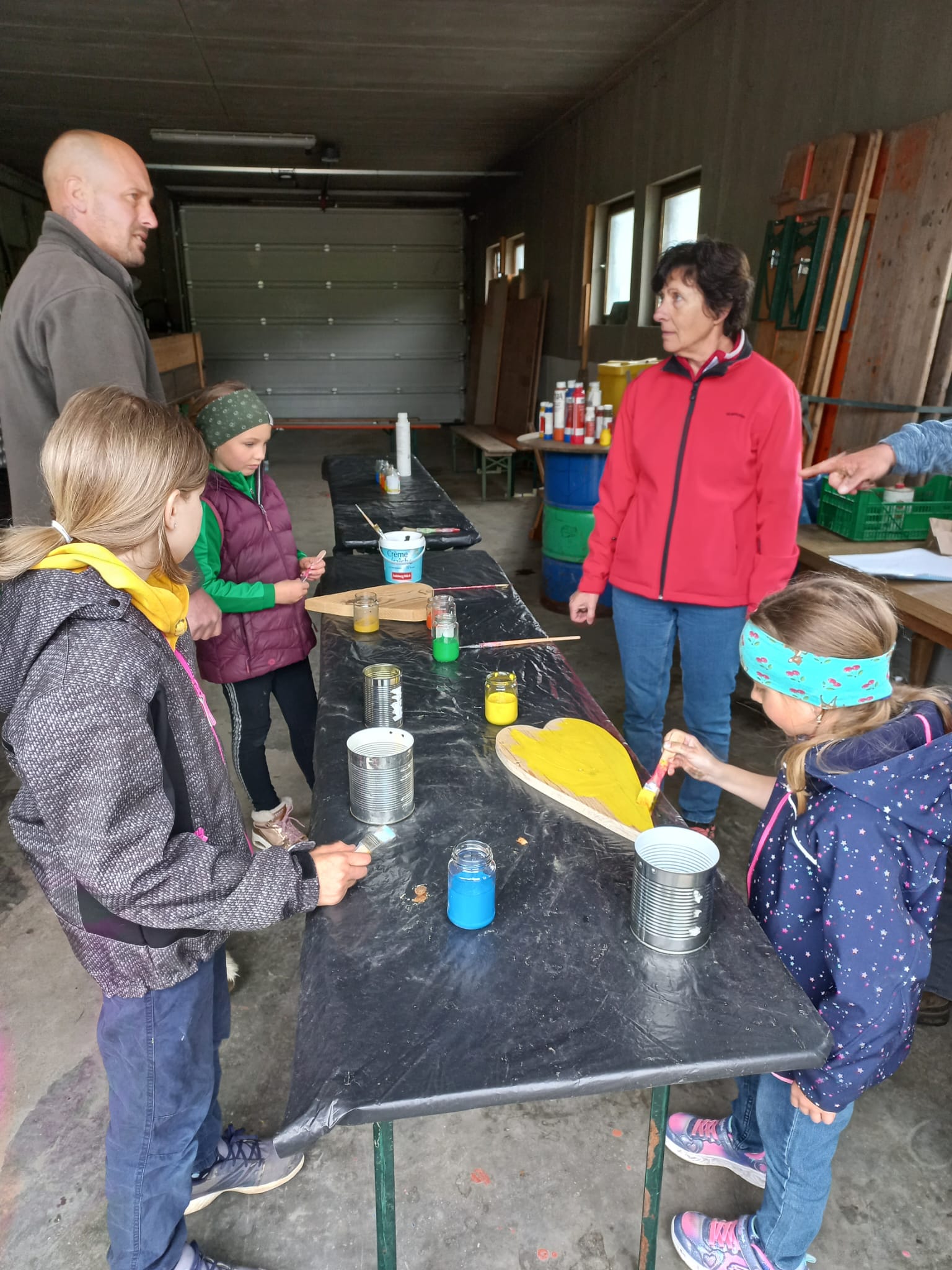 Das Angebot wurde sehr gut angenommen und es kamen viele Kinder mit ihren Vätern um kreative Herzen für den Garten zu Basteln.