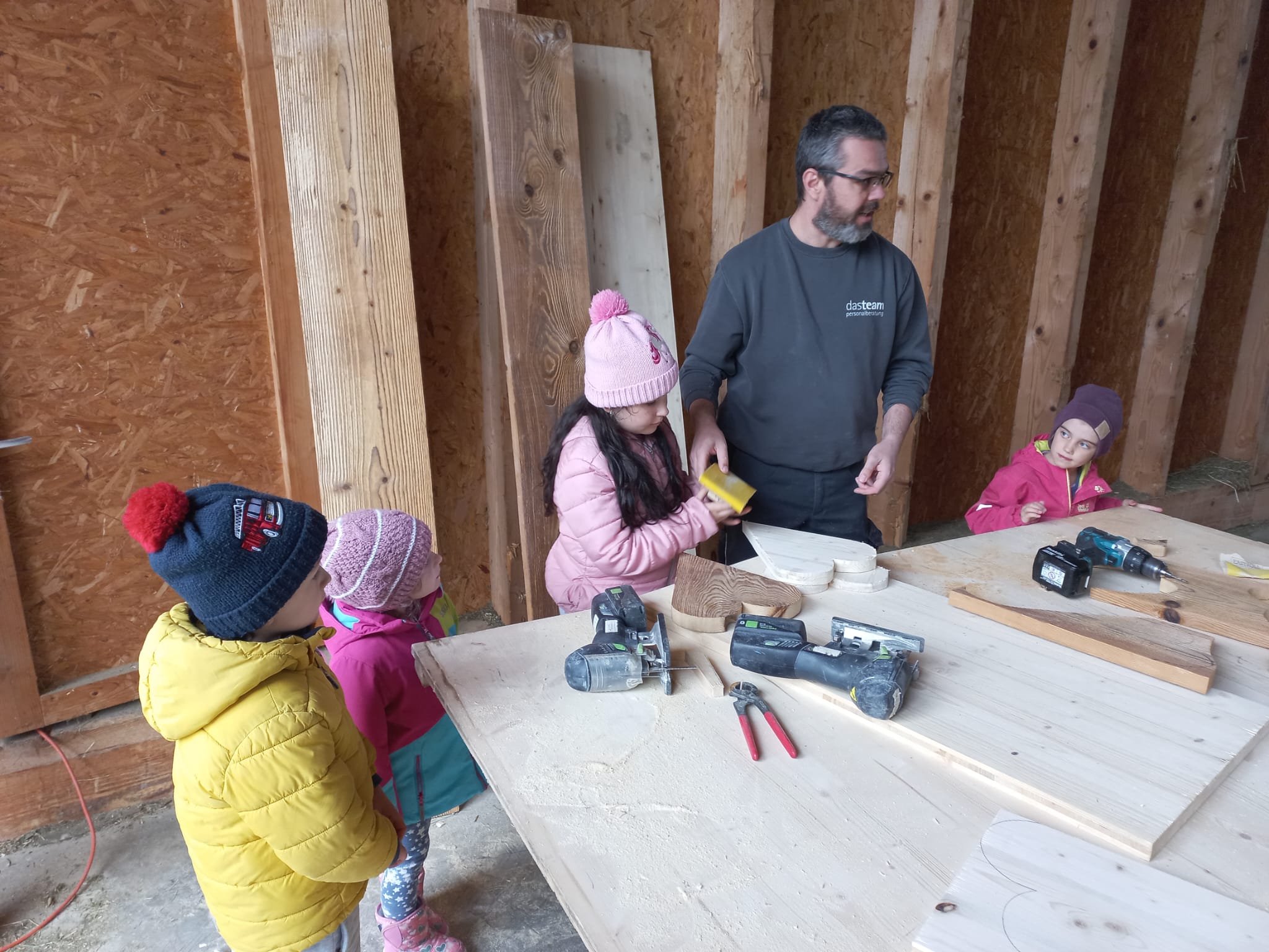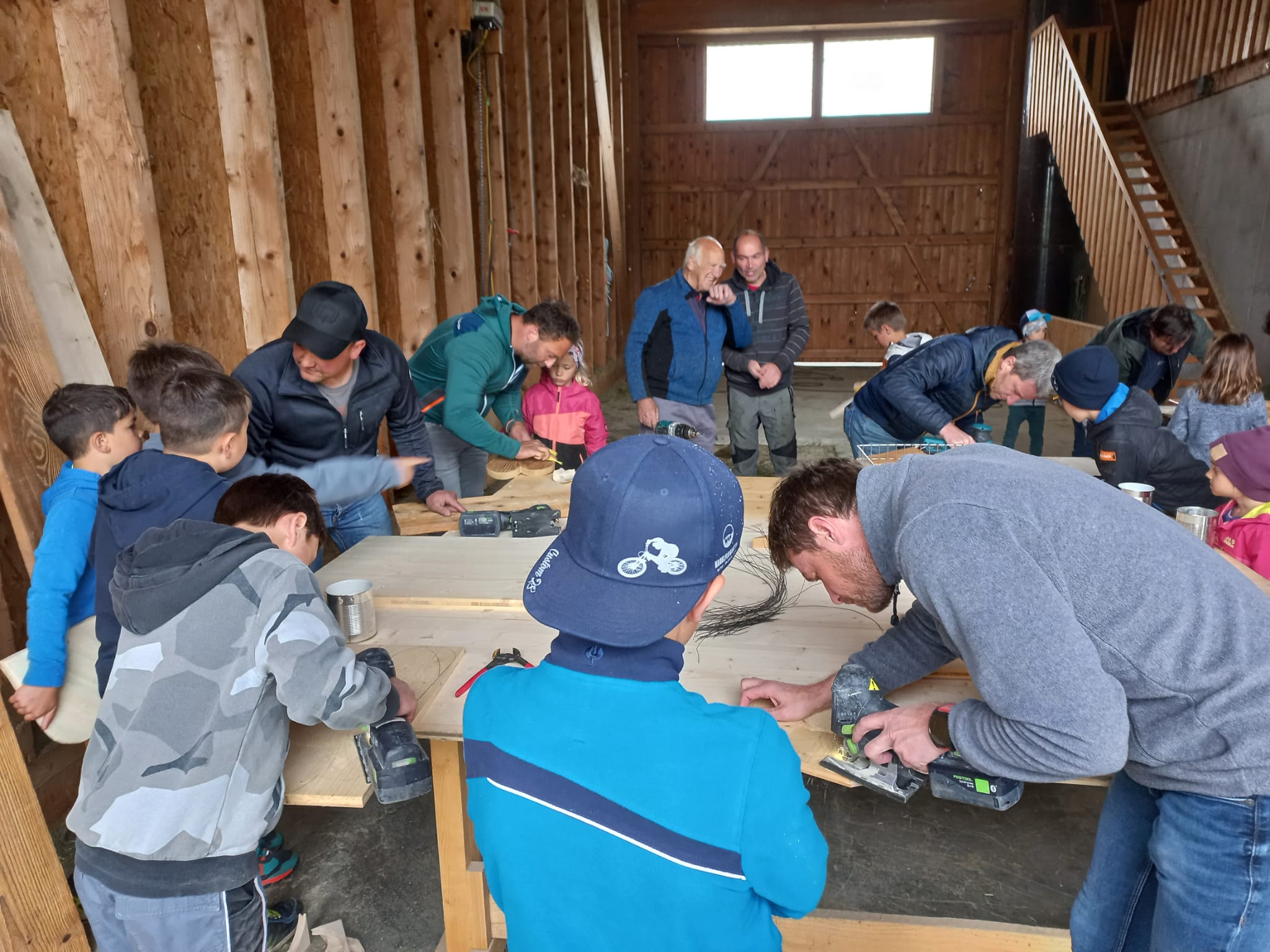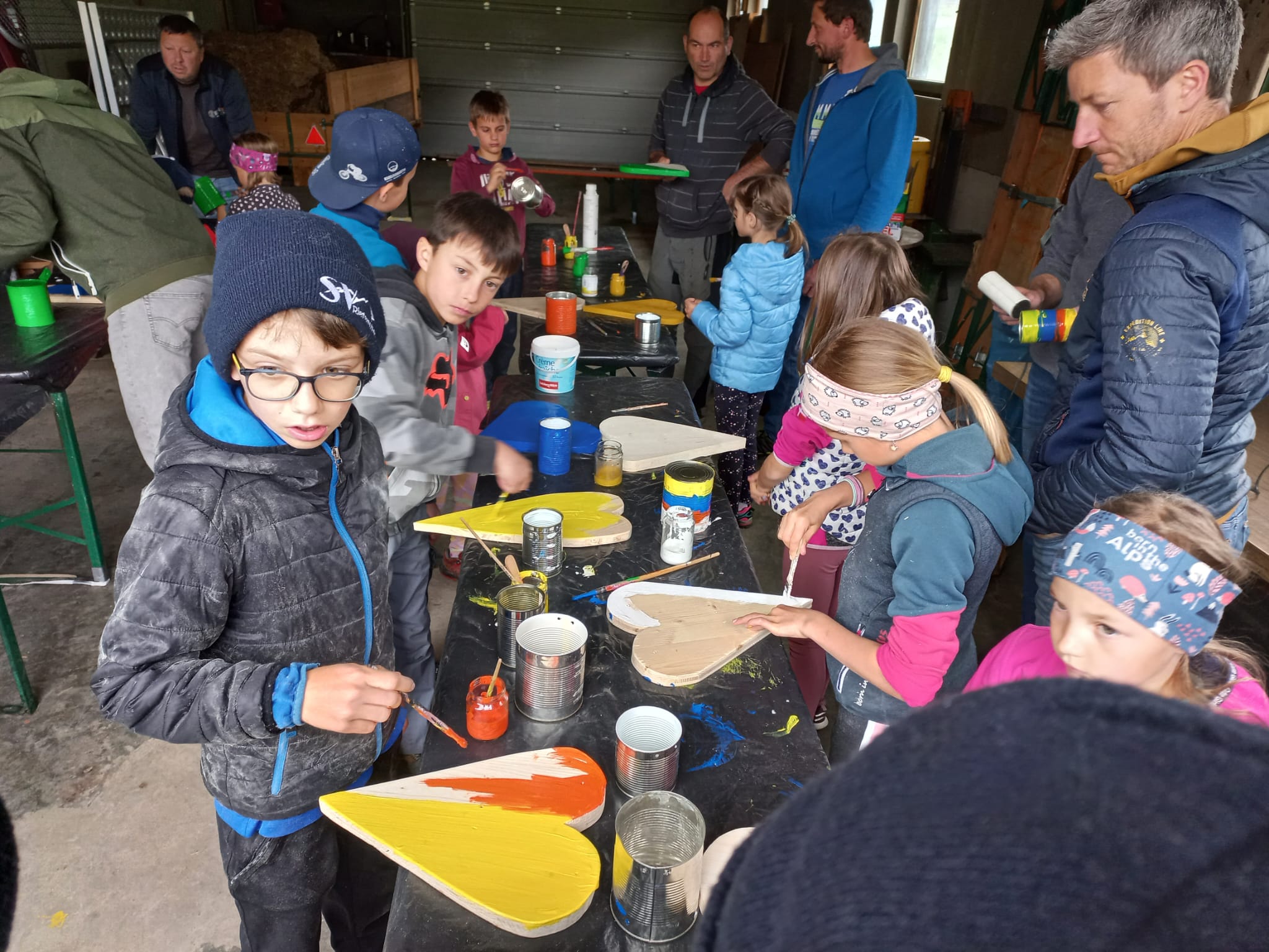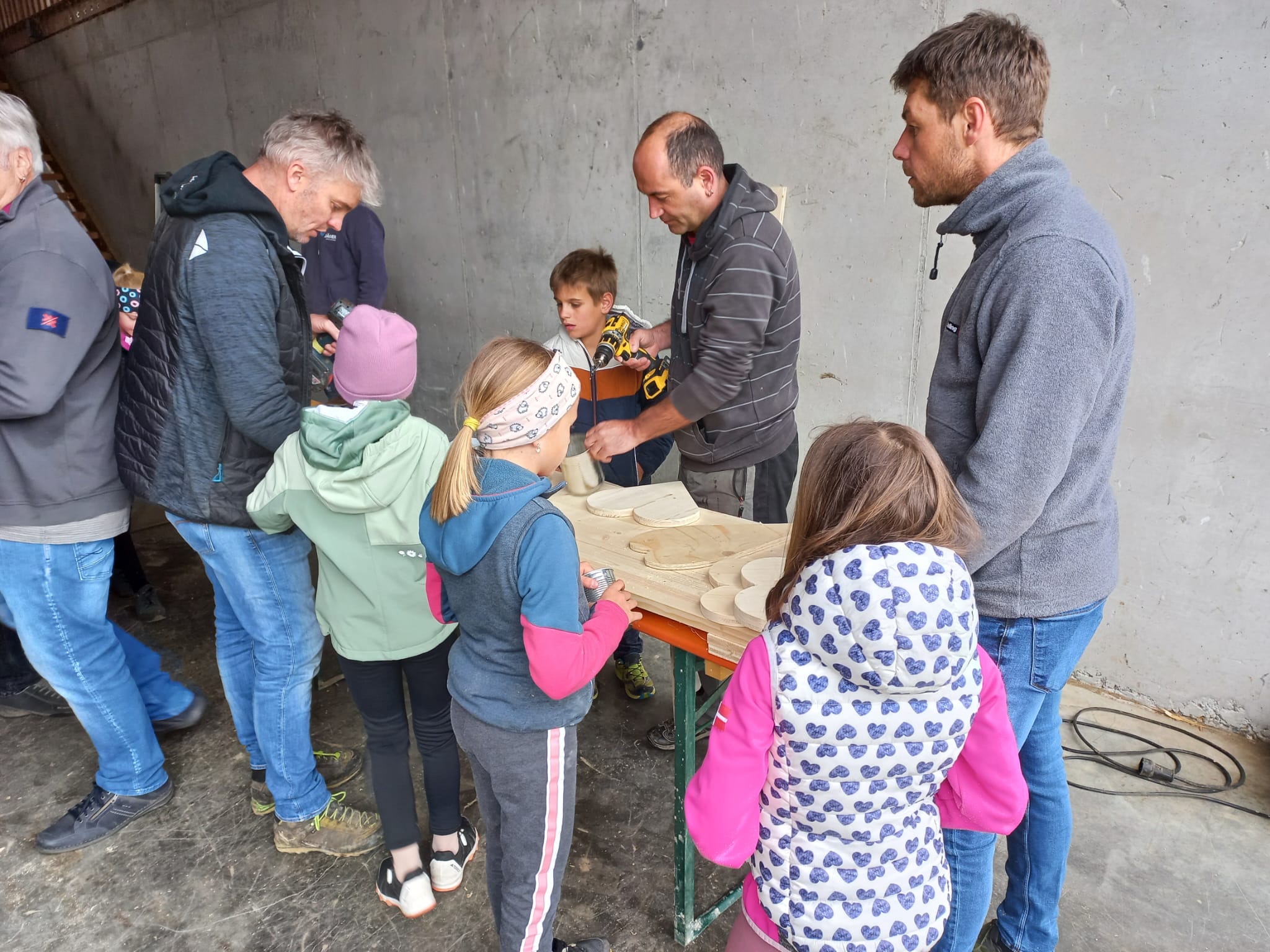 Das Angebot wurde sehr gut angenommen und es kamen viele Kinder mit ihren Vätern um kreative Herzen für den Garten zu Basteln.