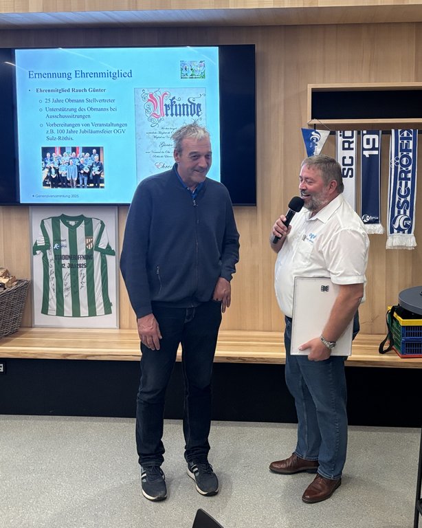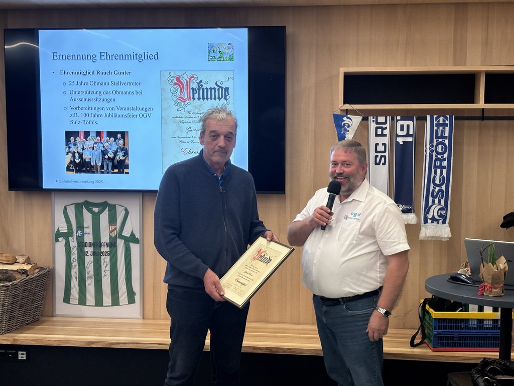 Ein besonderer Moment war die Ehrung von Günter Rauch, der für seine 25-jährige Tätigkeit als Obmann-Stellvertreter zum Ehrenmitglied ernannt wurde. Die feierliche Überreichung der Ehrenurkunde würdigte sein langjähriges, engagiertes Wirken für den Verein.